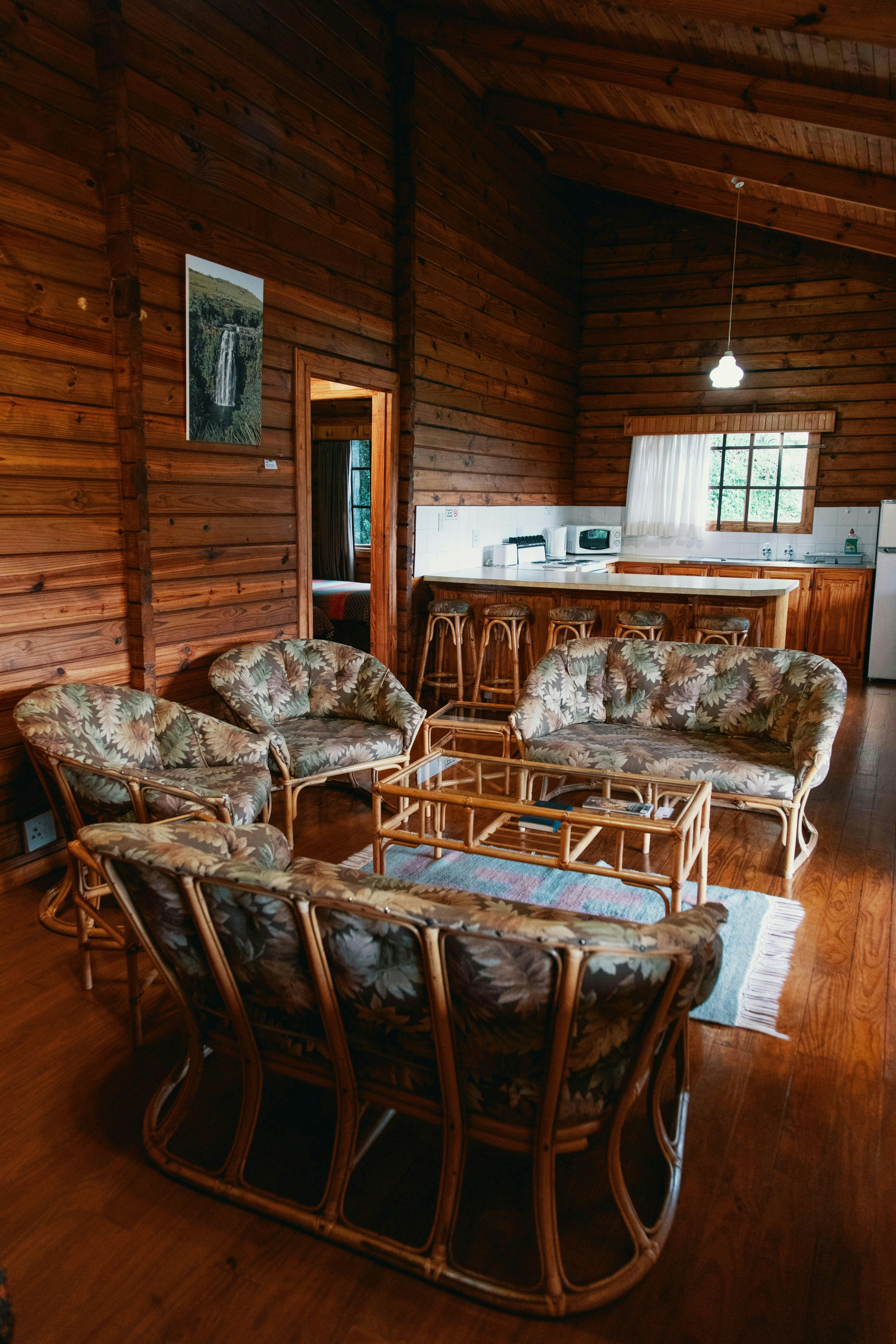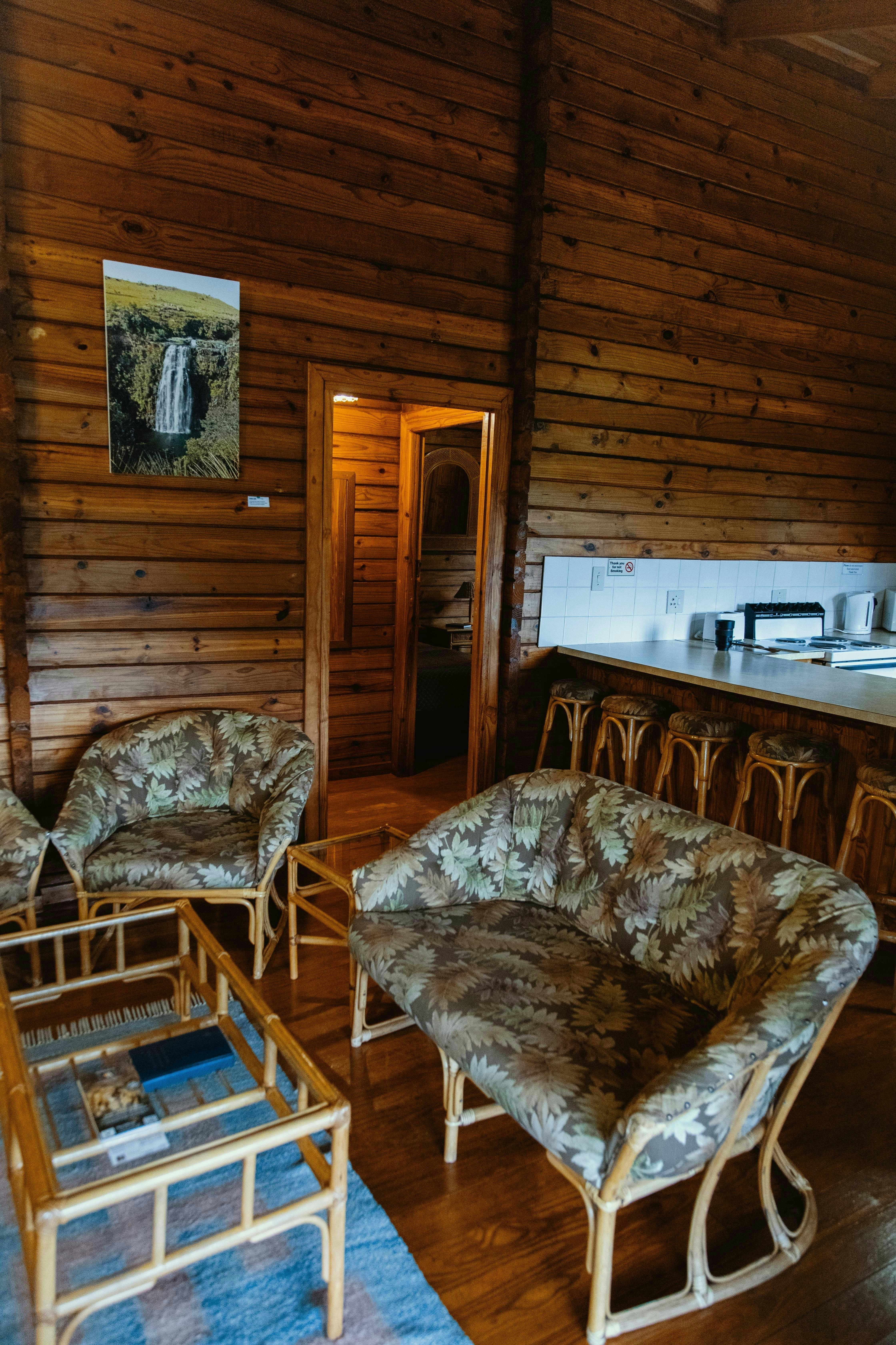 Die oopplan-sitkamer beskik oor 'n kombuis toegerus met 'n yskas-vrieskas, gasstoof, oond, mikrogolfoond, basiese eetgerei, breekware en tee- en koffiemaakgeriewe. Dit strek tot by die sitkamer wat met gemaklike rusbanke gemeubileer is.