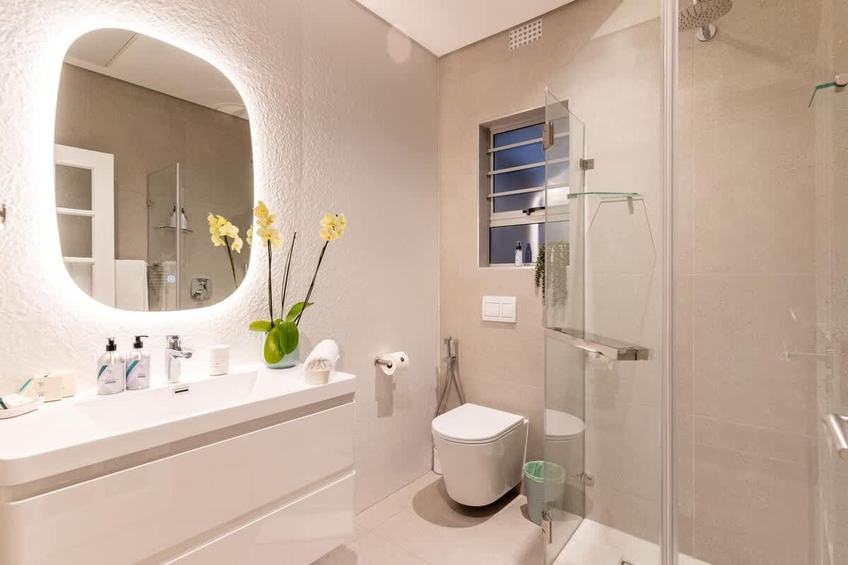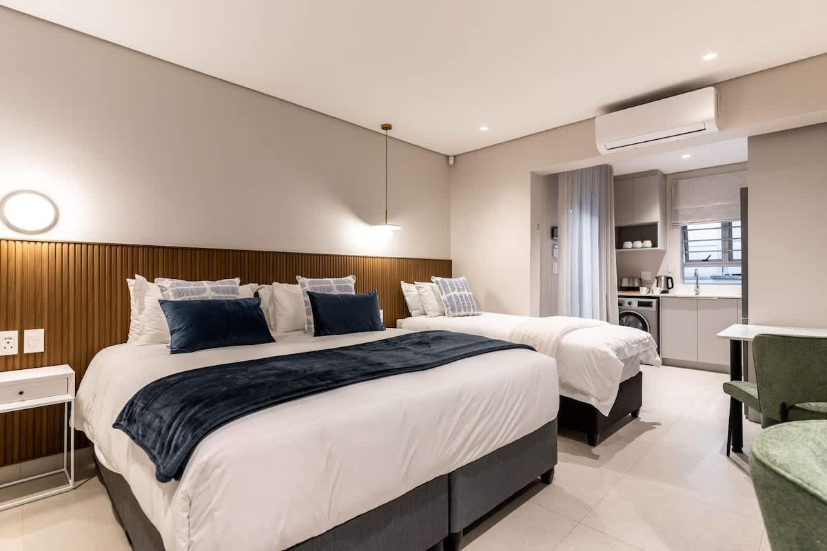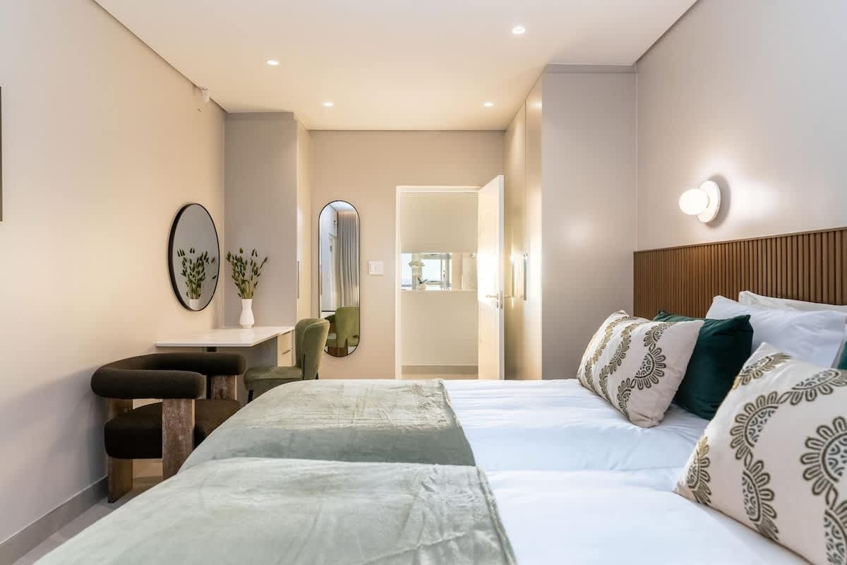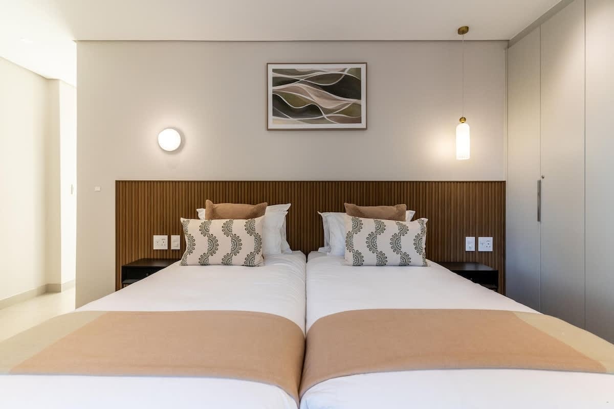 Die woonstel bestaan uit 4 slaapkamers en 4.5 badkamers, wat slaapplek bied vir tot 9 gaste. Die eerste slaapkamer is ingerig met 'n koninggrootte-bed en het 'n en suite-badkamer met 'n stort. Die tweede slaapkamer het ook 'n koninggrootte-bed, terwyl die derde slaapkamer met 2 enkelbeddens ingerig is. Twee gastebadkamers is elk ingerig met 'n stort, en 'n derde badkamer het net 'n toilet en wasbak.