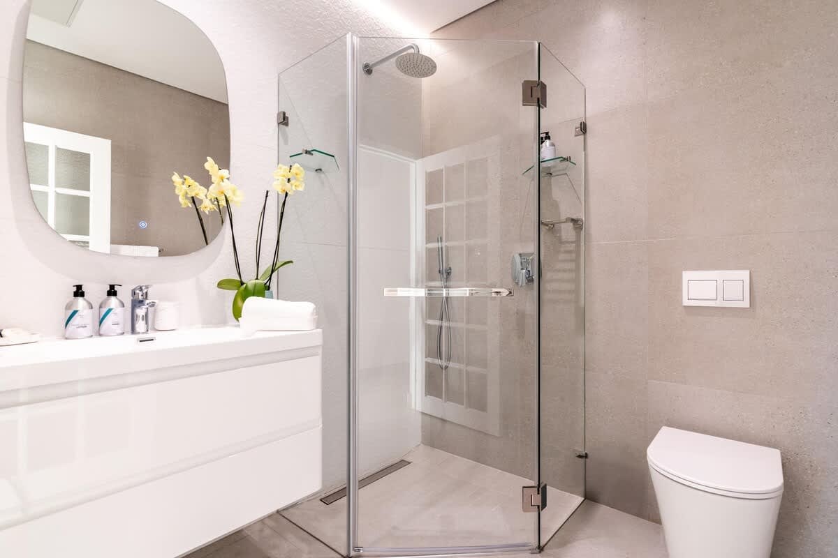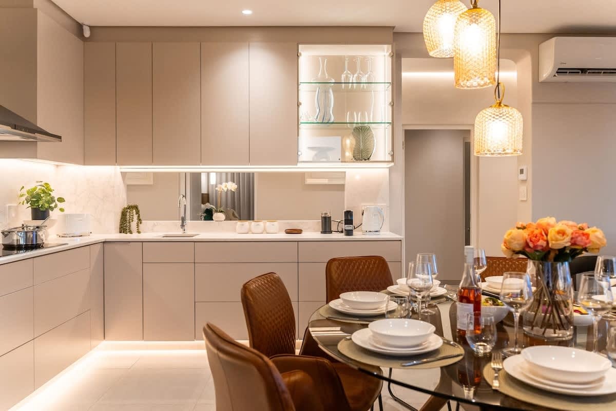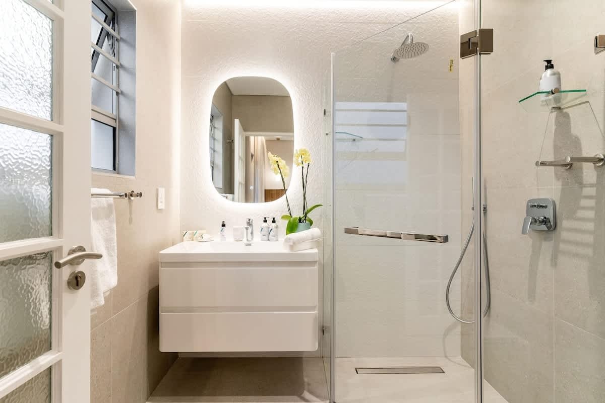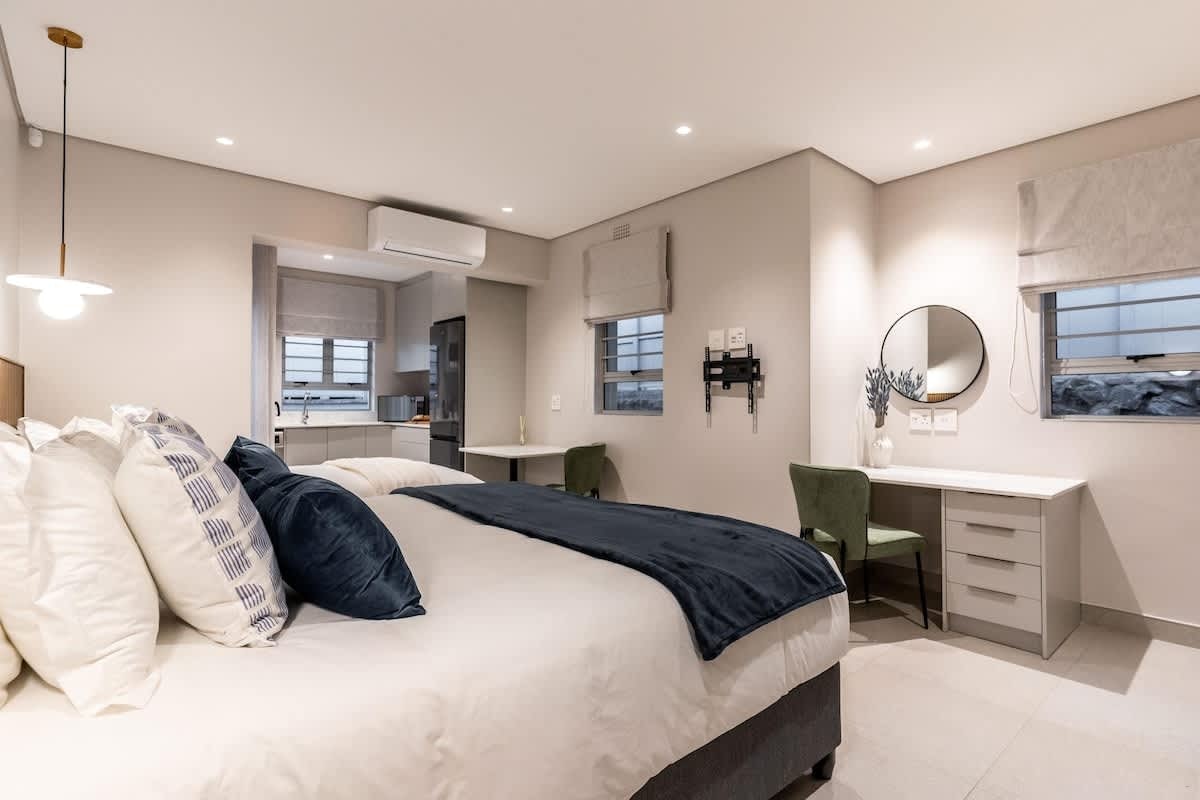 Die woonstel bestaan uit 4 slaapkamers en 4.5 badkamers, wat slaapplek bied vir tot 9 gaste. Die eerste slaapkamer is ingerig met 'n koninggrootte-bed en het 'n en suite-badkamer met 'n stort. Die tweede slaapkamer het ook 'n koninggrootte-bed, terwyl die derde slaapkamer met 2 enkelbeddens ingerig is. Twee gastebadkamers is elk ingerig met 'n stort, en 'n derde badkamer het net 'n toilet en wasbak.