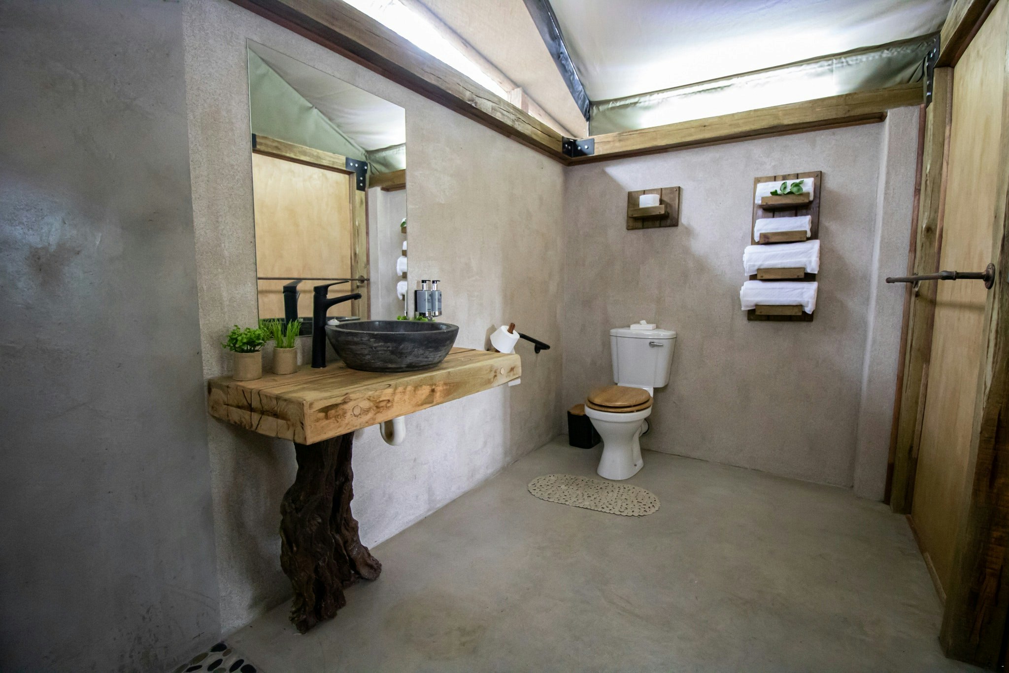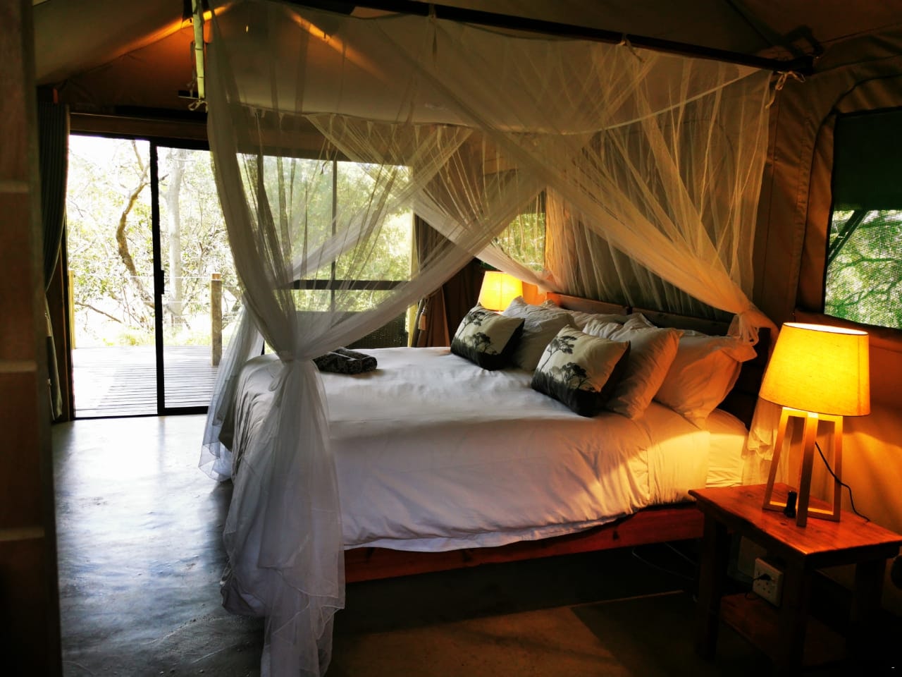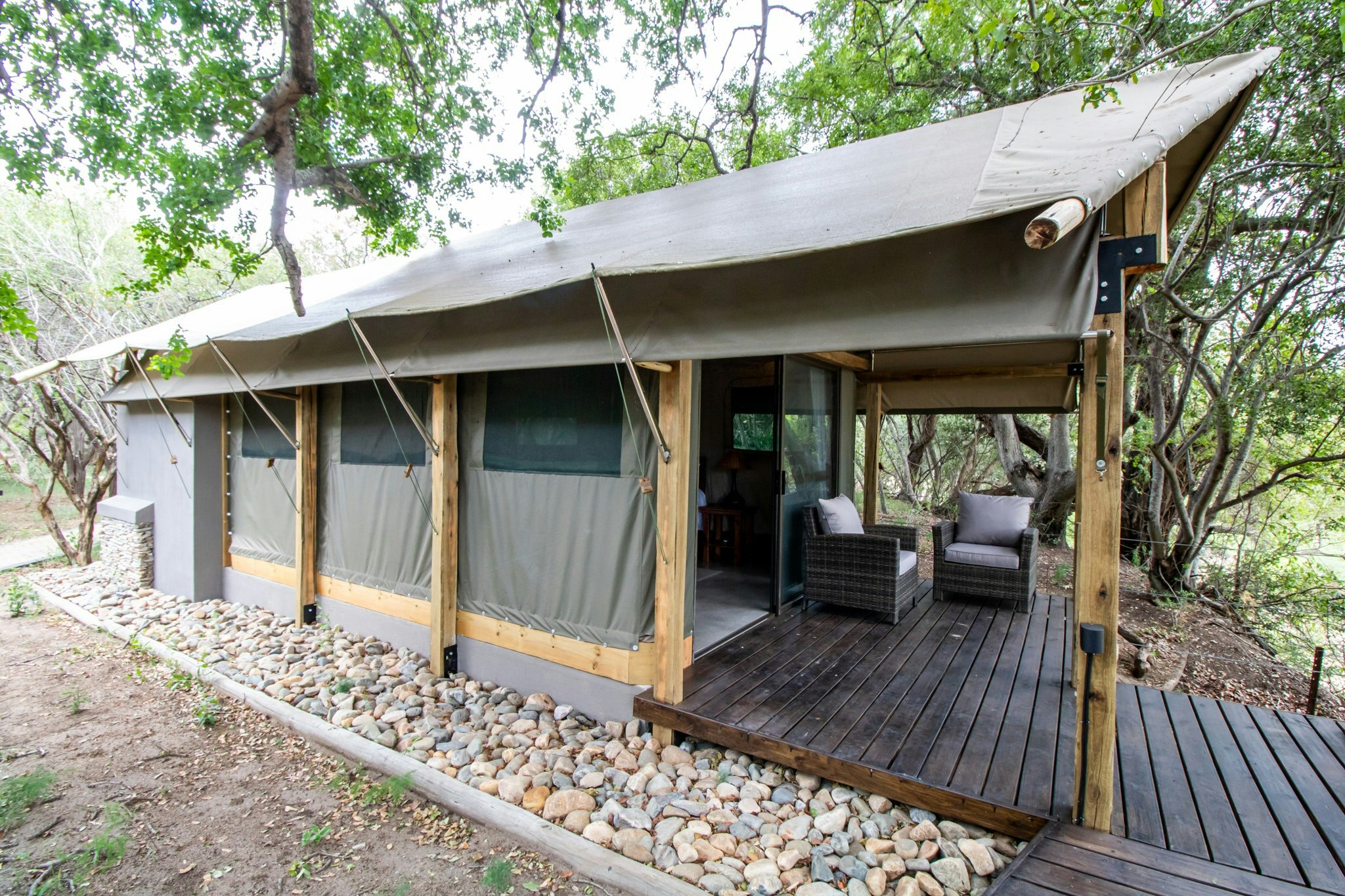 Die lodge het regdeur plaveisel wat sorg vir maklike toegang en bied verskeie luukse tente wat slaapplek vir 2 gaste het. Elke tent het lugversorging, 2 enkelbeddens of 'n koninggrootte-bed en 'n en suite-badkamer met 'n stort en toilet. Linne en handdoeke word voorsien. Die tente het WiFi en 'n stoep wat 'n uitsig oor die rivierbedding en bosveld bied.