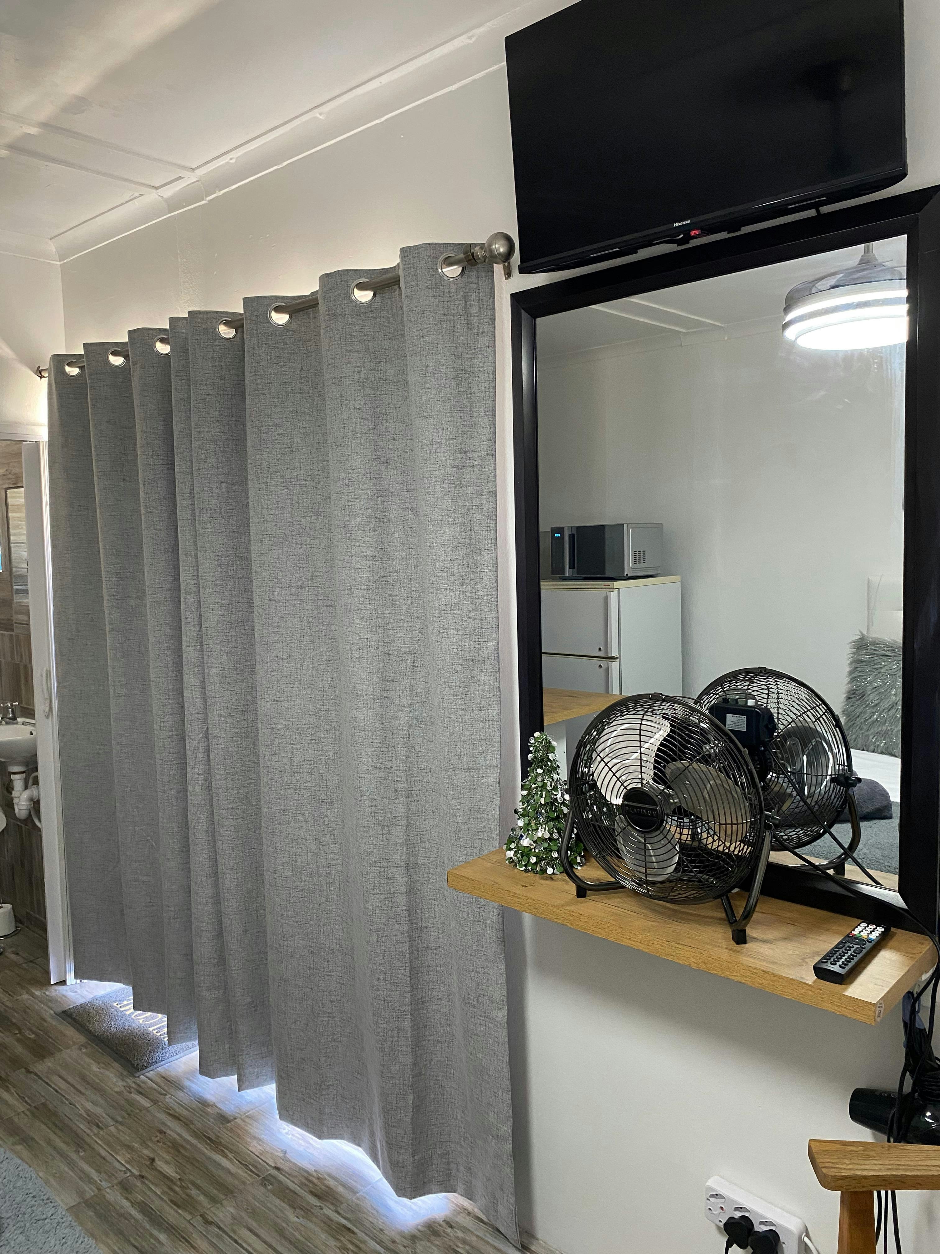 Die kombuisie is toegerus met 'n tweeplaatstoof, 'n elektriese pan, 'n yskas-vrieskas, 'n mikrogolfoond en tee- en koffiemaakgeriewe. Gaste kan gratis WiFi, veilige parkering agter 'n hek en 'n privaat braai-area met buitesitplek geniet.