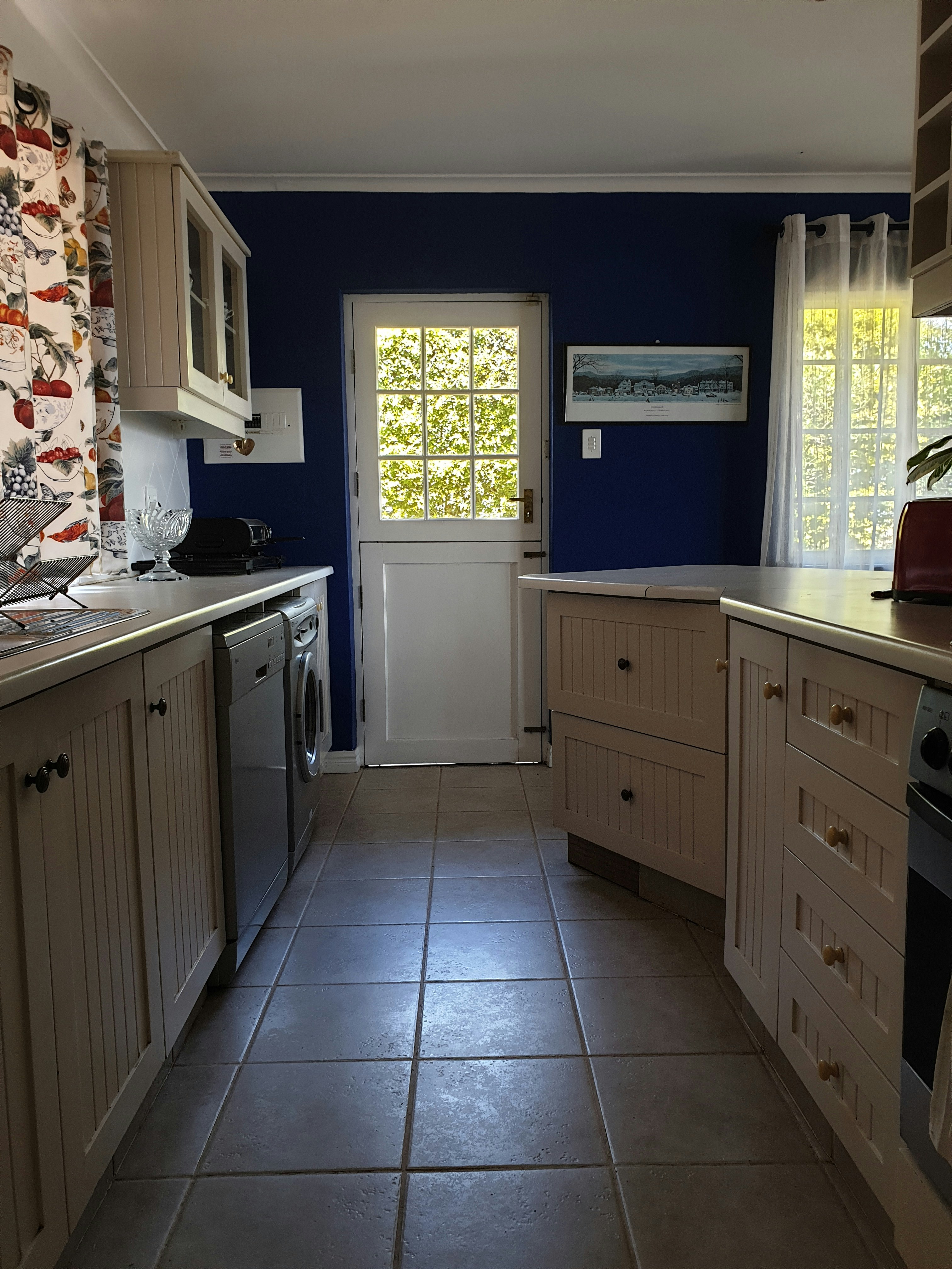 Die kombuis is volledig toegerus vir selfsorg met 'n yskas, oond en stoof, mikrogolf, asook 'n wasmasjien en tuimeldroër. Die kothuis het 'n TV met volle DStv-kanale, WiFi en 'n snoesige kaggel wat hout brand.