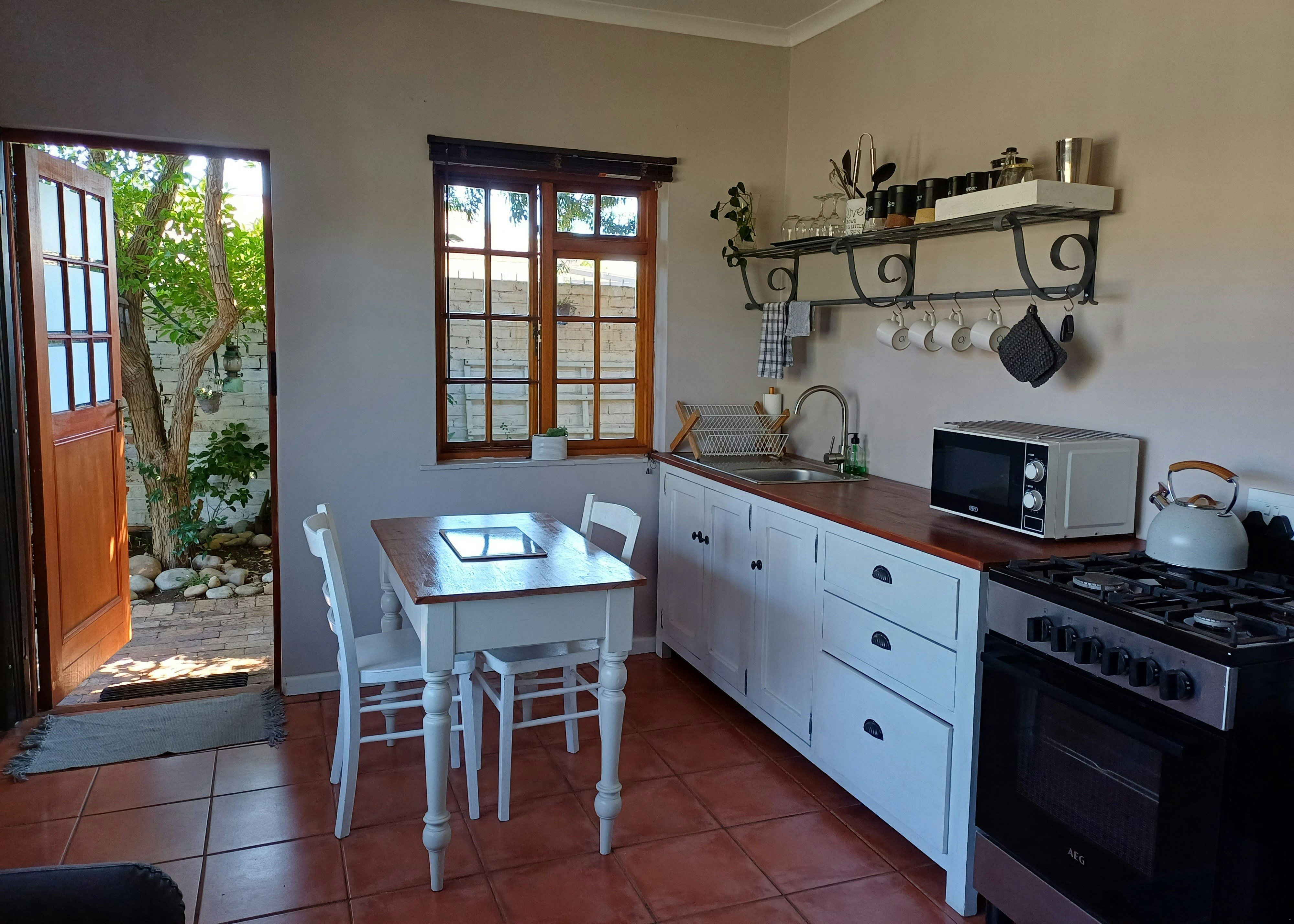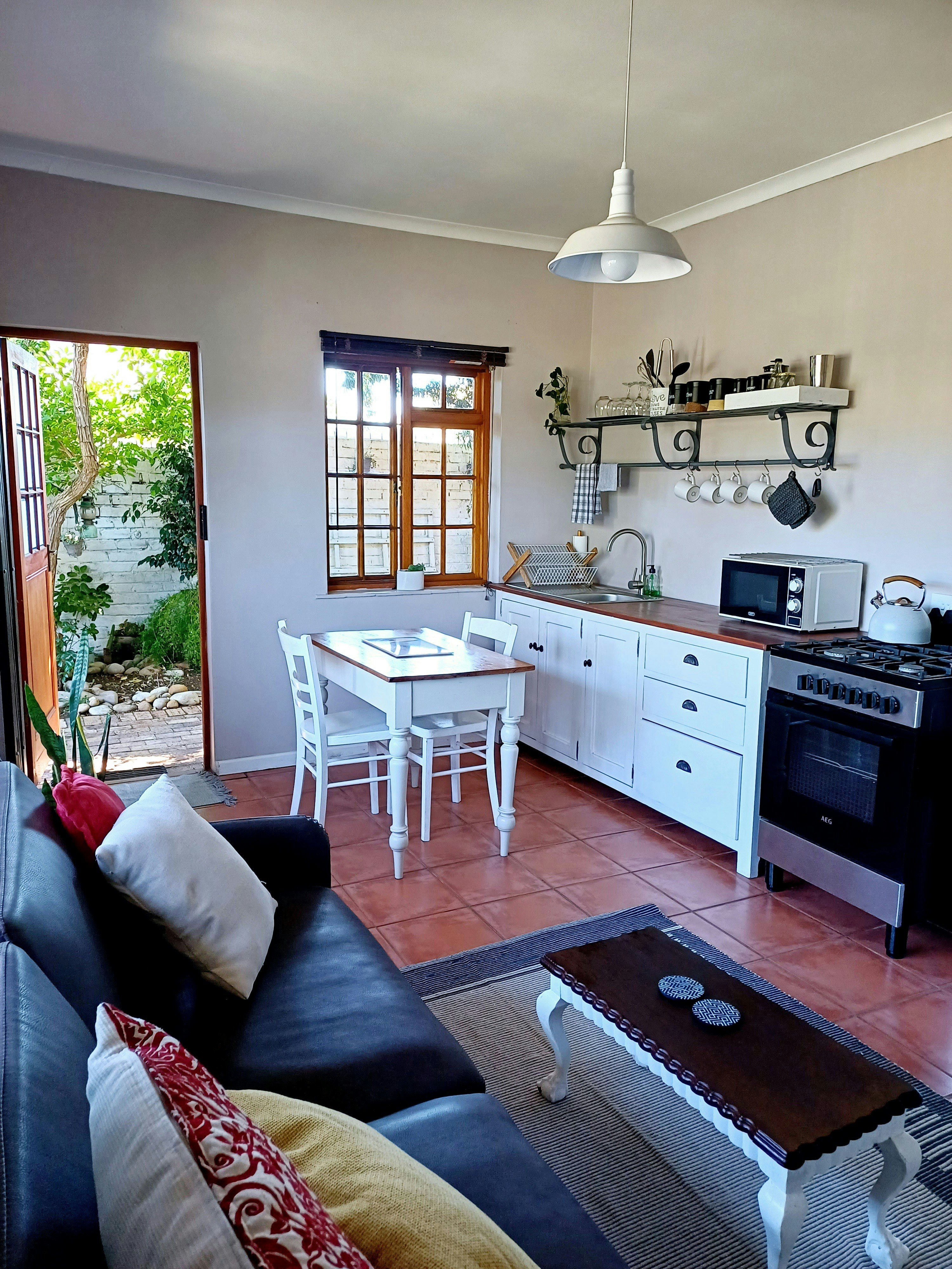 Die oopplan-kombuis het 'n yskassie, 'n gasstoof en elektriese oond, mikrogolfoond, ketel, broodrooster en tee- en koffiemaakgeriewe toegerus. Ander geriewe sluit 'n braai-area in die binnehof, parkeerplek op die perseel en WiFi in.