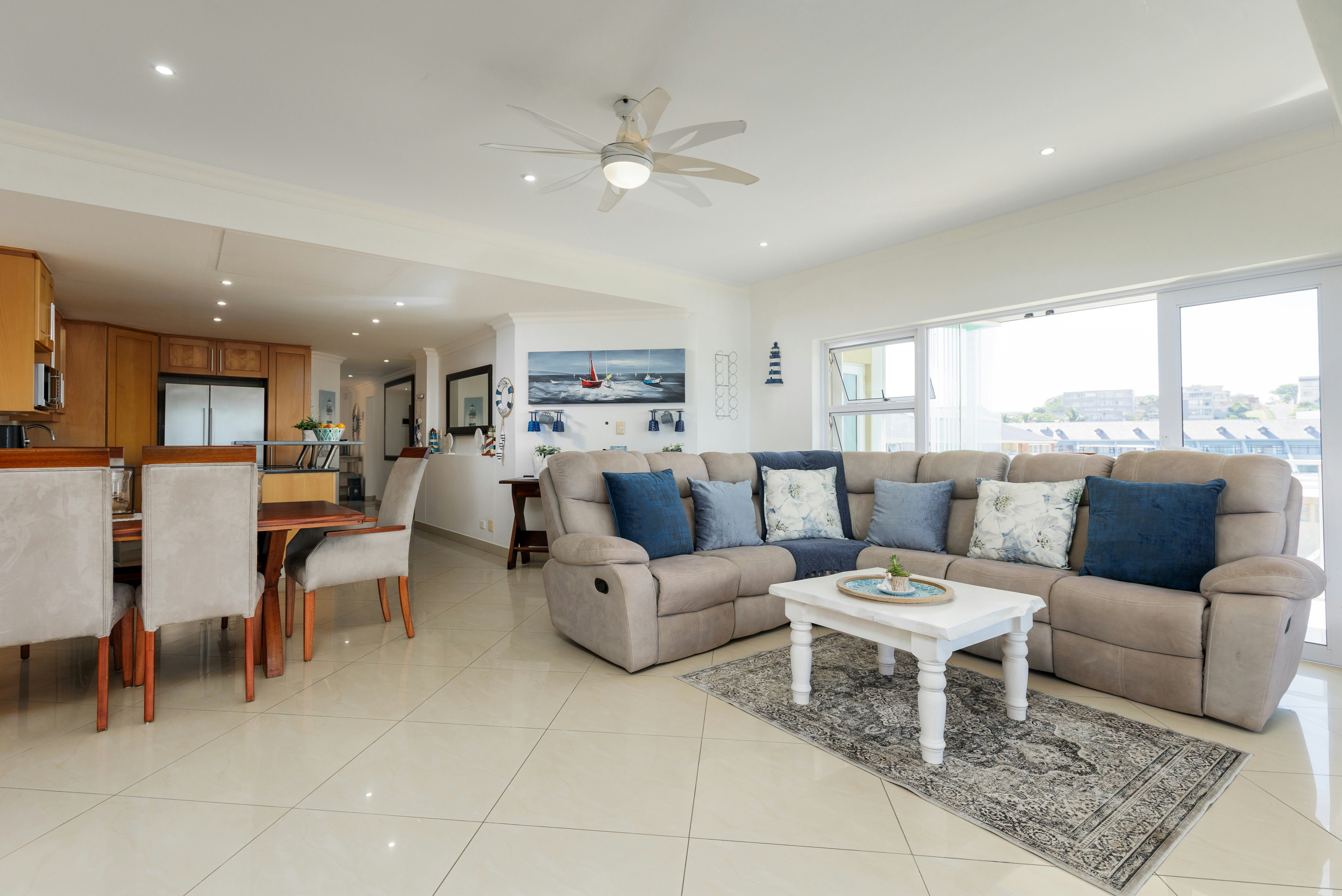 Die leefarea het 'n oopplan-ontwerp met 'n volledig toegeruste kombuis, insluitend 'n stoof, oond, mikrogolfoond, lugbraaier, ketel, broodrooster, yskas-vrieskas, eetgerei en breekware. Vir ekstra gerief is 'n wasmasjien ook beskikbaar. 'n Eetkamertafel met 6 sitplekke langs die kombuis is perfek vir etes. Die sitarea is gemeubileer met gemaklike sitplek en 'n slim-TV met OpenView-kanale. Gaste is welkom om hul eie DStv-dekodeerder saam te bring.