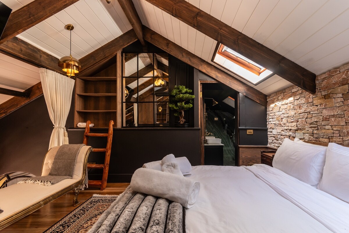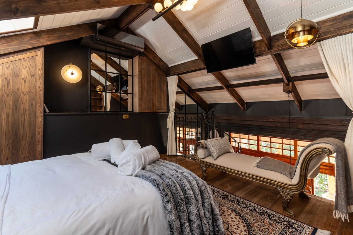 Outside, guests have access to additional outdoor seating in the tranquil backyard with breathtaking mountain views, including a braai area, ideal for sundowners.