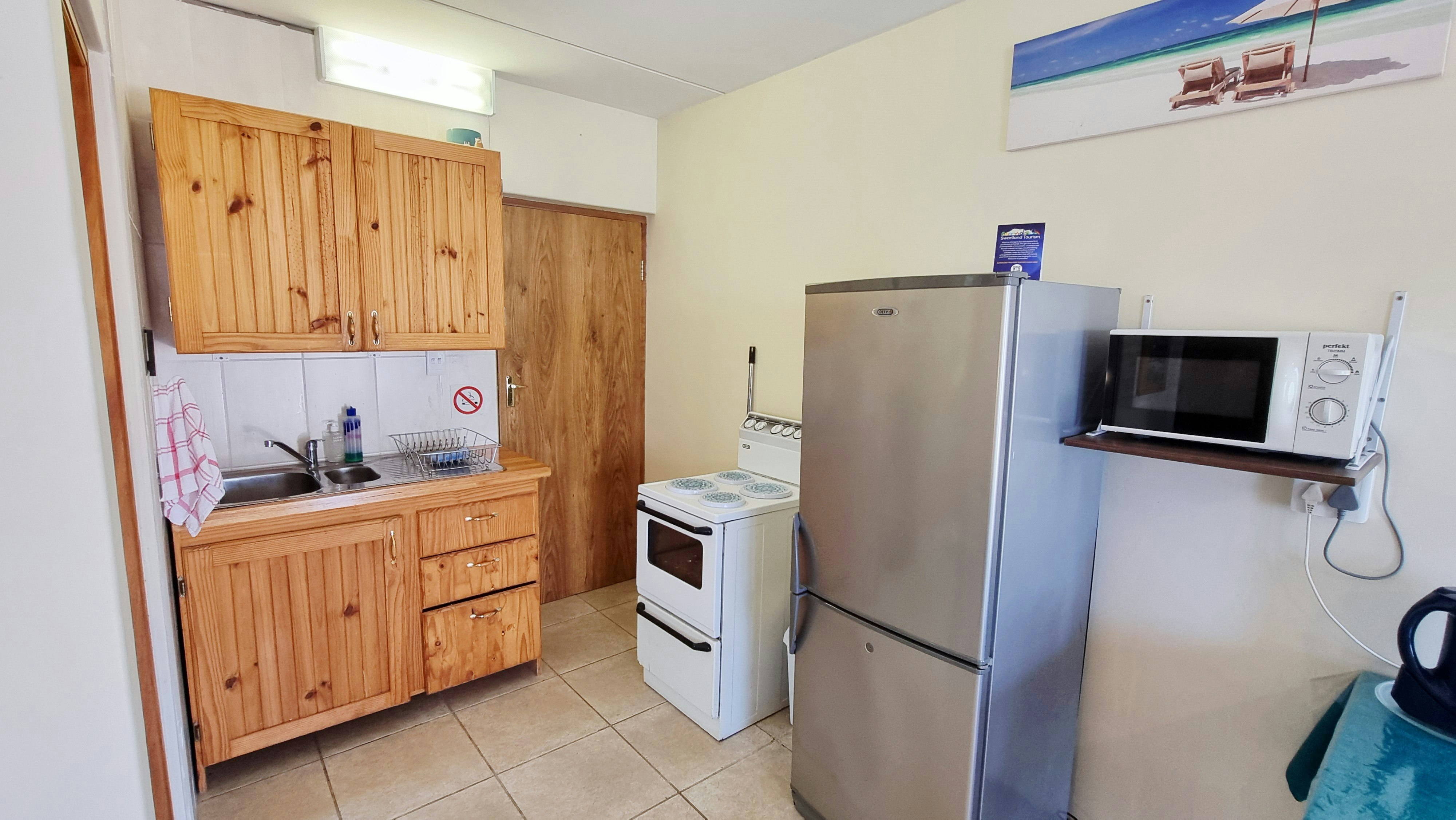 Die kombuis is toegerus met 'n yskas, mikrogolf, stoof en oond, asook 'n tafel met 2 stoele. Daar is 'n TV met 'n USB-koppelpunt en DStv OpenView. Gaste is ook welkom om hulle eie dekodeerder saam te bring.