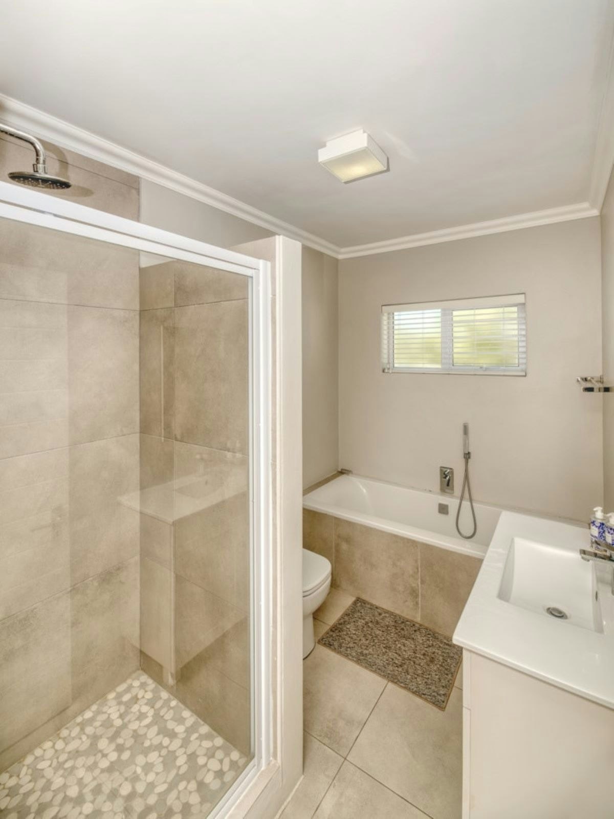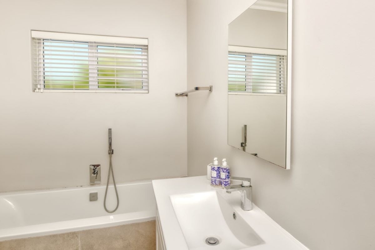 Die huis het 3 slaapkamers en 2 badkamers. Die eerste slaapkamer het 'n dubbelbed en die tweede en derde slaapkamer het elkeen 2 enkelbeddens. Die eerste badkamer het 'n bad, stort, wasbak en toilet, en die tweede badkamer het ook 'n stort, bad, wasbak en toilet.