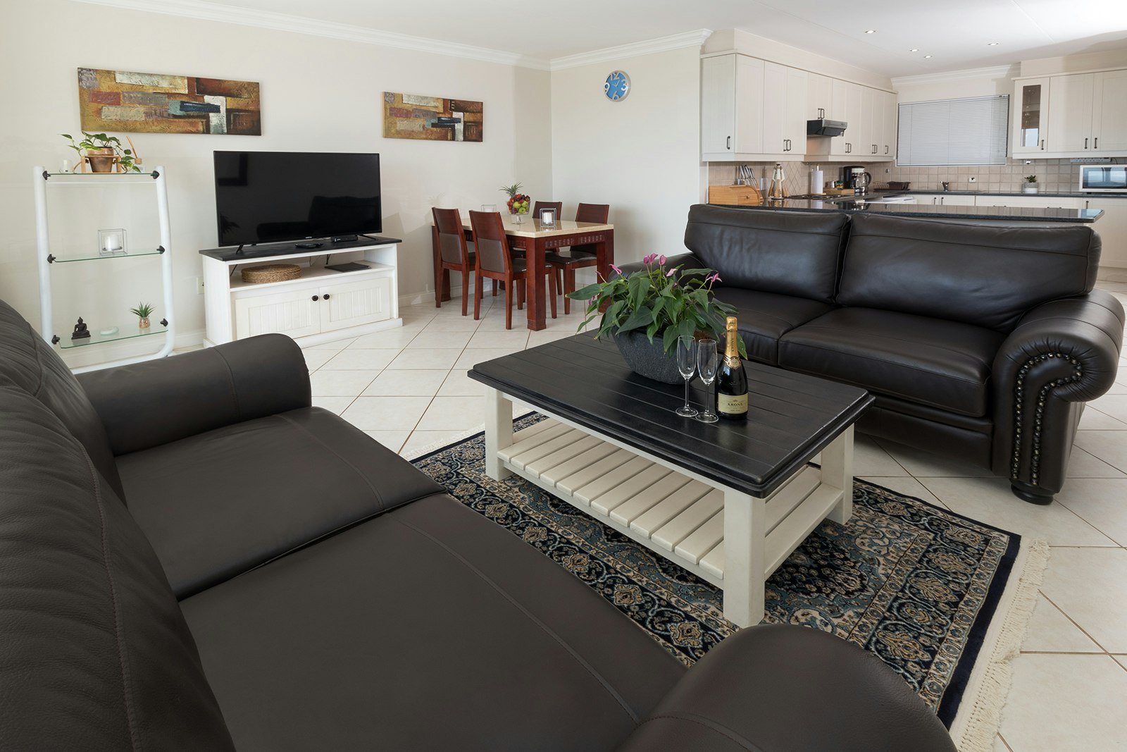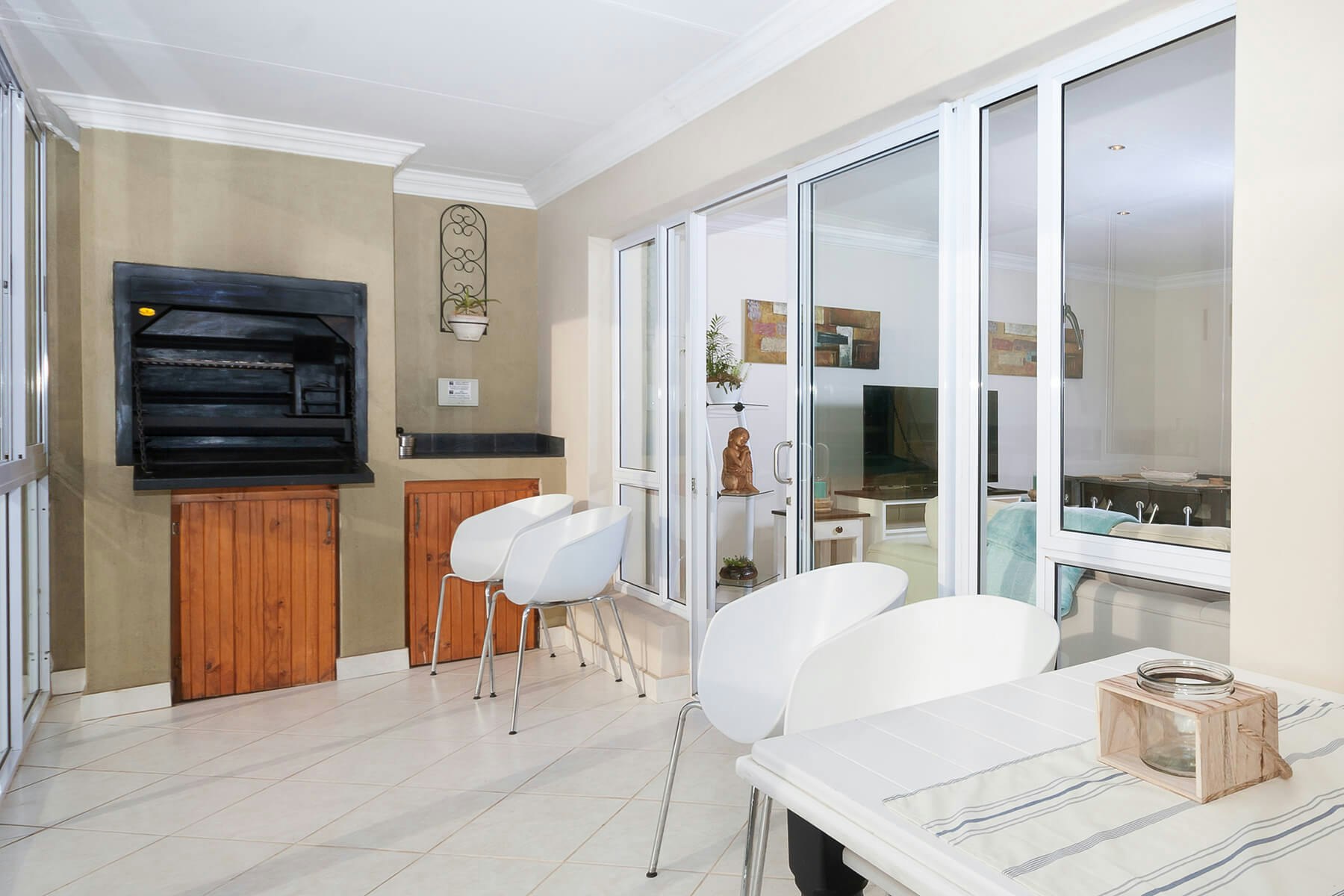 Daar is 'n kombuis wat toegerus is met 'n yskas-vrieskas, stoof, oond, mikrogolfoond, skottelgoedwasser en 'n wasmasjien. Die oopplan-sitarea het 'n TV met DStv en bied toegang tot 'n toegeboude balkon met 'n ingeboude braai-area. Gaste het ook toegang tot WiFi en veilige parkeerplek. Die gebou het 'n hysbak.