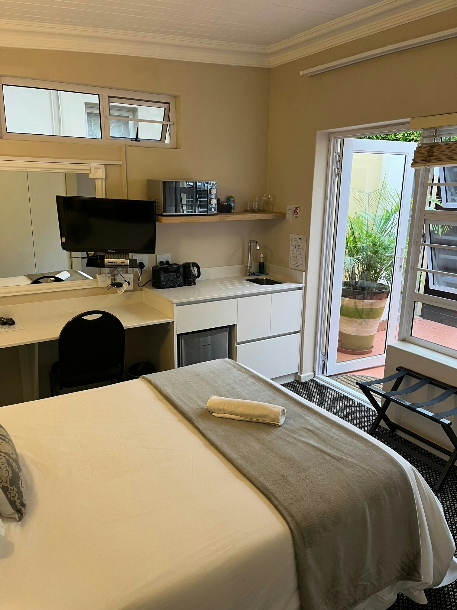 Each guest unit is individually decorated and has its own private barbecue courtyard area with braai facilities, an en-suite bathroom, fully equipped kitchenette, hairdryer, iron, telephone, wireless internet and DStv, (Selected channels). All guest units are very private and are serviced daily.