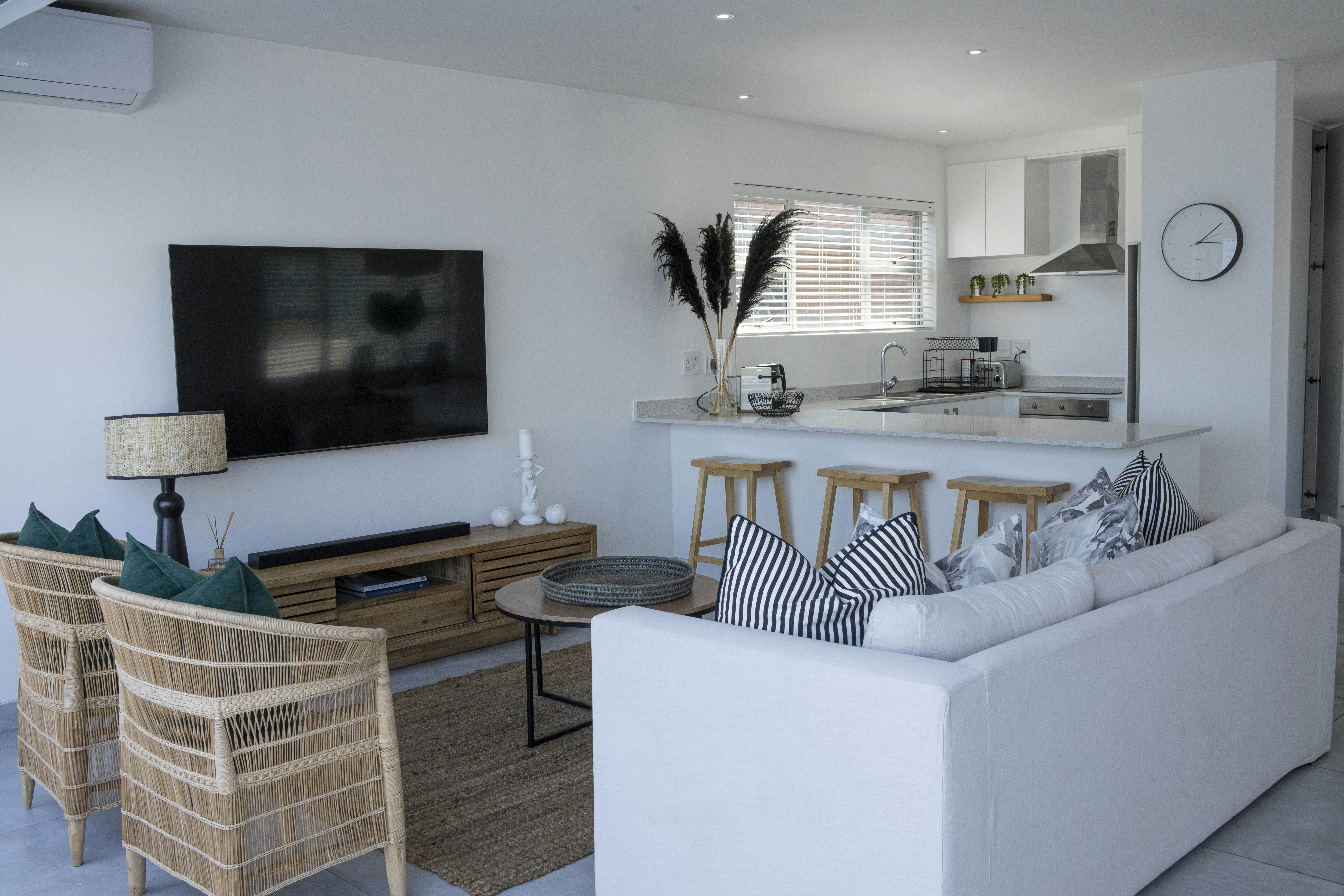 Die kombuis is met ’n yskas-vrieskas, stoof, oond, skottelgoedwasser en wasmasjien toegerus. Die eetarea het ’n etenstafel met 6 stoele. Die sitarea het lugversorging en ’n platskerm-TV met sekere DStv-kanale. Die leefarea het stapeldeure wat lei na ’n balkon met meubels, ’n ingeboude braai en pragtige see-uitsigte.