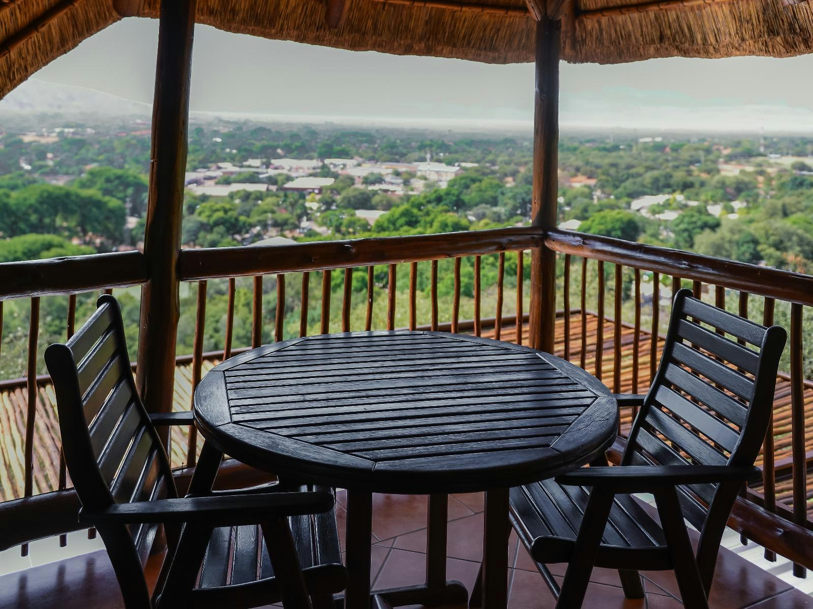 Ons bied verblyf in 5 kamers wat elk 'n TV met M-Net, 'n yskassie, 'n en suite-badkamer en lugversorging het. Gaste kan gerus hulle eie drankies saambring. Daar is 'n lieflike swembad en gaste kan ontbyt geniet terwyl hulle oor die Thabazimbi-bosveld en Waterberge uitkyk. Kom verlustig jou in die rustige bosveld en sit en kyk uit jou eie kamer of op die houtdek hoe die son oor Thabazimbi onder gaan.