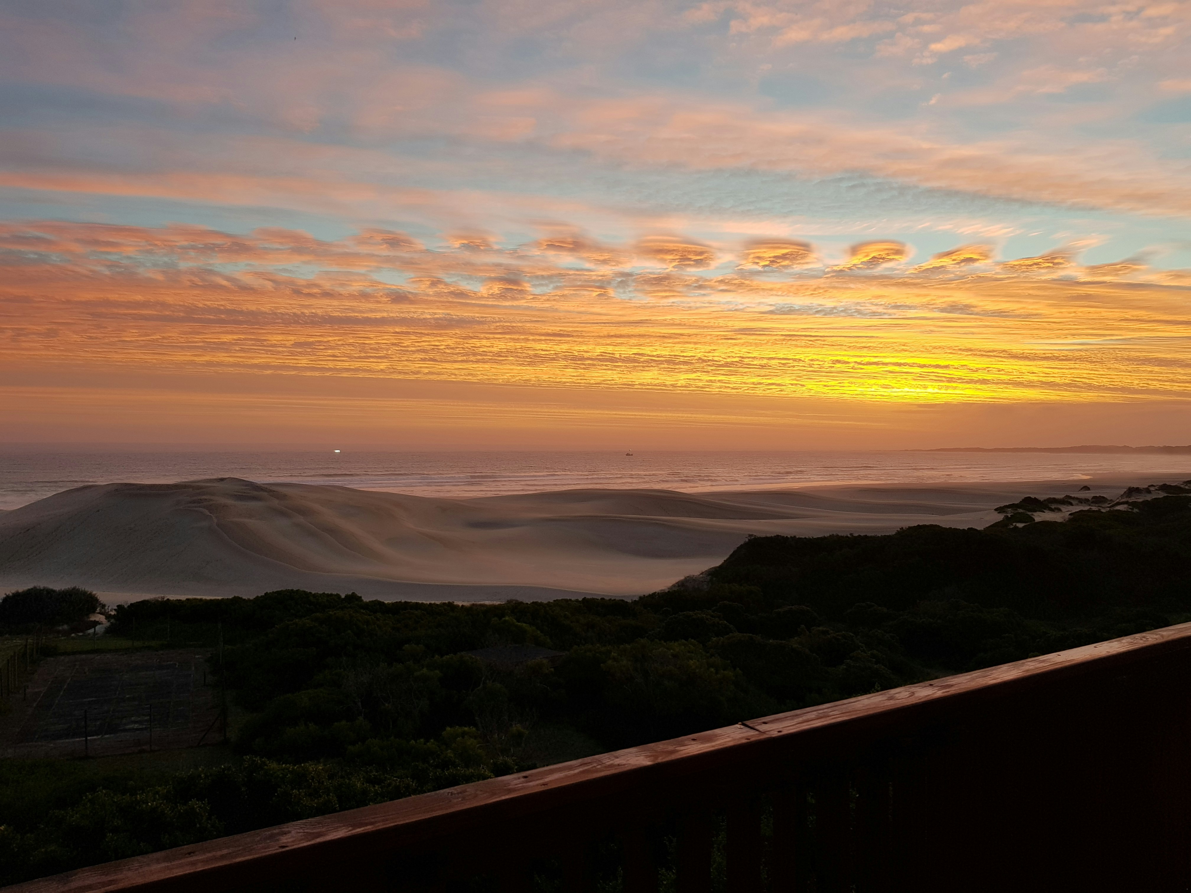 Die dek bied 'n prentjiemooi uitsig oor die see, die strand en van die sonsopkoms en sonsondergang. Dit is die perfekte plek om jou oggendkoffie te drink of die dag met 'n glasie wyn af te sluit.