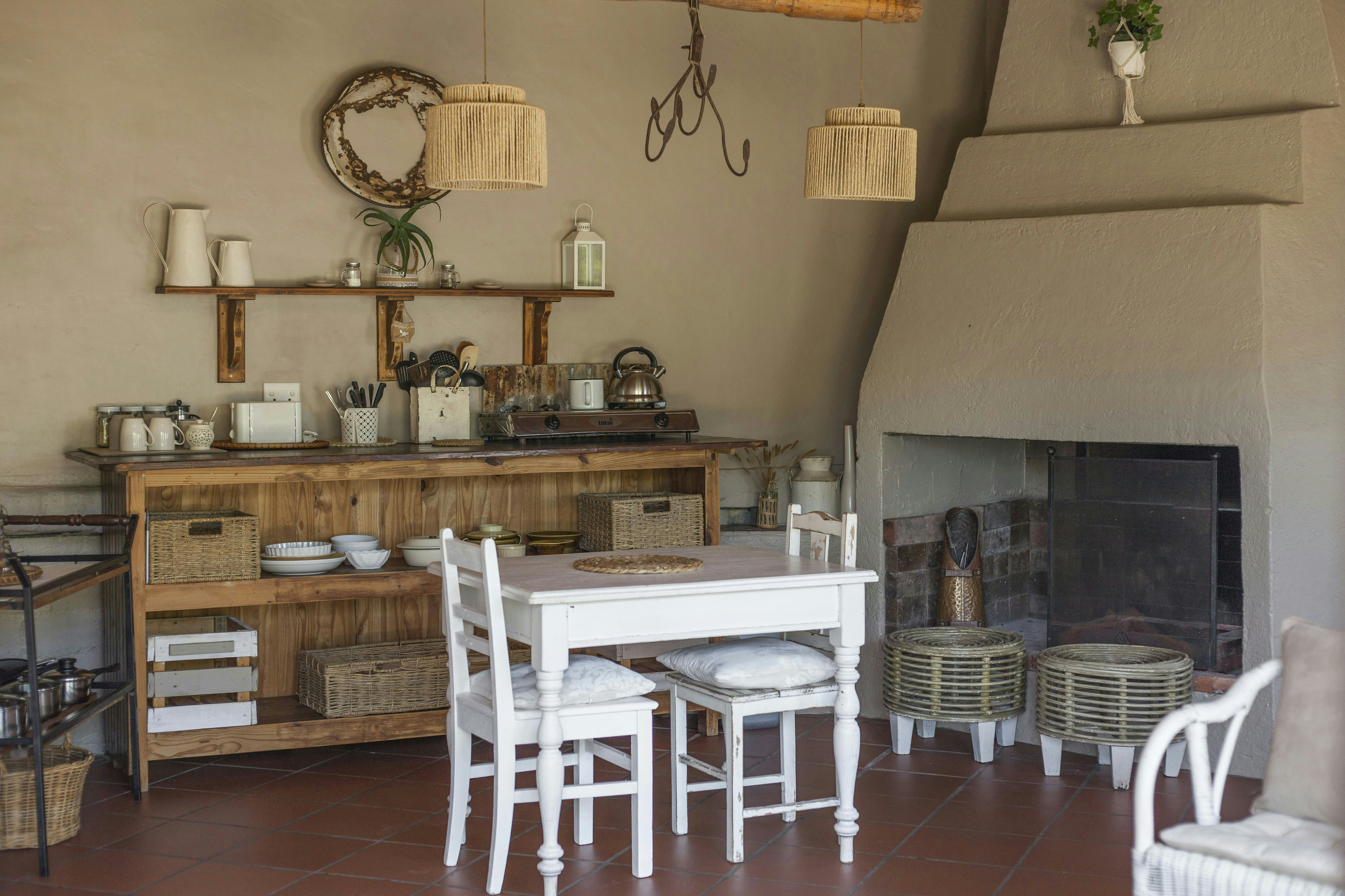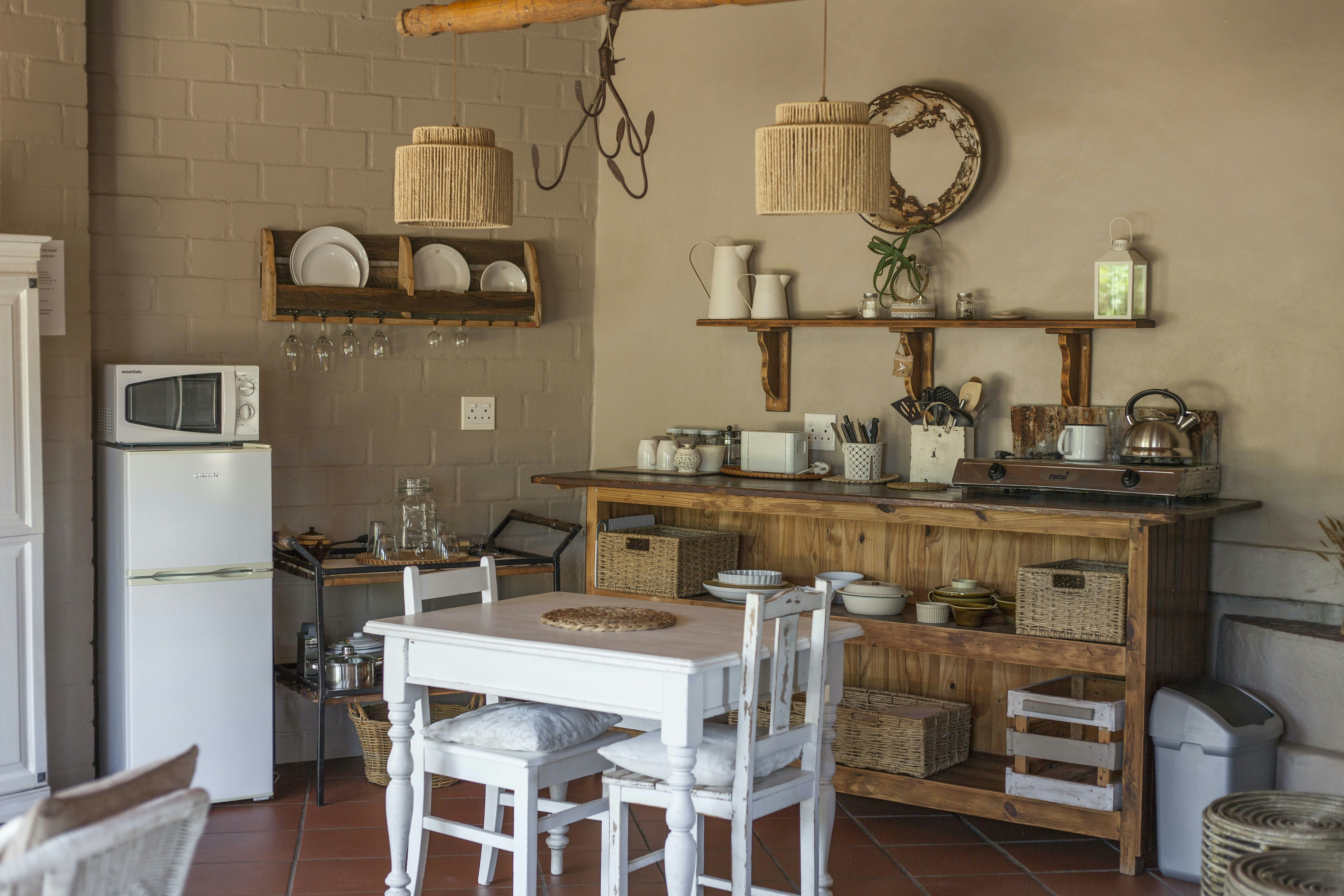 Die kombuisie is met 'n yskas-vrieskas, mikrogolfoond, tweeplaatgasstoof, eetgerei en breekware toegerus. Die leefarea het 'n etenstafel, gemaklike sitplek en 'n kaggel. Beurtkrag-gloeilampe en sonkrag-beligting word voorsien. Perdry is beskikbaar indien dit vooraf gereël word.