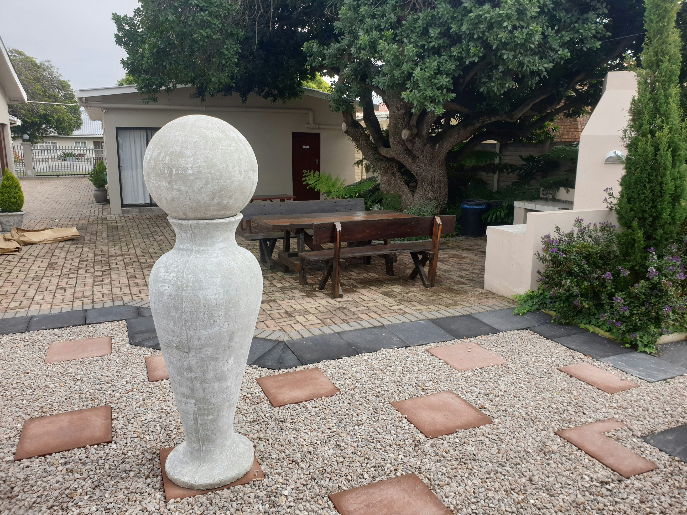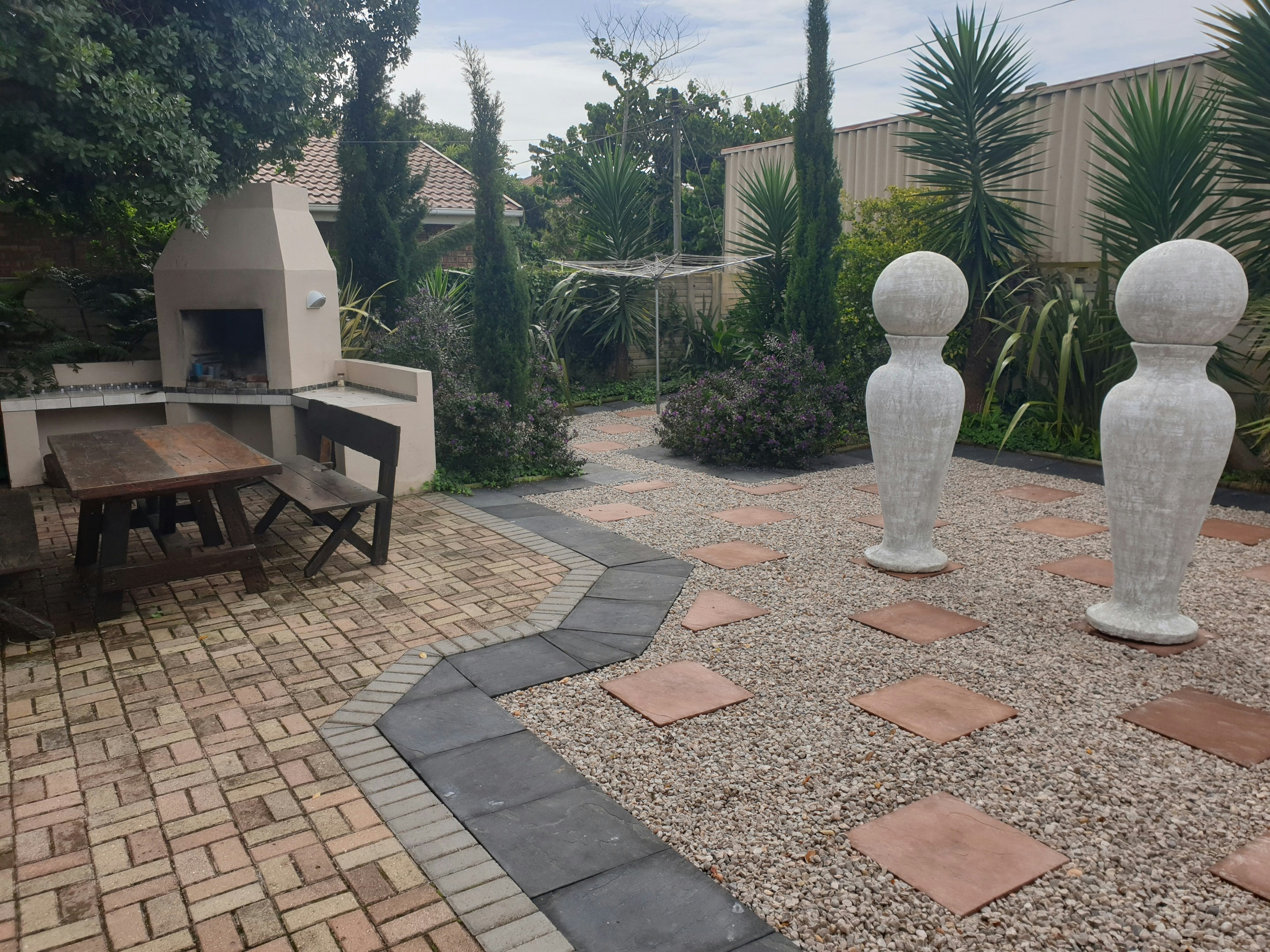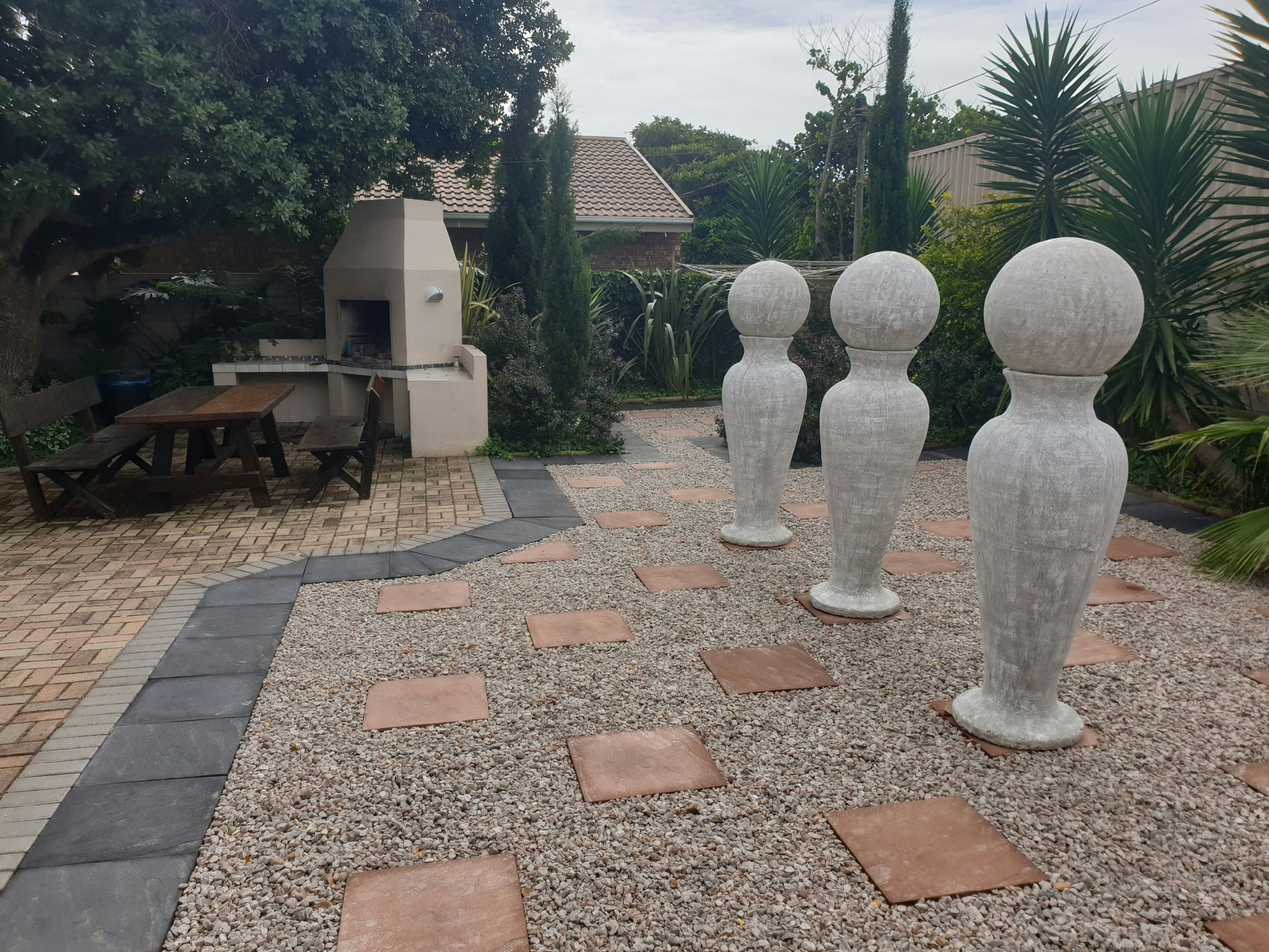 Die tuin bied 2 braai-areas met oorgenoeg sitplek wat jou sal noop om die warm aande aan die kus met 'n vleisie op die kole deur te bring. Daar is oorgenoeg veilige parkeerplek vir geregistreerde gaste en besoekers met geslotekringtelevisie en eksterne straalsekuriteit.