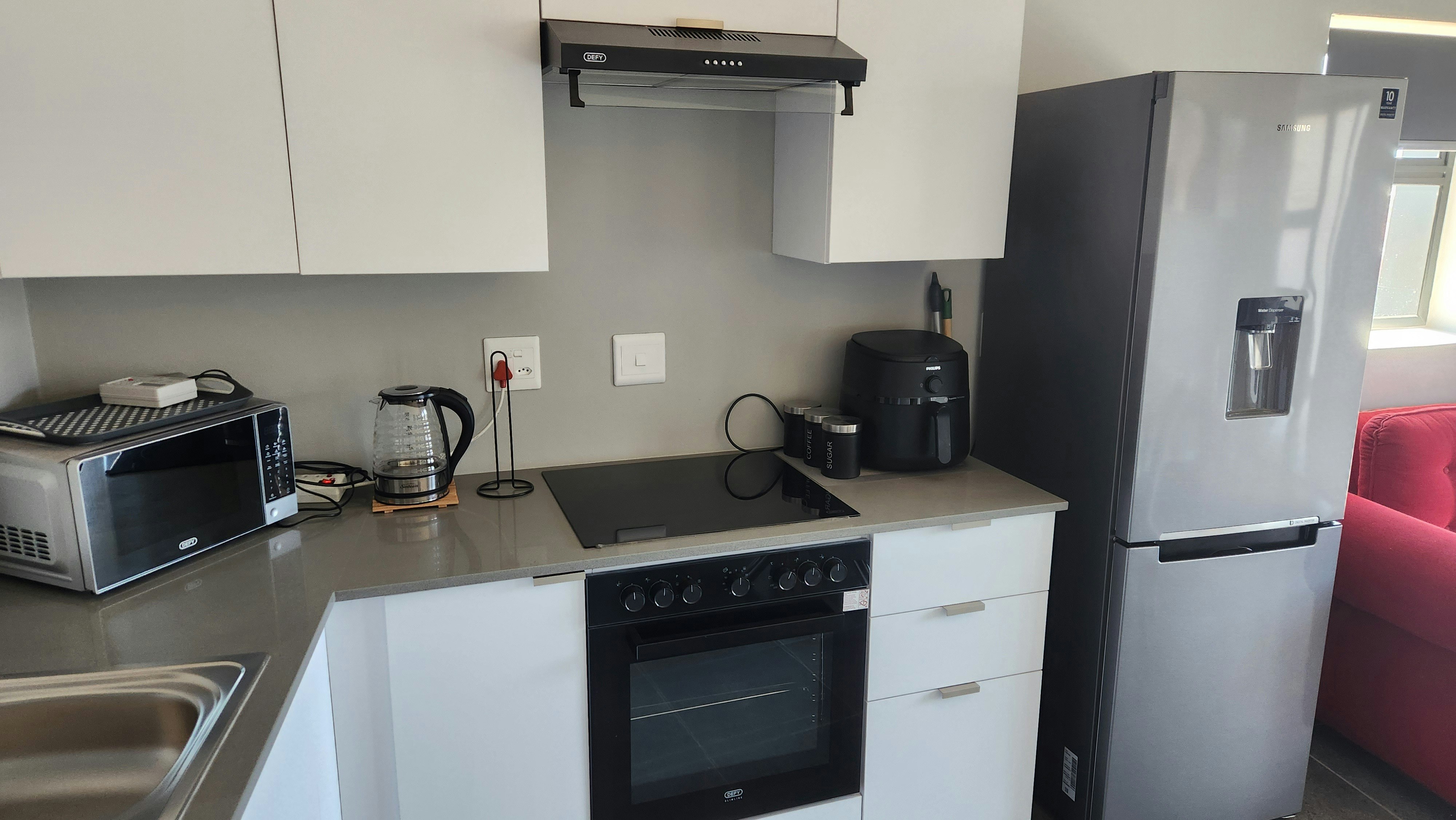 Die oopplan-leefarea beskik oor gemaklike sitplek en 'n goed toegeruste kombuis met 'n yskas-vrieskas, stoof, oond, mikrogolfoond en koffie- en teemaakgeriewe. Gaste kan na 'n privaat balkon stap om te ontspan, en parkering op die perseel word voorsien.