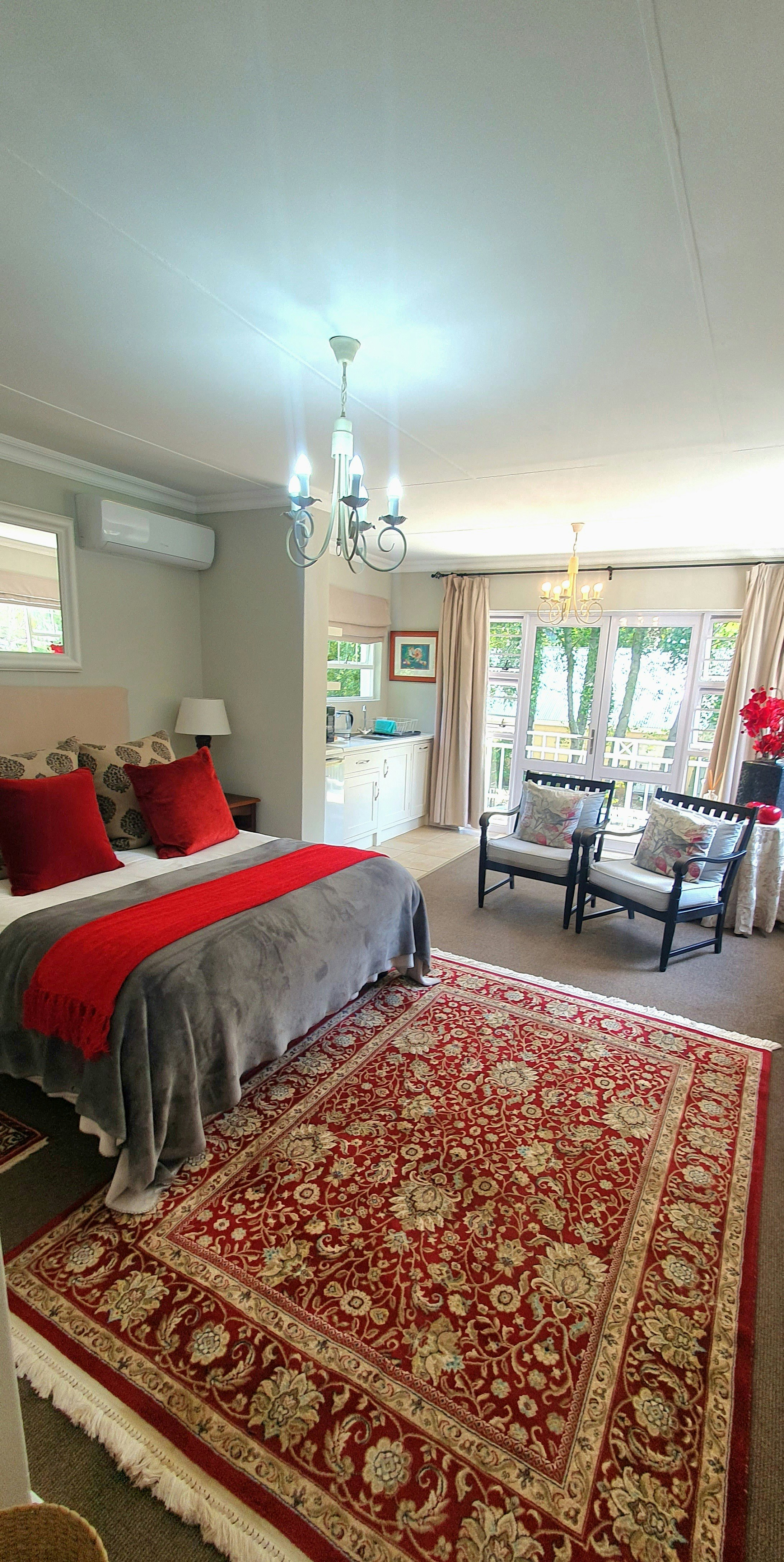 Gaste kan kies tussen 3 slaapkamers en 1 kothuis, elk met slaapplek vir 2 gaste, met 'n privaat badkamer en kombuisie. Bykomende geriewe sluit verwarmers en elektriese komberse, 'n TV met alle DSTV-kanale en gratis WiFi in. Braaigeriewe is ook beskikbaar. Die eiendom het sy eie watersuiweringstelsel direk vanaf die boorgat. Daar is 'n omskakelaarstelsel vir elektrisiteit, geen beurtkrag nie.