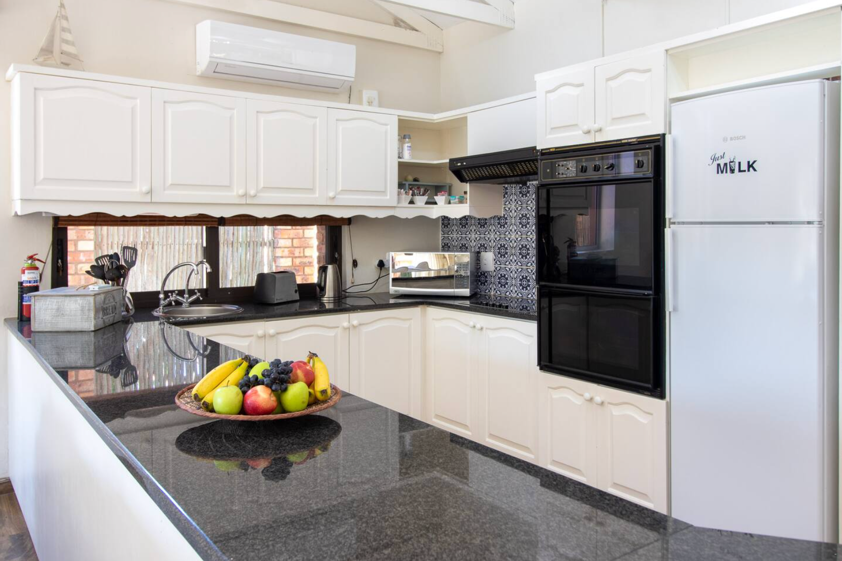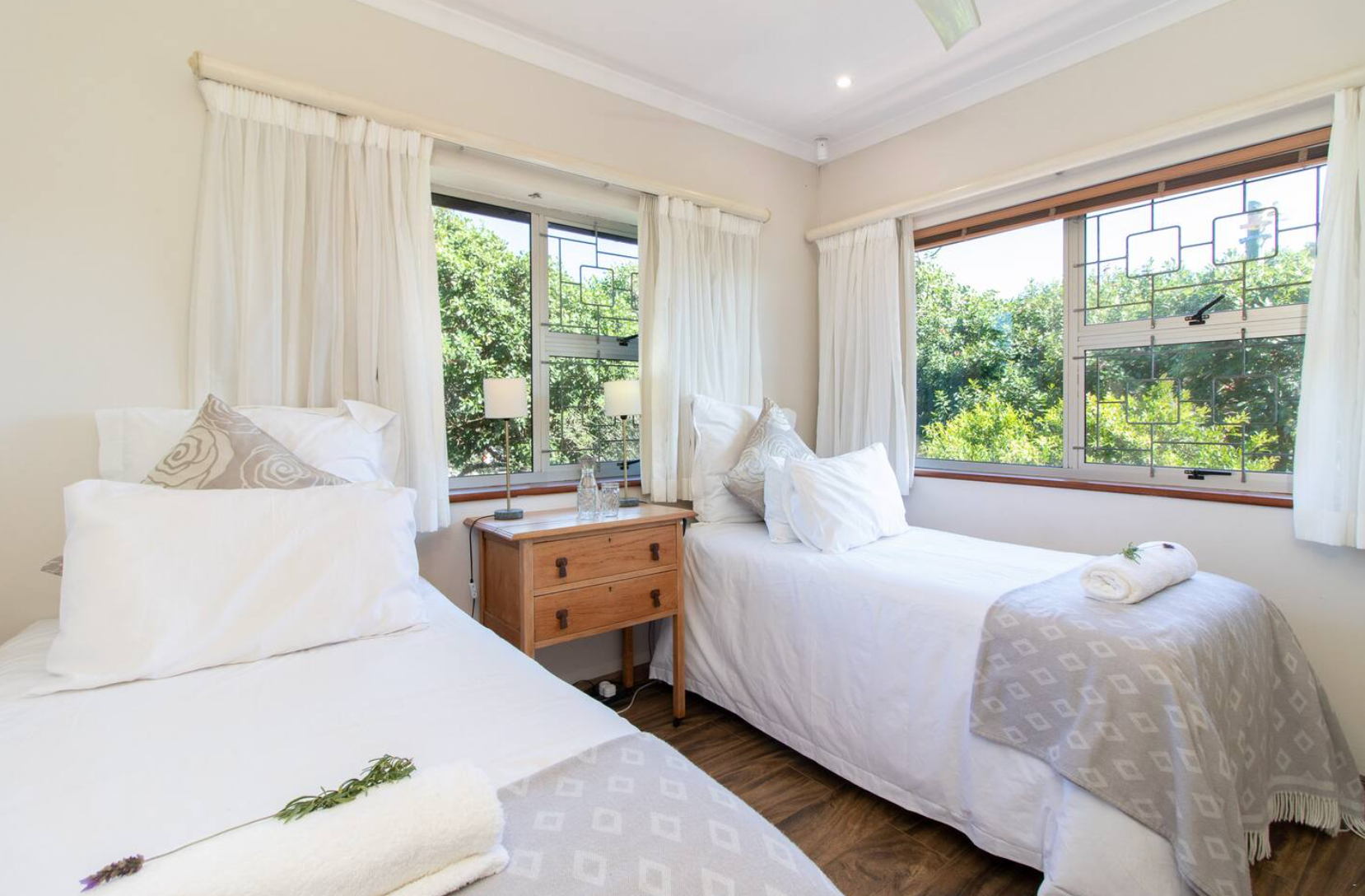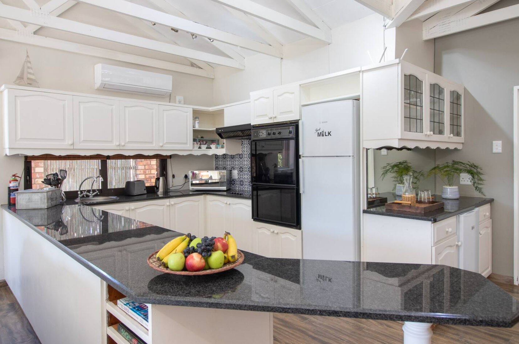 Hierdie huis met lugversorging bied slaapplek vir tot 8 gaste en bestaan uit 4 slaapkamers. Die hoofslaapkamer is gemeubileer met 'n koninggrootte bed, slaapbank en 'n en suite-badkamer met 'n stort, spa-bad, dubbelwasbakke en toilet. Die tweede en derde slaapkamers het elk dubbelbeddens, terwyl die vierde slaapkamer 2 enkelbeddens het. Die oorblywende badkamers is toegerus met 'n stort, wasbak en toilet, waarvan een ook 'n bad insluit. Daarbenewens is daar 'n gastebadkamer met 'n wasbak en toilet.