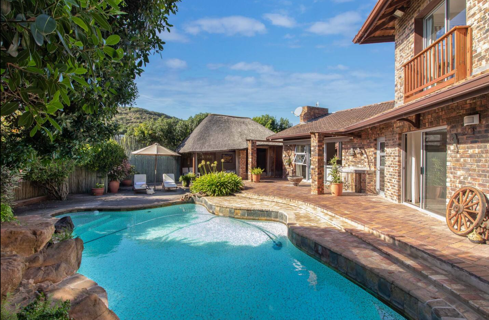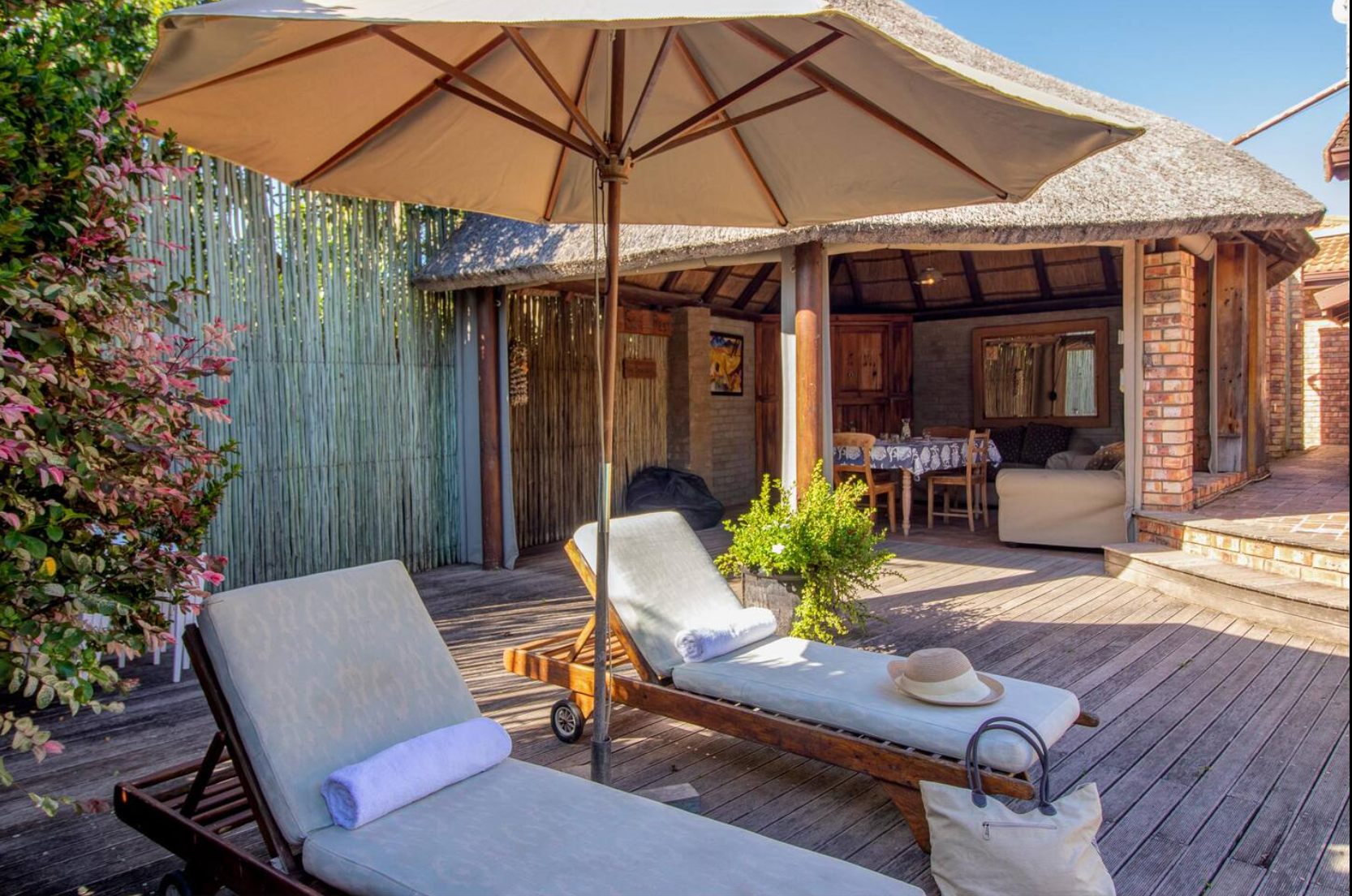 Buite het gaste toegang tot 'n pragtige tuin met ekstra buitesitplek, sonstoele en 'n braai-area. Gedurende die somermaande bied 'n verfrissende swembad 'n welkome ontsnapping van die hitte.