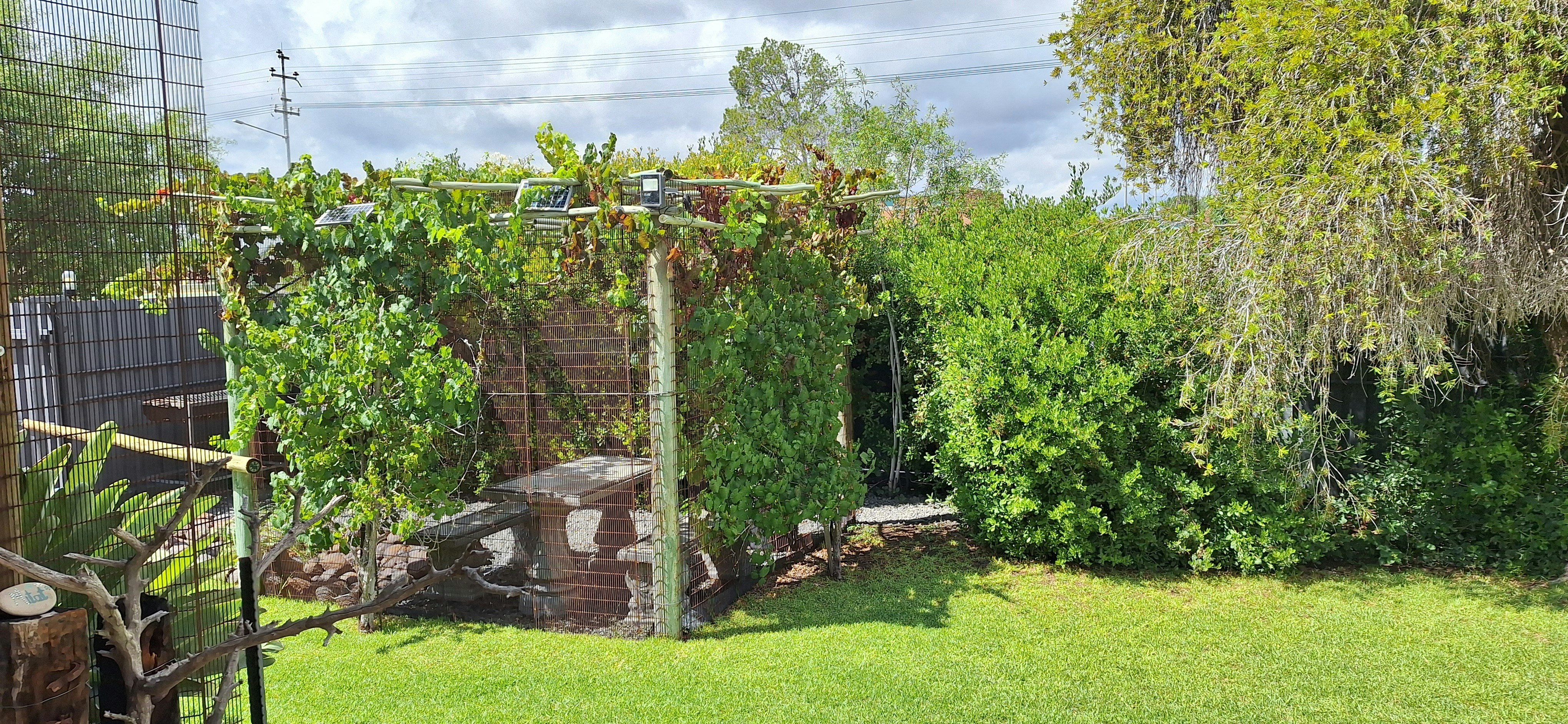 The guesthouse has 2 separate units, each with a private entrance. Unit 1 accommodates 1 to 2 guests in a bedroom with a king-size bed, air-conditioning, and a wardrobe. The en-suite bathroom has a shower and washbasin, with a separate toilet. The unit includes a private kitchenette with a fridge, microwave, and tea- and coffee-making facilities. A sliding door opens onto a private wooden deck with seating for 2. Unit 2 accommodates 1 to 4 guests and comprises 2 bedrooms, each with a king-size bed, wardrobe, and smart TV. The bedrooms share a bathroom with a shower and a separate toilet. This unit also includes an indoor coffee station and an undercover patio with a fridge, microwave, and dining table with 4 chairs.