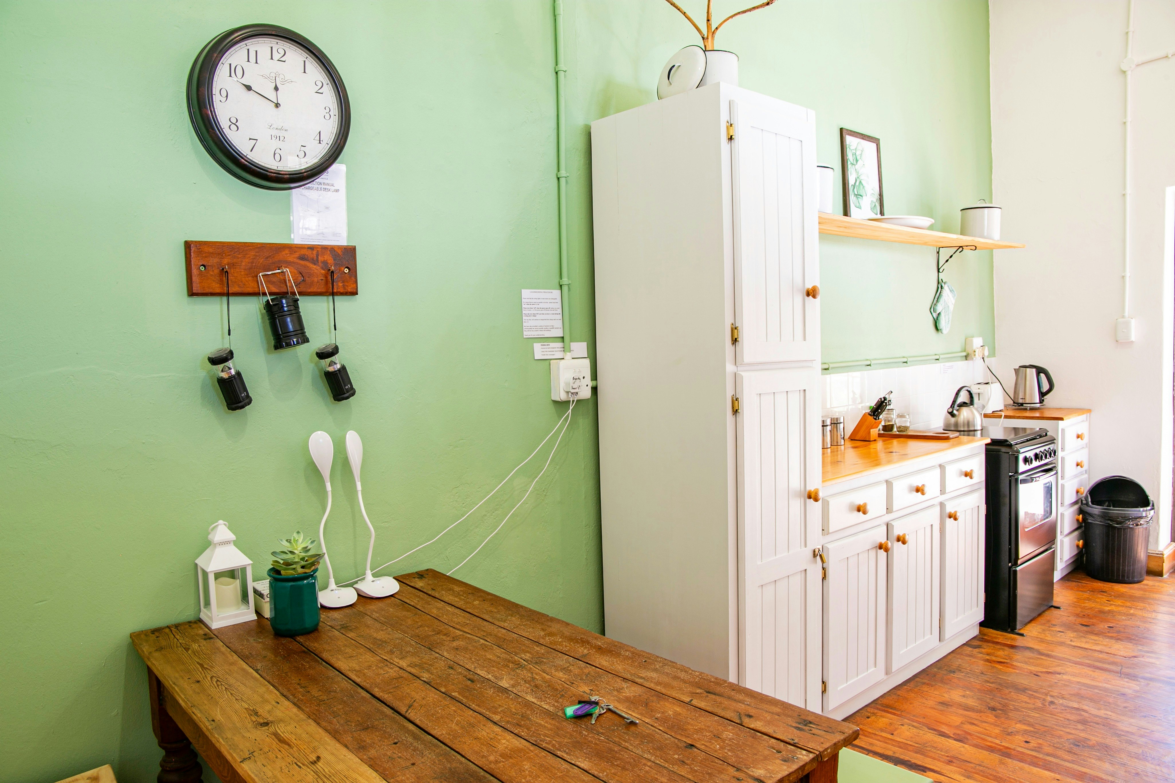 Daar is 'n kombuis en leefarea. Die kombuis is met ’n yskas, oond en stoof asook ’n skottelgoedwasser toegerus.