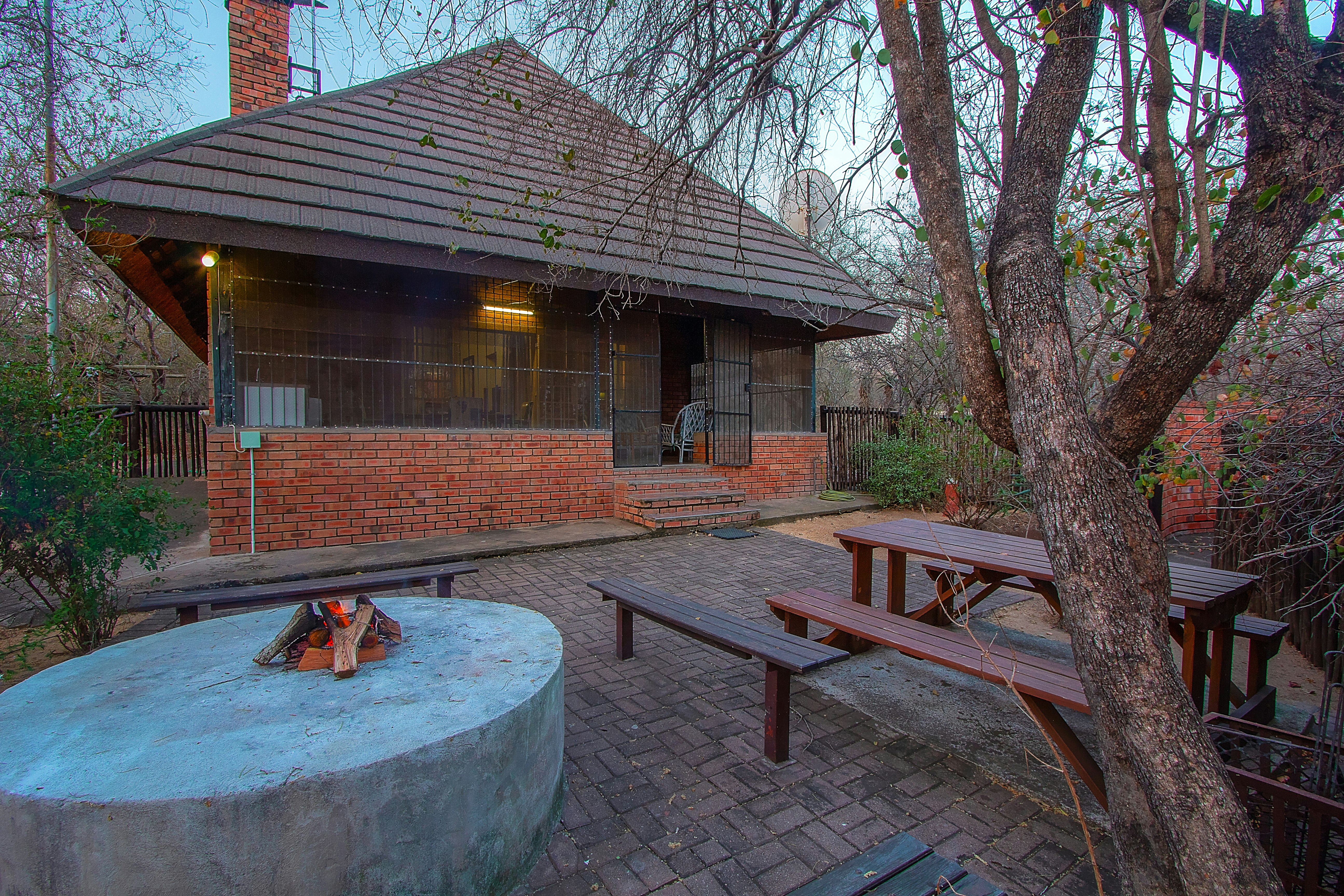 Die kookarea binne het ’n oond, stoofplate en braaiplek en daar is ook ’n kookarea buite. In ’n klein omheinde area voor die huis is ’n plonspoel en die braaiplek bied ’n uitsig op ’n watergat. Ons het ’n klein platskerm-TV met volledige DStv en WiFi.