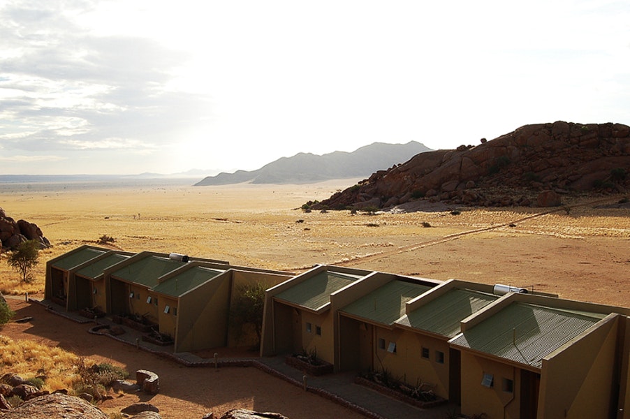 Namib Naukluft Lodge’s architectural design allows unity with nature; backed by impressive granite hills, which grant natural protection against the east winds. Enjoy the stunning view onto the open plains from every room and the main verandah. Arrive at Namib Naukluft Lodge after a long drive and the friendly receptionist will welcome you with a drink and a smile.