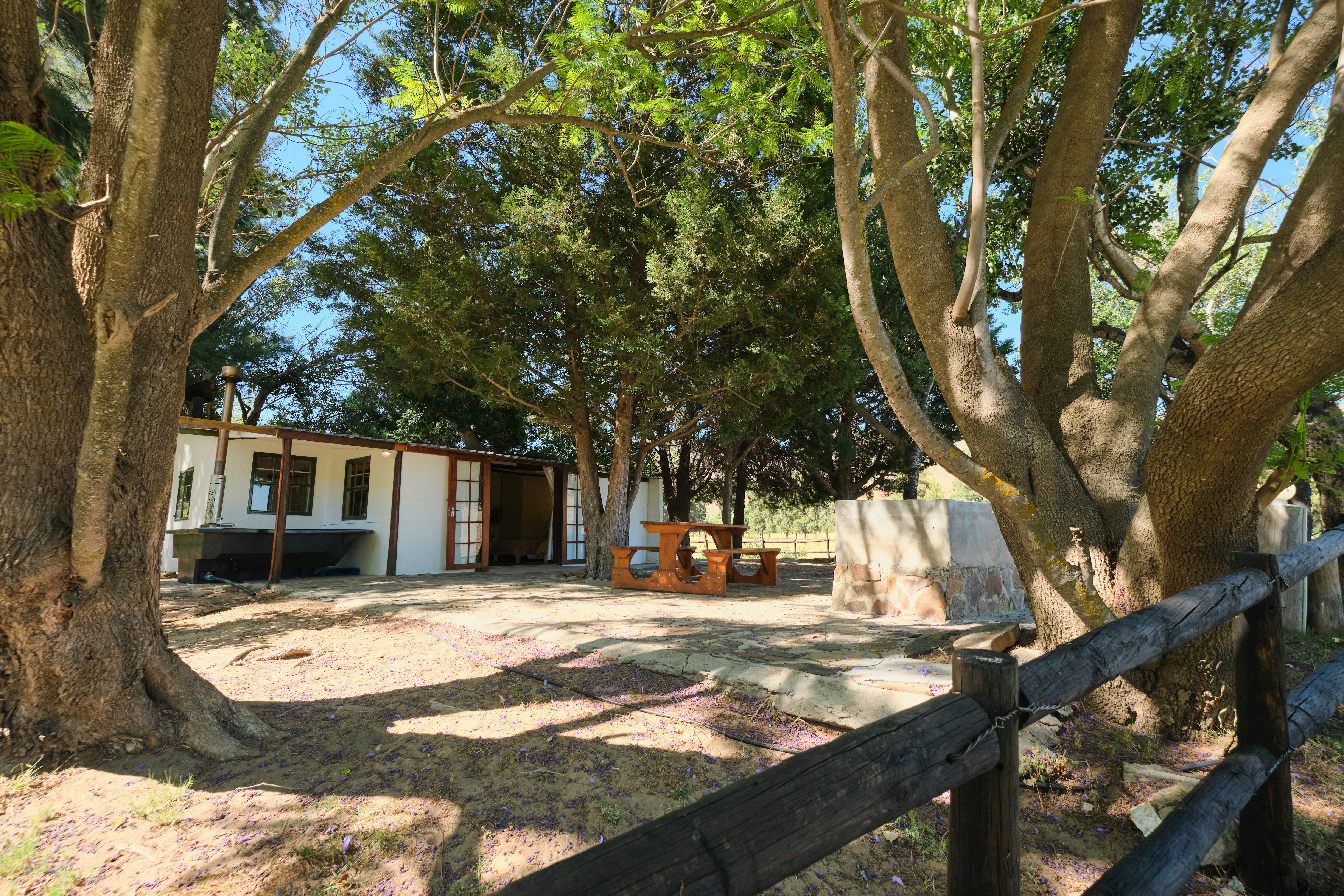 Outside there is a lovely patio with a picnic table and a built-in braai which is the perfect spot for guests to fully relax with a sundowner while overlooking the surrounding countryside.