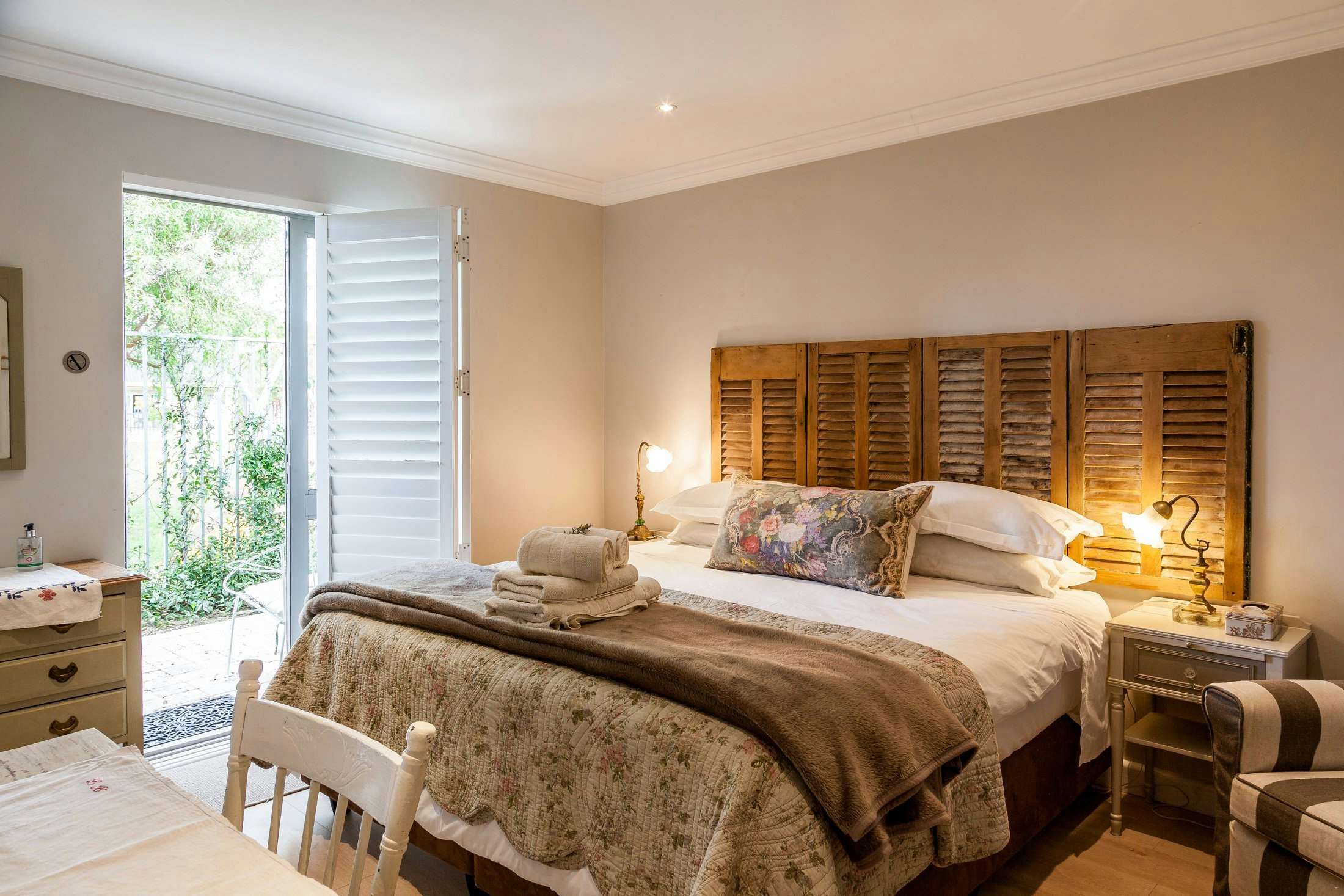 Die 2 luukse, individuele en suite-kamers in die hoofhuis, is elk uniek gemeubileer en het elk 'n privaat ingang en hul eie badkamer en stoepie. Ideaal vir 'n romantiese wegbreek vir 2 persone. Gaste het 'n uitsig oor die privaat tuin en die berg vanaf die stoepie. Hierdie twee kamers kan saam met die kothuis bespreek word, om dit geskik te maak vir groter groepe van 10.