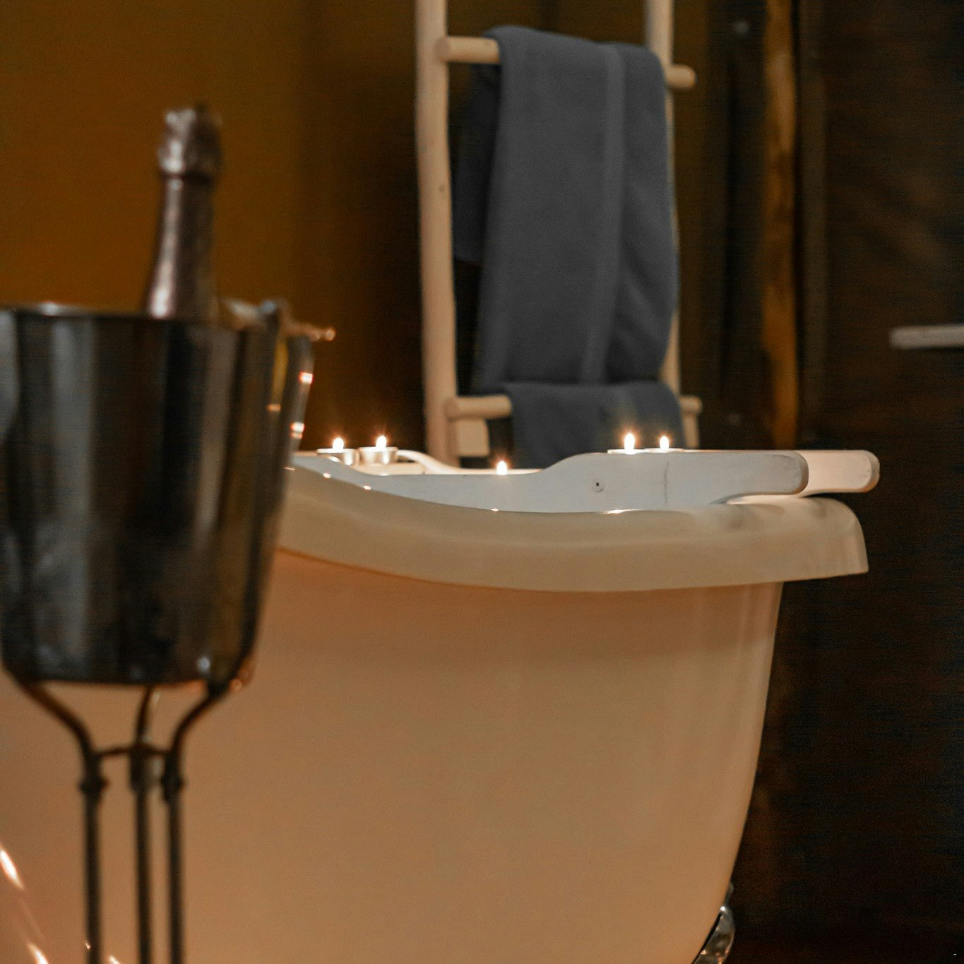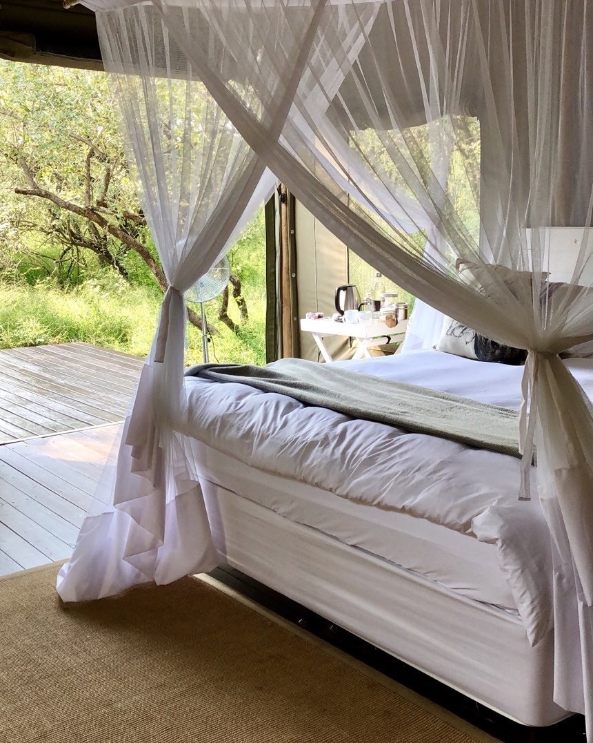 Die tent-chalets is in 'n klassieke safari-tent ontwerp, maar het moderne geriewe. Die tent-chalets bied baie privaatheid. Elke tent-chalet het 'n koninggrootte-bed of 2 enkelbeddens, 'n en suite-badkamer met 'n stort en bad of net 'n stort, asook koffie- en teemaakgeriewe. Elke tent-chalet het ook 'n buitestort en 'n privaat dek.