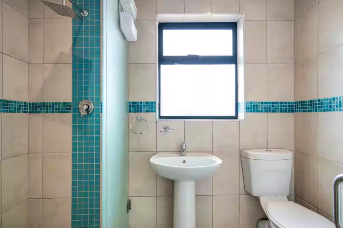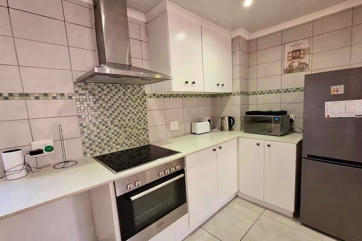 The open-plan living area includes a well-equipped kitchen with a fridge-freezer, stove, oven, microwave, cutlery and crockery, tea- and coffee-making facilities, and a washing machine for added convenience. Adjacent to the kitchen, the lounge offers comfortable couches, a TV with Netflix streaming, and access to complimentary Wi-Fi.