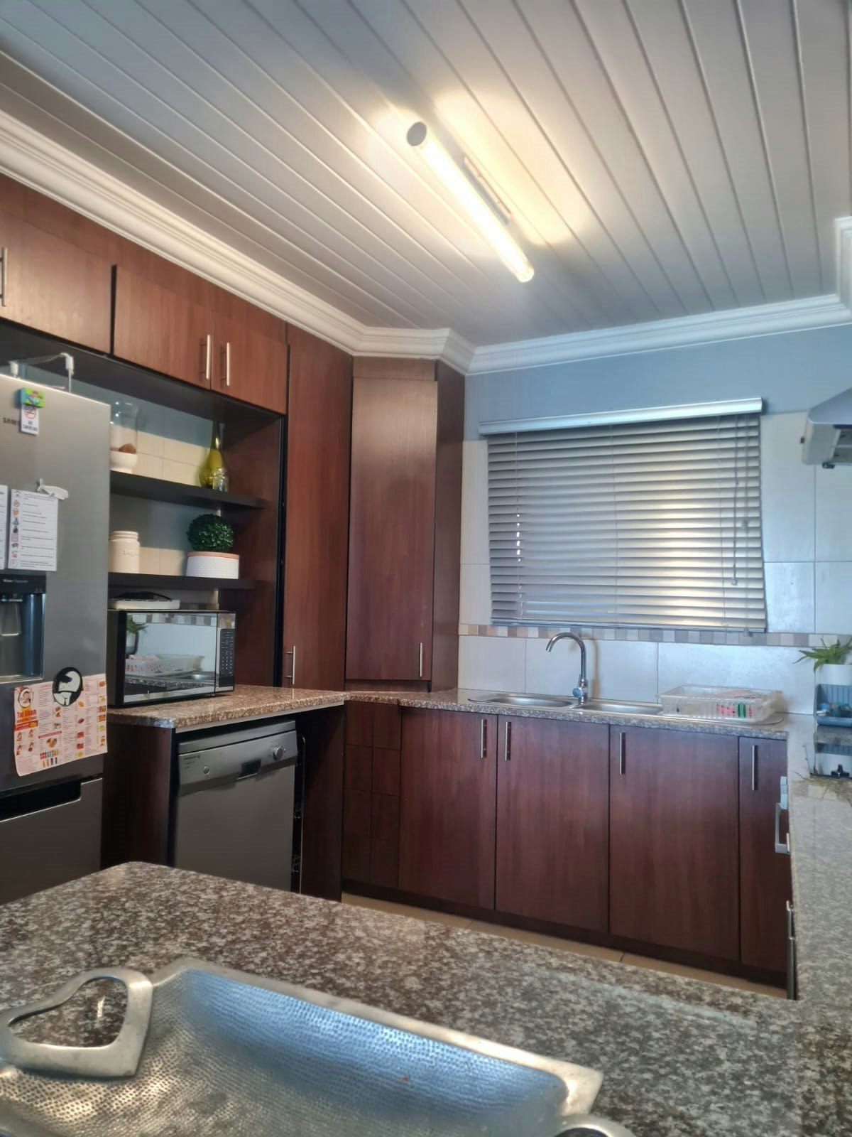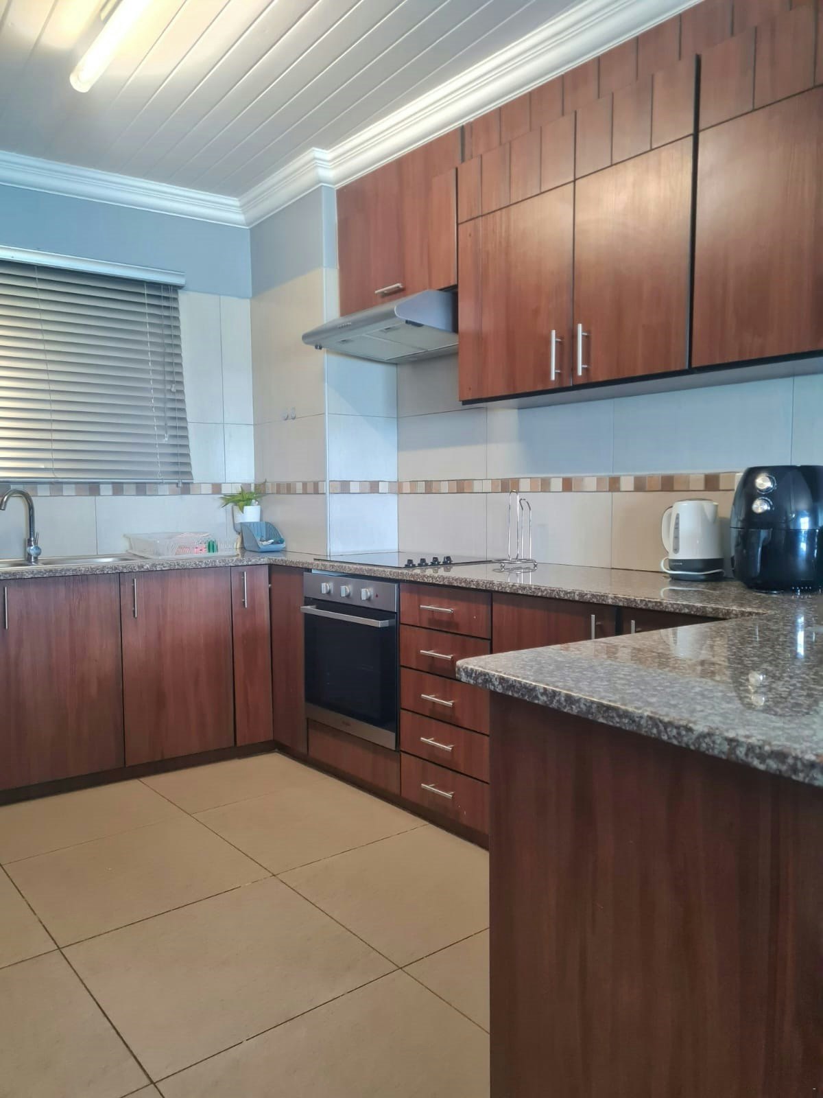 Die kombuis en sitkamer het 'n oopplan-uitleg en die kombuis is toegerus met 'n yskas-vrieskas, mikrogolf, oond, stoof, breekware, eetgerei en 'n skottelgoedwasser.