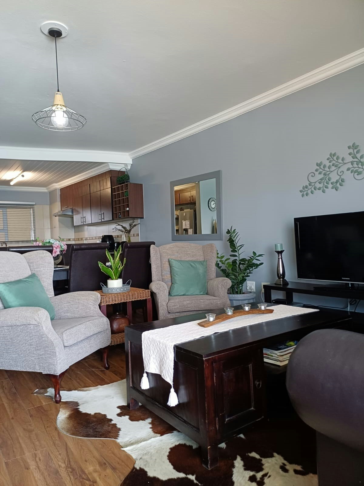 Die sitkamer het gemaklike sitplek en daar is 'n TV, DVD-speler en volledige DStv. Die sitkamer het skuifdeure wat na die stoep met braaigeriewe lei, en dit bied 'n uitsig op die strand en die see.