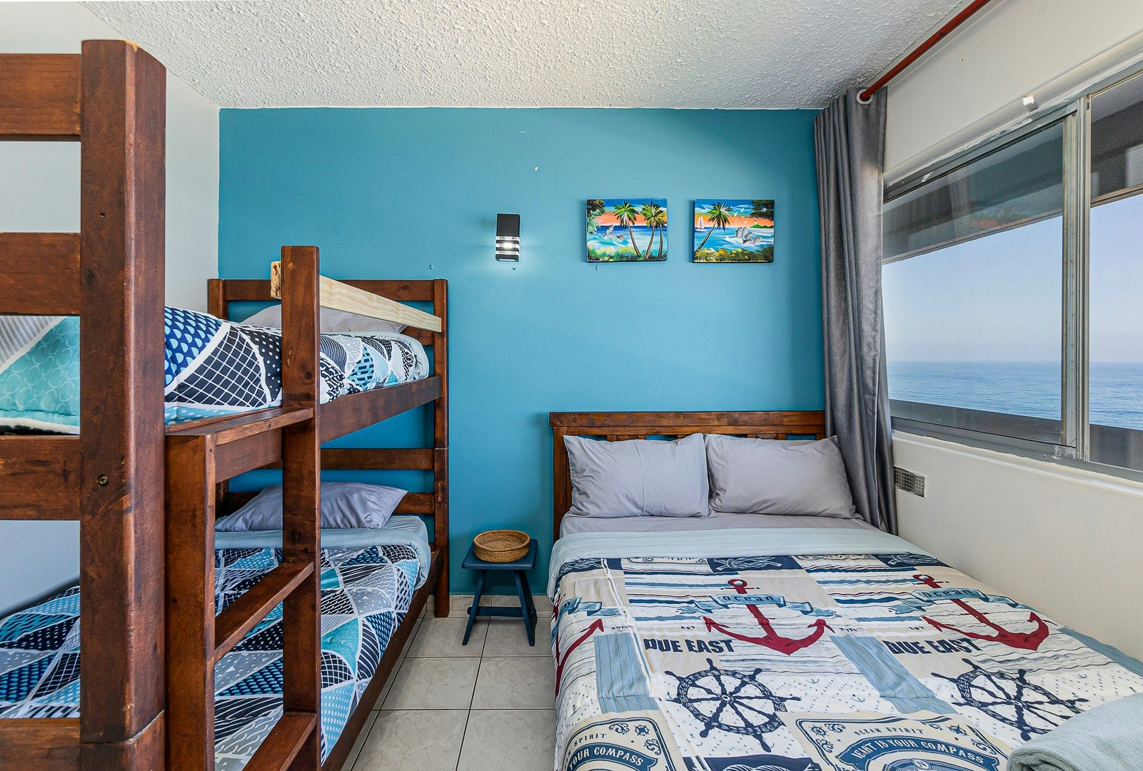 Dié woonstel bied slaapplek aan 6 gaste en beskik oor 2 slaapkamers en 1 badkamer. Die hoofslaapkamer is ingerig met 'n koningingrootte-bed, en die tweede slaapkamer het 'n dubbelbed en 'n stapelbed wat geskik is vir kinders. Gaste deel 'n badkamer met 'n bad, wasbak en toilet. Die oorblywende badkamer is toegerus met 'n stort, wasbak en toilet.