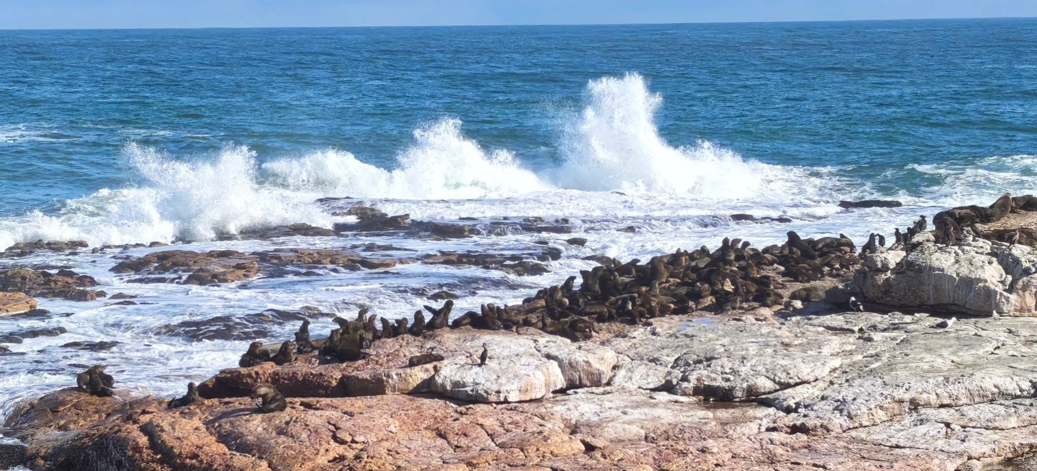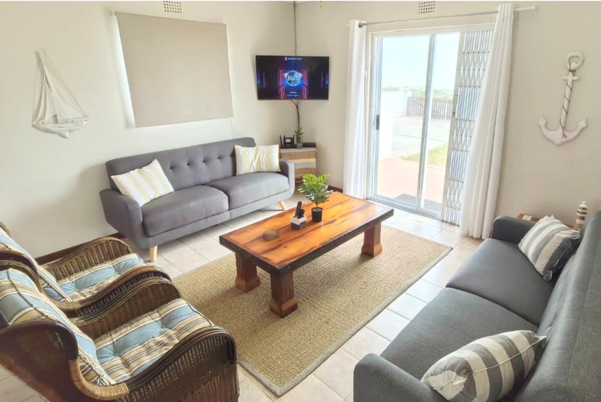 Die sitkamer het 'n see-uitsig en beskik oor gemaklike rusbanke en stoele, moderne plafonwaaiers, 'n platskerm-slim-TV met Netflix, Disney+, YouTube en ander stroomtoepassings, sowel as 'n DStv-dekodeerder met die volle premium DStv-pakket, so jy hoef nie die Rugby te mis nie! Die sitkamer en die lang buitepatio bied ononderbroke uitsigte oor die oseaan en Bobbejaan-berg. Daar is 'n buitetafel met 6 buitestoele wat op die patio gebruik kan word om die sonsondergang oor die Atlantiese Oseaan te geniet. 'n Welige grasperk in die voortuin is ideaal vir die kinders om buite te speel en die sonskyn te geniet.