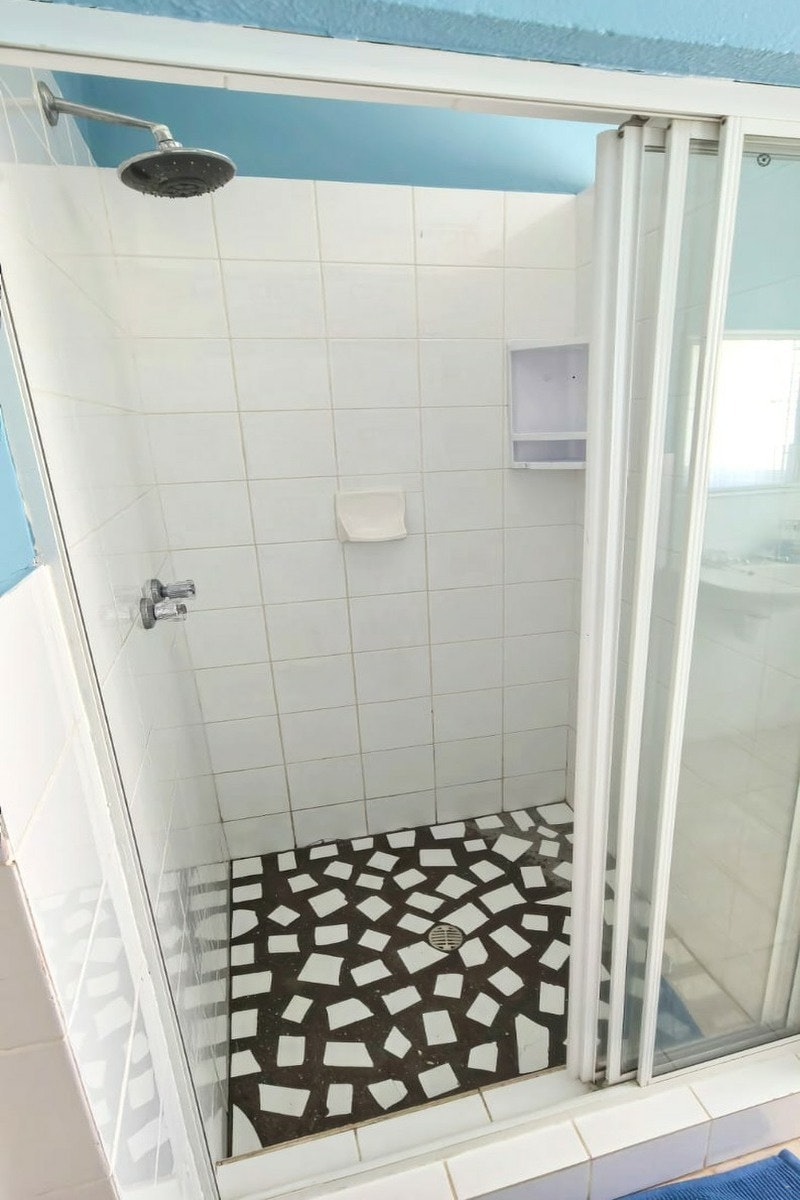 Alle slaapkamers het 'n see-uitsig en plafonwaaiers. Die hoofslaapkamer is gemeubileer met 'n koninggrootte-bed en bied 'n en suite-badkamer met 'n stort en 'n bad. Die tweede slaapkamer het 'n dubbelbed, en die derde het 2 enkelbeddens. Hierdie 2 kamers deel 'n badkamer met 'n stort. Alle linne en badhanddoeke word voorsien, maar gaste moet hul eie strandhanddoeke saambring.