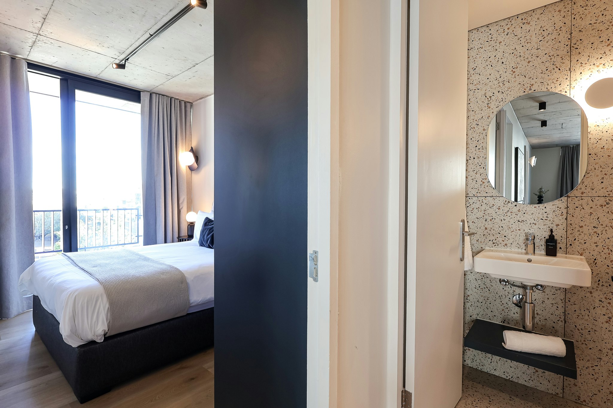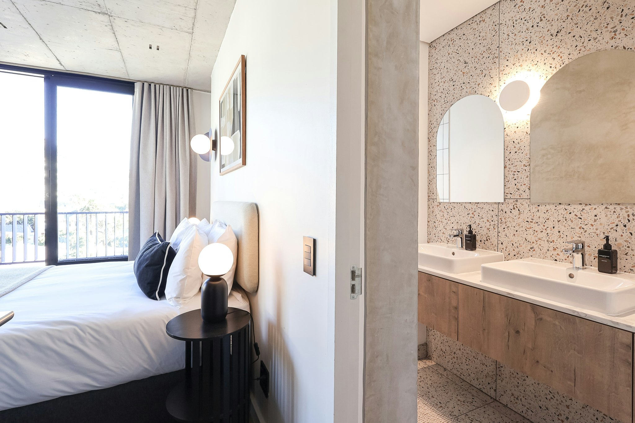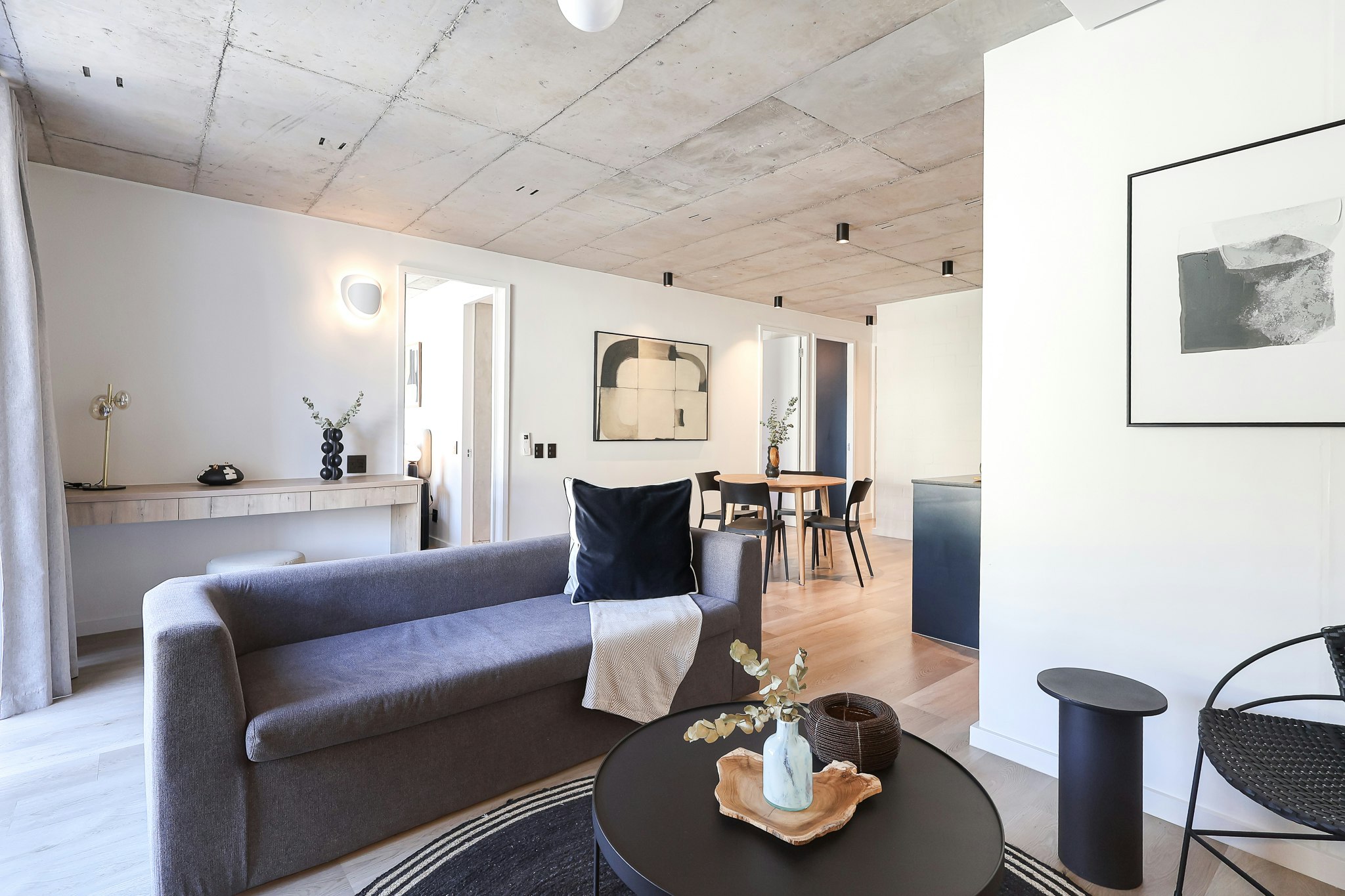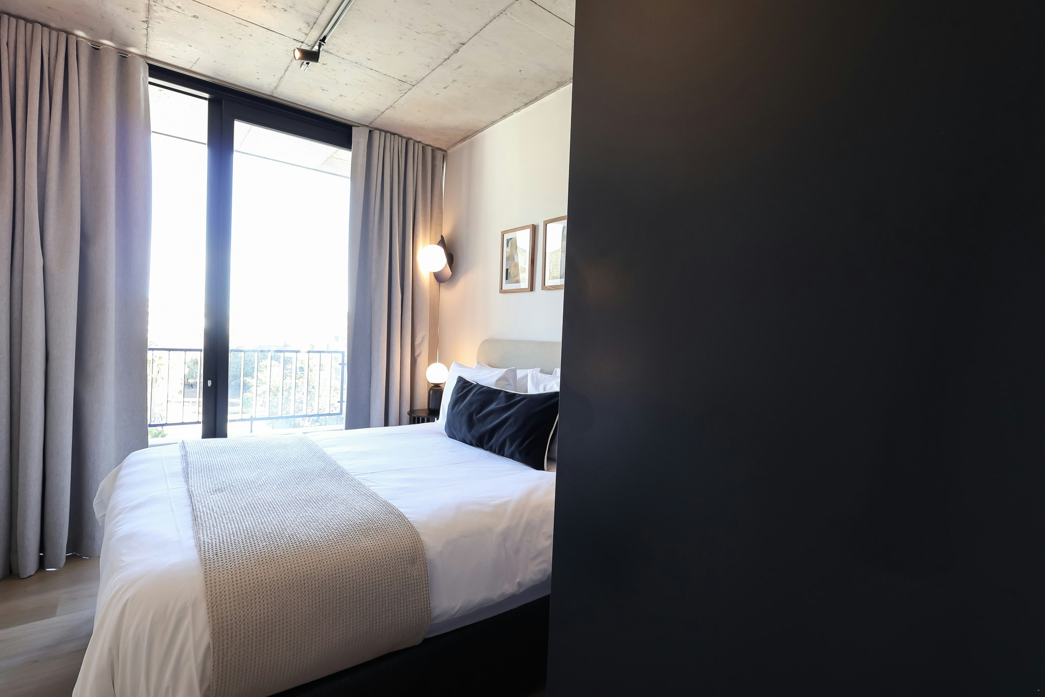 Die leefarea lei na 'n ruim balkon met buitesitplek en berguitsigte. Gaste het eksklusiewe toegang tot premium geriewe, insluitend selfbedieningswasserye, 'n dakswembad met 'n ontspanningsarea, werkruimtes en verwelkomende gemeenskaplike ruimtes wat perfek is vir sosialisering en ontspanning.
