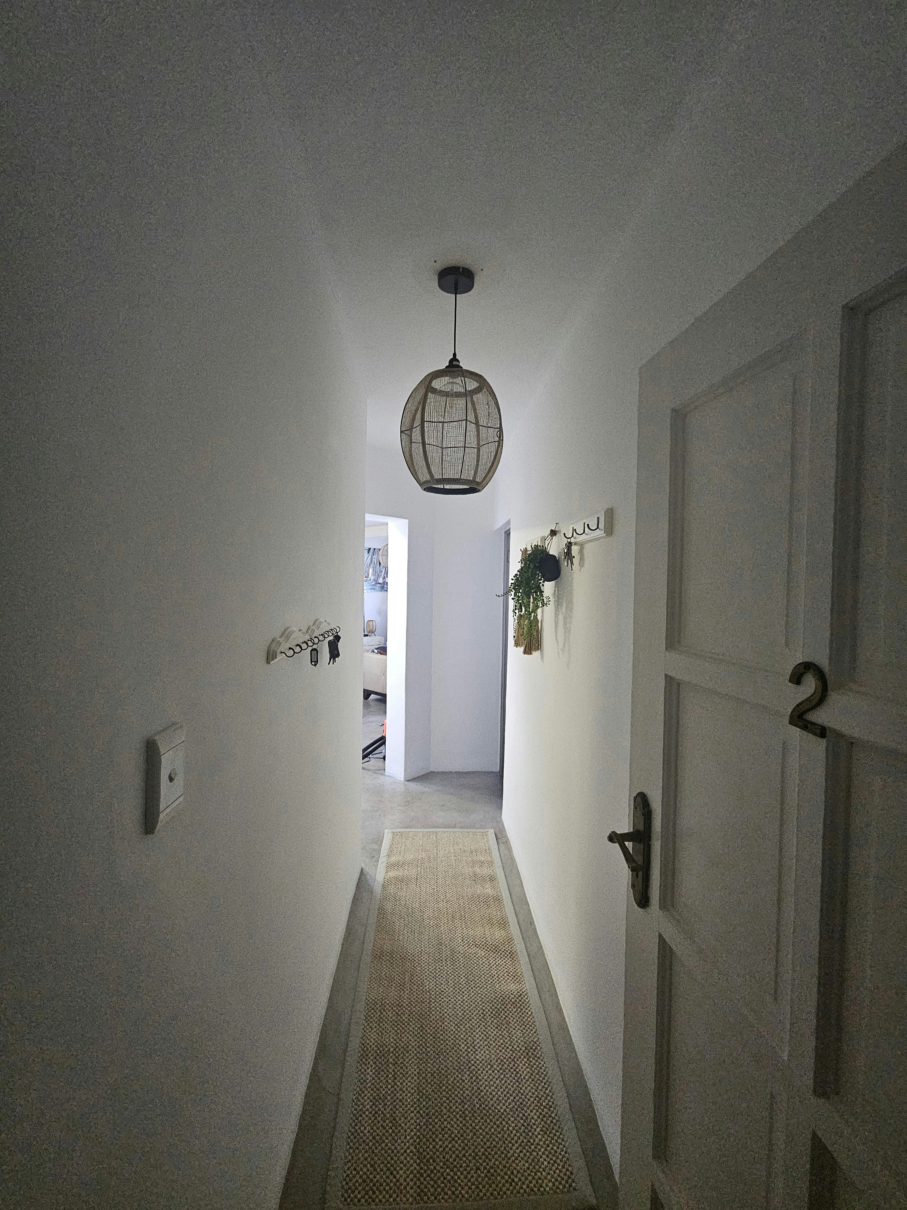 This apartment can accommodate 6 guests and comprises 3 bedrooms and 2 bathrooms. The main bedroom is furnished with a queen-size bed and an en-suite bathroom fitted with a basin, toilet, and bath. The second bedroom is furnished with a double bed, while the third bedroom is furnished with 2 single beds. These bedrooms share a bathroom fitted with a shower, basin, and toilet.