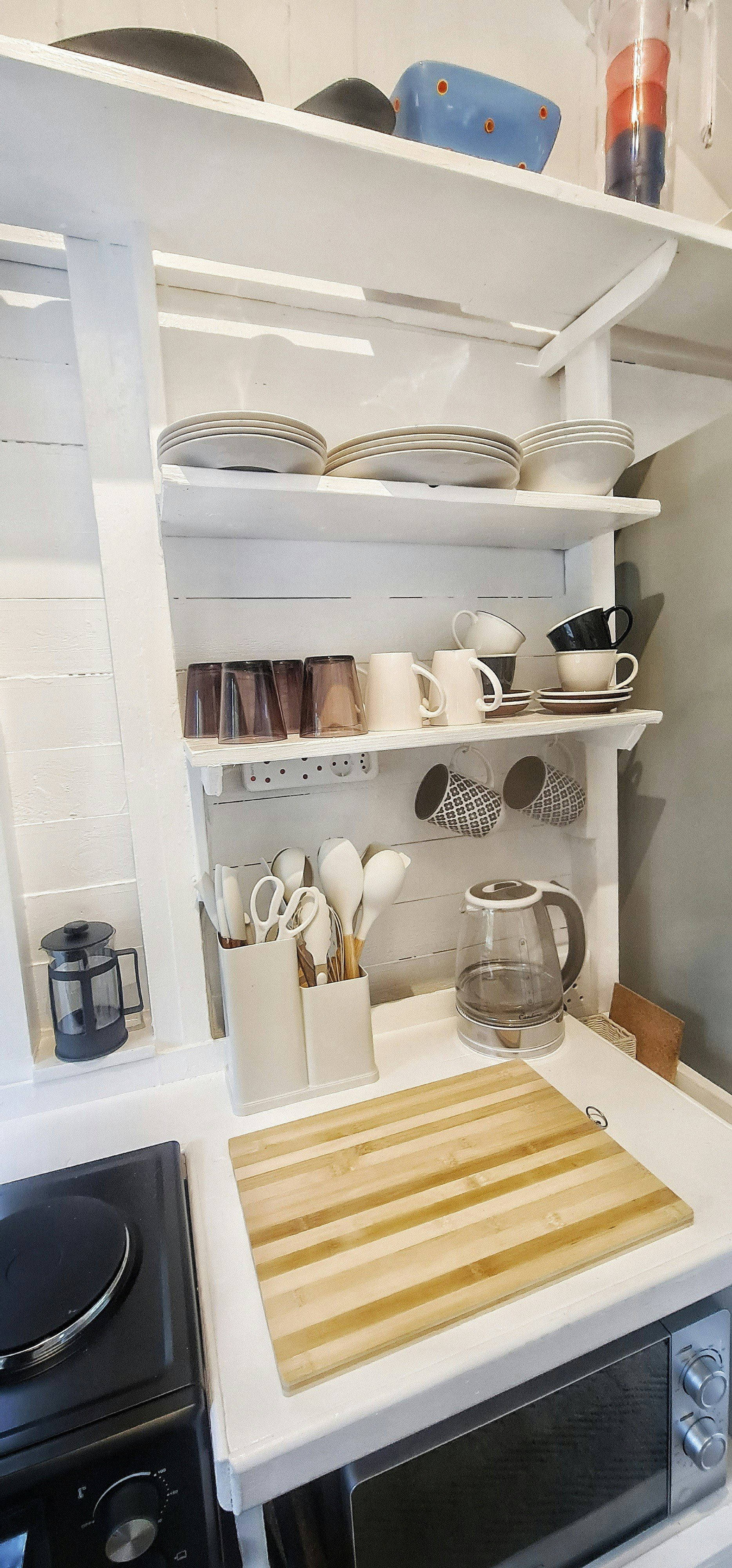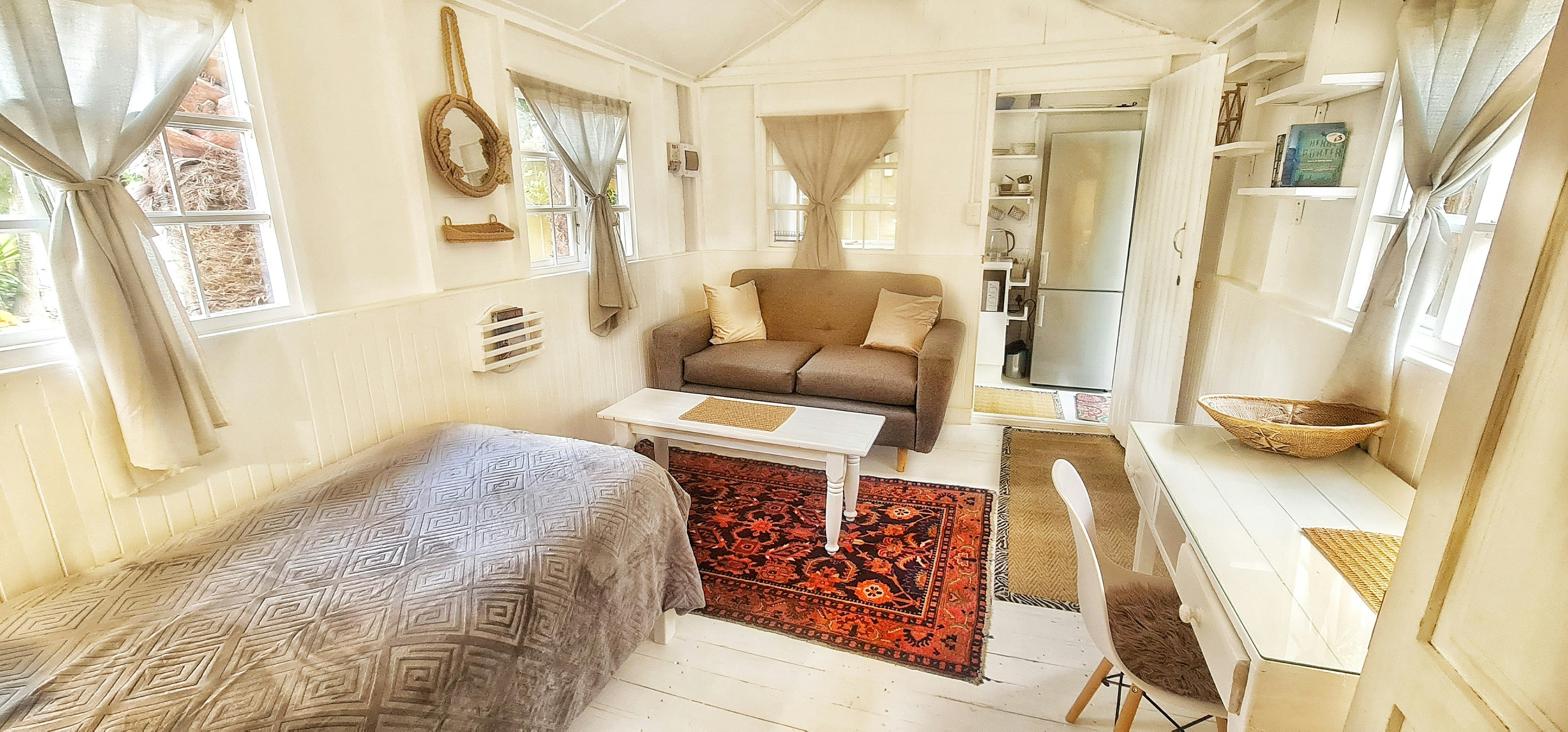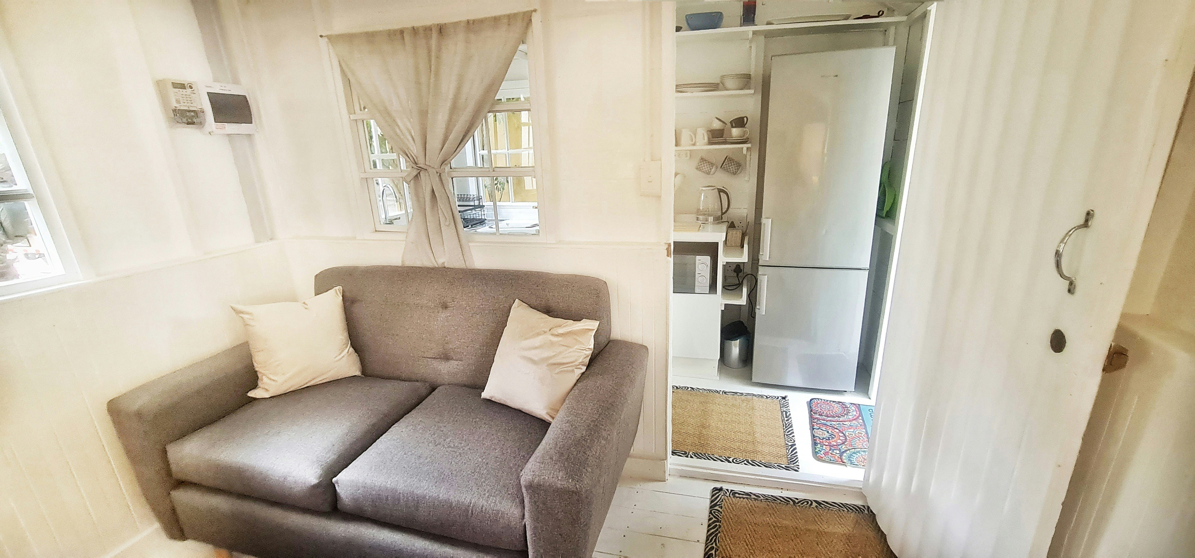 The cottage can accommodate up to 1 adult and comprises 1 bedroom and 1 bathroom. The bedroom is furnished with 1 single bed, and the bathroom is fitted with a shower, toilet, and washbasin. Fresh linen and bath towels are provided. An open-plan lounge area is comfortably furnished, and the cottage features free Wi-Fi for guests’ entertainment. The kitchen is equipped with a fridge-freezer, stove, microwave, kettle, and complimentary tea and coffee.