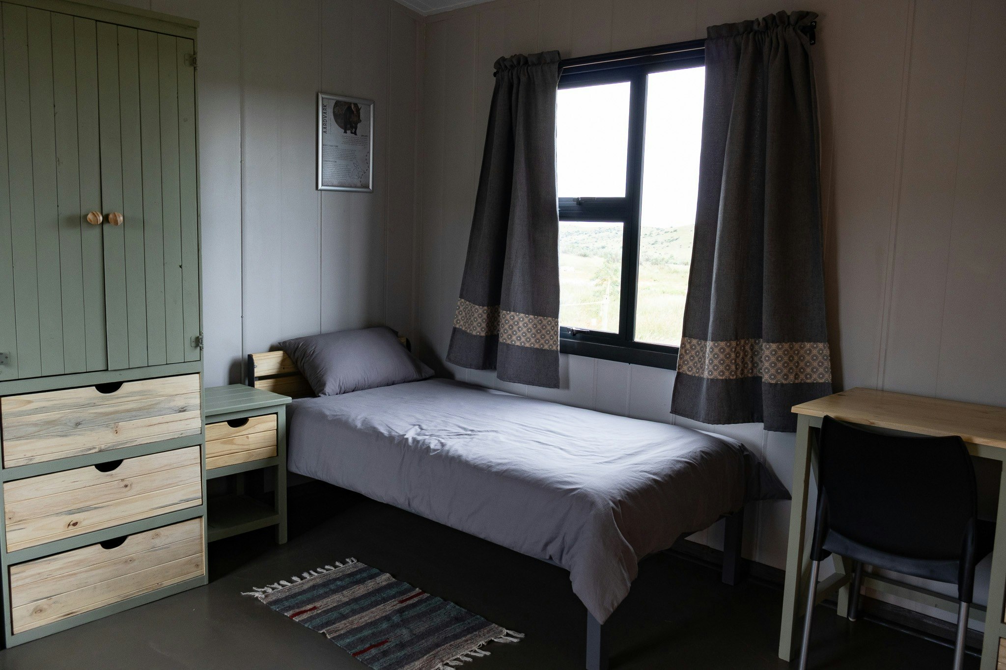 This unit can accommodate up to 2 guests and is furnished with 2 single beds. The en-suite bathroom is fitted with a shower, washbasin and toilet. Linen and bath towels are provided, however guests are required to bring their own swimming towels. In addition, the chalet includes a desk and access to Wi-Fi. The property boasts a communal living area with comfortable couches, a TV and a dining table, and kitchenette with a gas stove, oven, air fryer, cutlery and crockery and tea- and coffee-making facilities. Communal braai facilities and swimming pool are available.