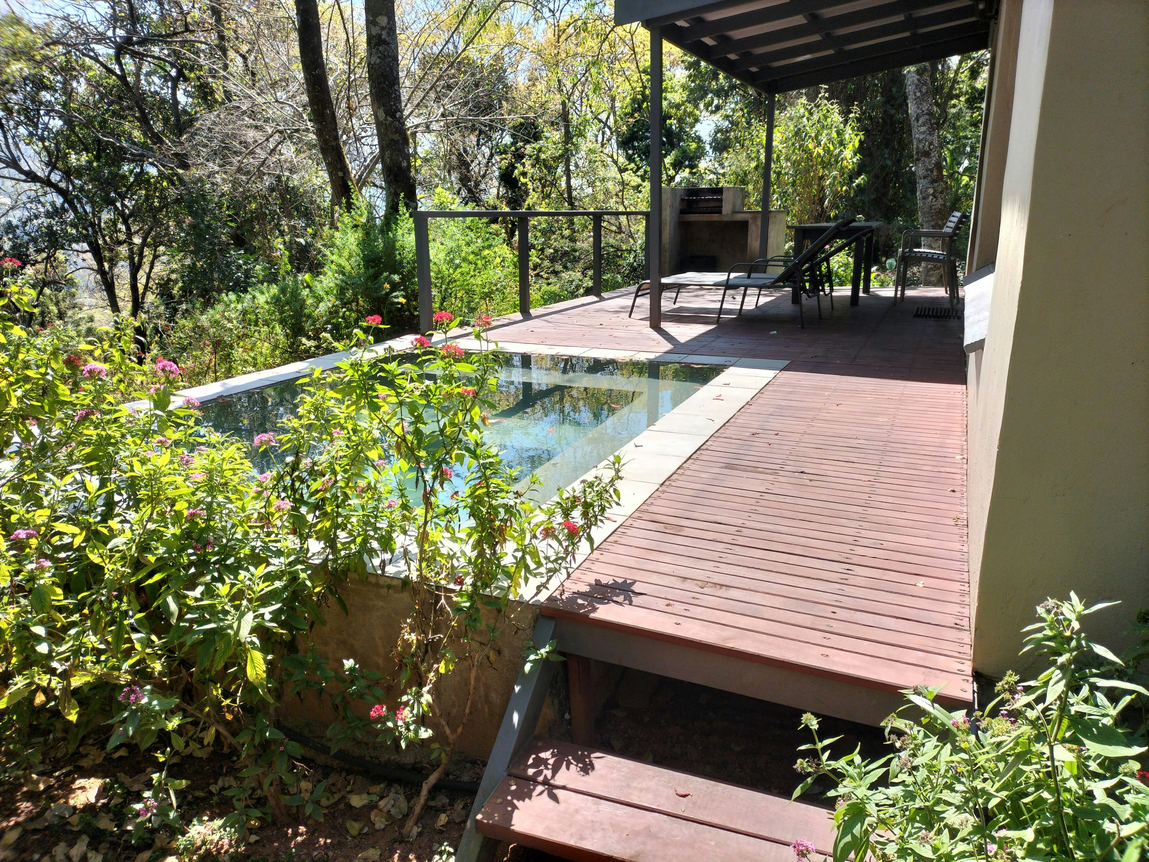 Die groot stoep lei na 'n dek met 'n plonspoel wat 'n uitsig op die heuwel in die verte bied. Daar is ook sonstoele en braaigeriewe. Gaste kan in die welige tuin ontspan en veilige parkeerplek is op die perseel beskikbaar.