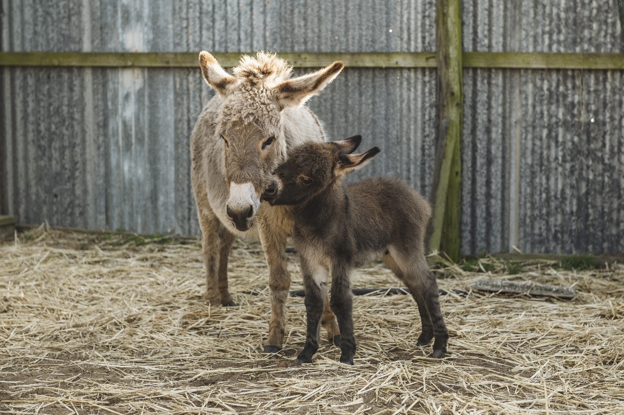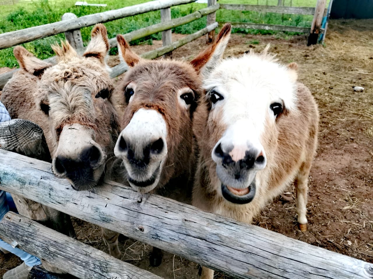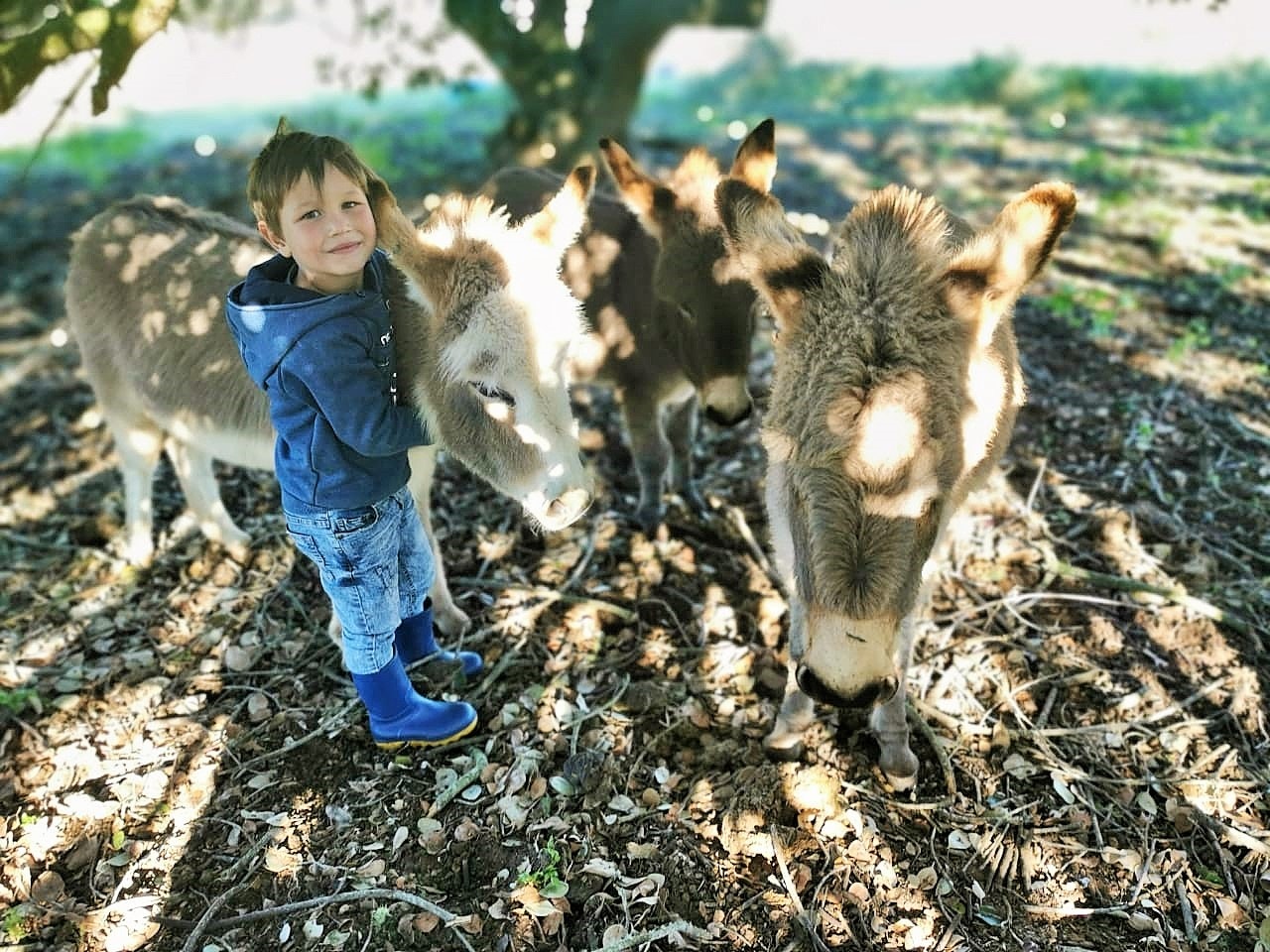 Die Kleinhans-familie boer met volstruise, beeste, perde en skape. Miniatuur-donkies kan op versoek geborsel en gevryf word.