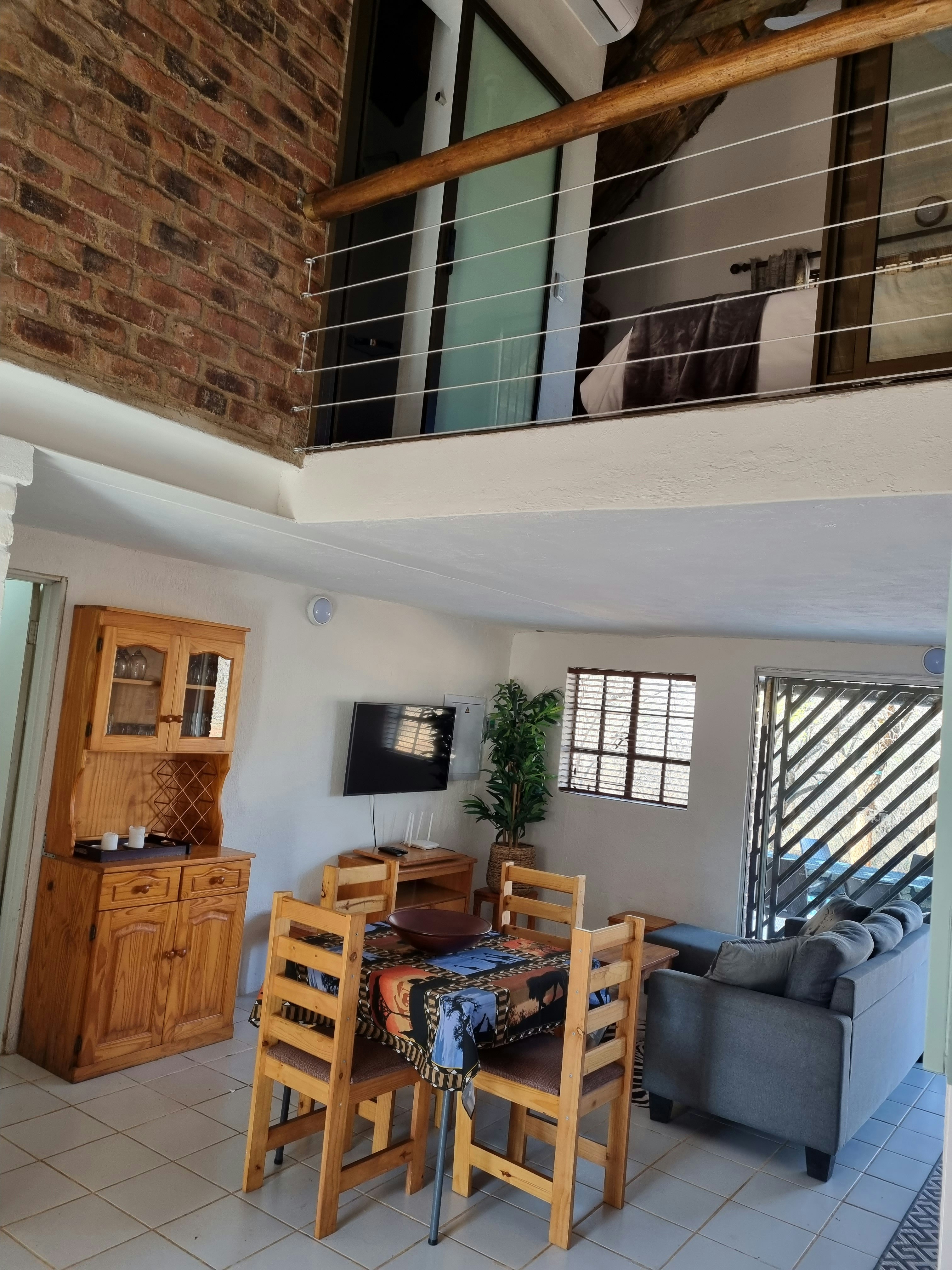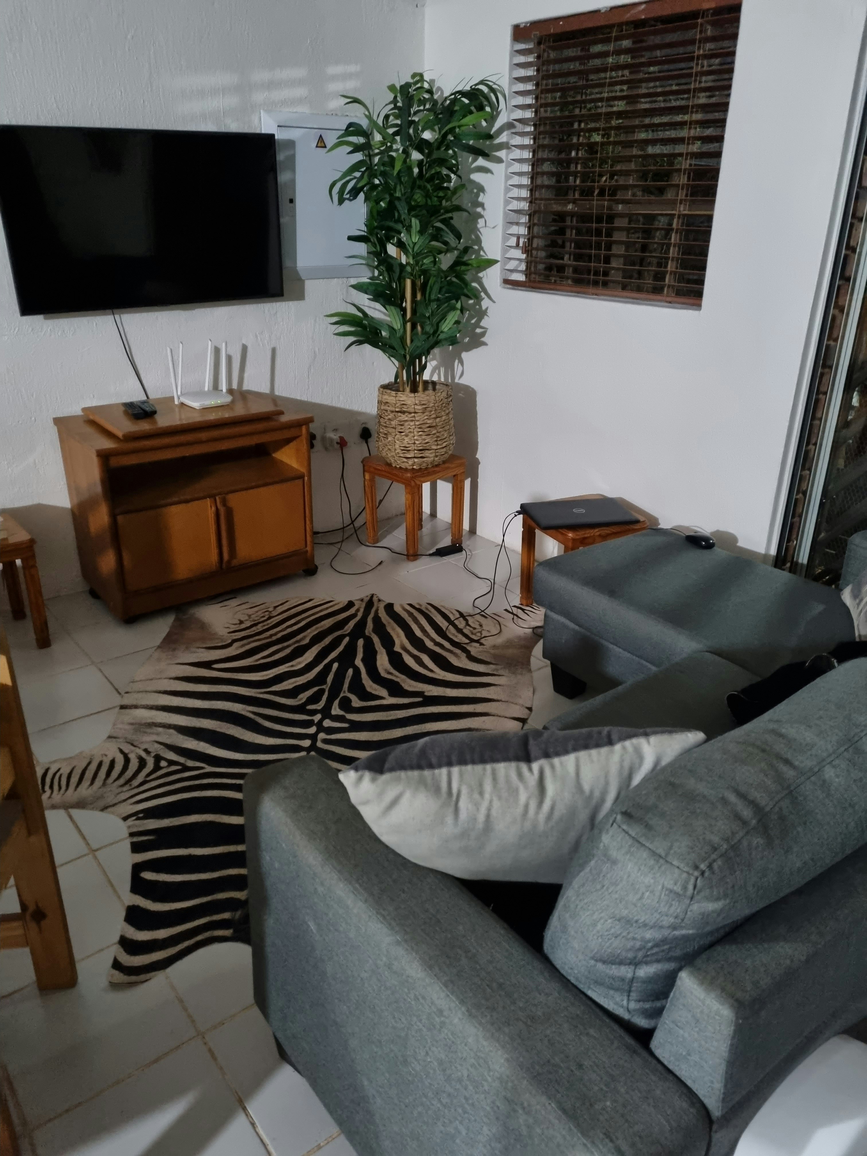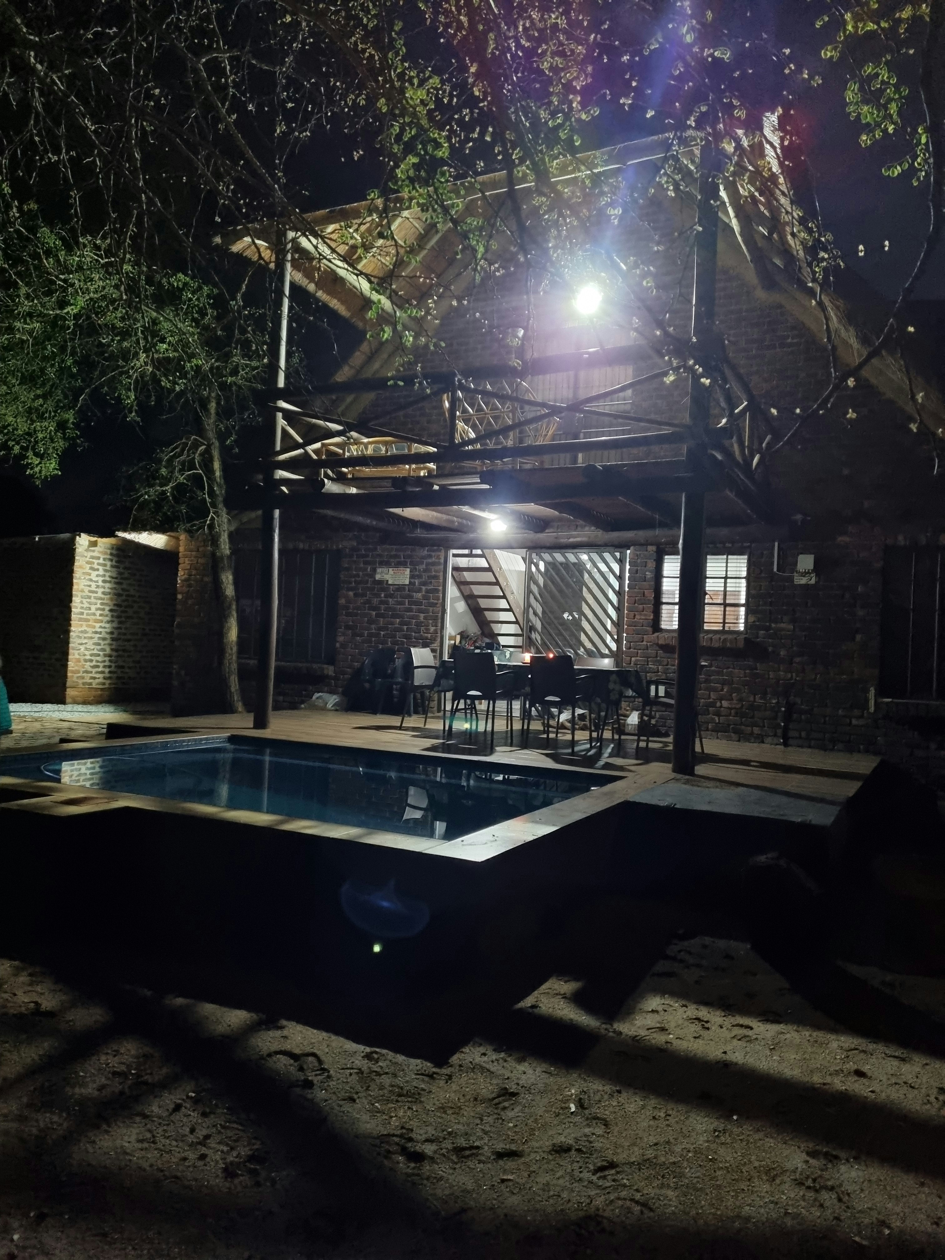 The lounge has a comfortable couch as well as a smart TV, and a dining table. Wi-Fi is also available. There is a private outside area with a pool and a boma with a braai.