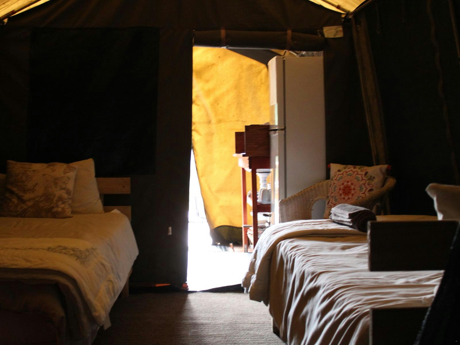Die tent-chalets bied selfsorgverblyf en is rustiek, dog elegant. Dis op dekke met 'n asemrowende panoramiese uitsig op die Overberge. Elke tent het 'n kombuisie wat met 'n mikrogolfoond en induksiestoofplaat toegerus is, badkamer, sitkamer, dek en privaat braaigeriewe. Jy kan ontspan en afskakel langs die braai, op die houtdek en in die tent. Elke tent-chalet is ontwerp om jou verblyf gerieflik en ontspanne te maak. Daar is ook 'n Eko-kampeerterrein.