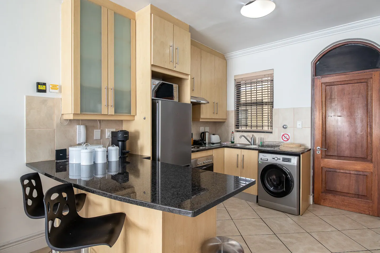 Hierdie woonstel bied slaapplek aan 4 gaste en beskik oor 1 slaapkamer, 1 badkamer, 'n kombuis en 'n leefarea. Die slaapkamer het 'n dubbelbed en die en suite-badkamer het 'n stort, toilet en 'n wasbak.