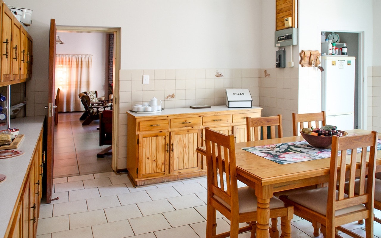 Guests can make use of the communal kitchen, which is equipped with a stove, a microwave, and a fridge-freezer, as well as tea and coffee-making facilities. Meals can be enjoyed at the 6-seater kitchen or dining room table. Guests can relax in the communal lounge area with air-conditioning and a TV with selected DStv channels and a cosy fireplace that can be lit on chilly Karoo nights.