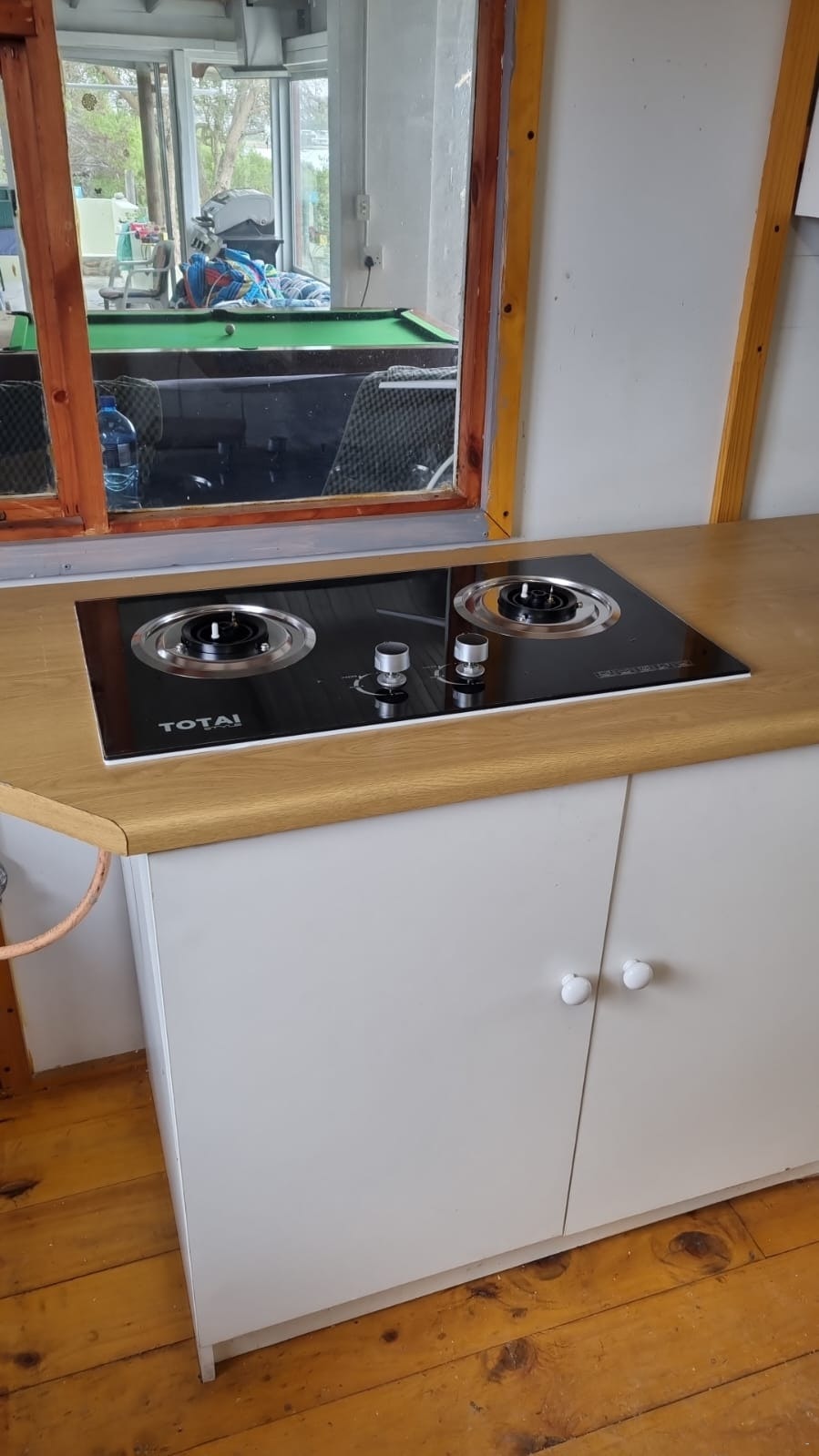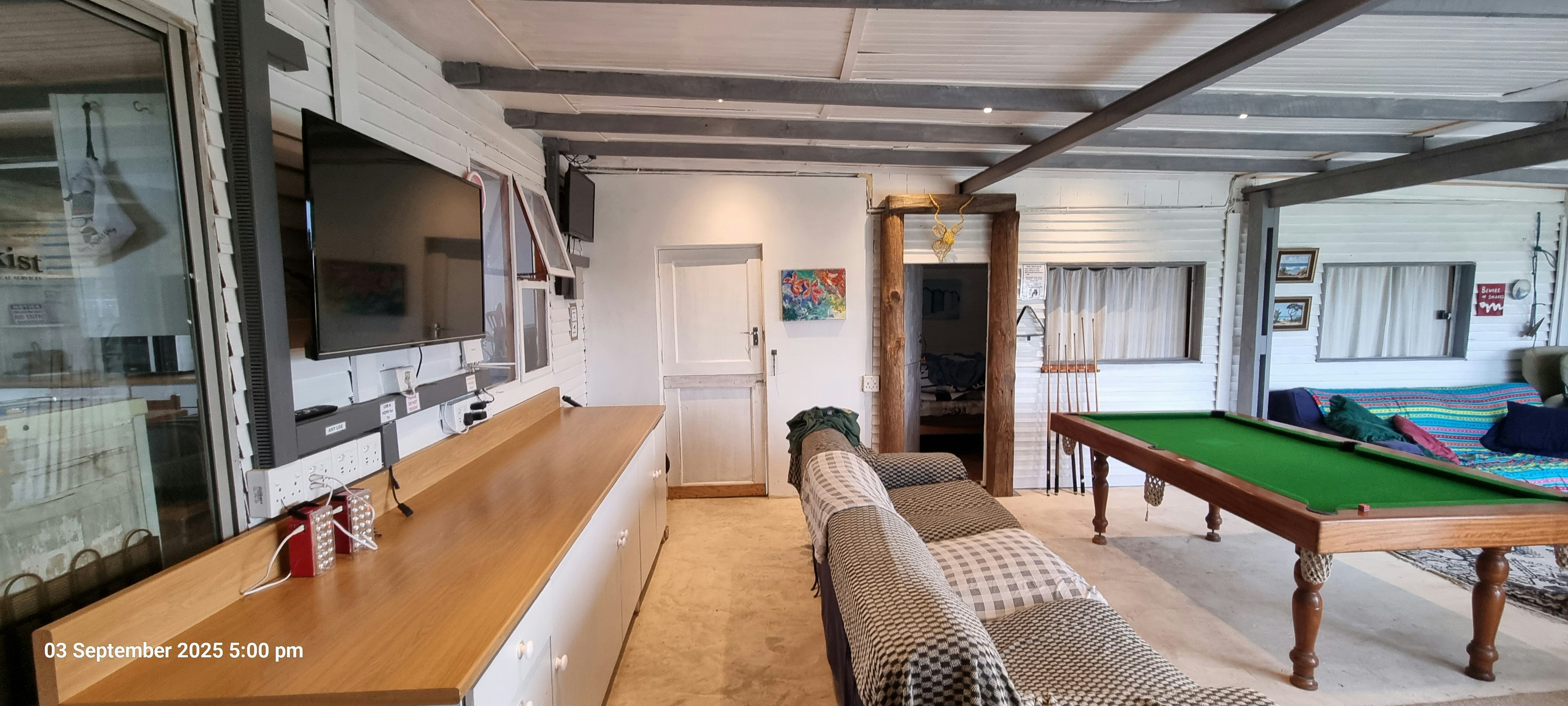 Die kombuis is toegerus met 'n gasstoof, mikrogolfoond, yskas-vrieskas, kisvrieskas, skottelgoedwasser, ketel, broodrooster en noodsaaklike kookgerei. Daar is 'n eetkamertafel met sitplek vir 8 en 'n sitkamer met 'n slim-TV en rusbanke. Die sitkamer lei na 'n binnenshuise braai-area met 'n ingeboude braai en 'n gasbraai. Die kothuis het gratis WiFi en is toegerus met 'n omsetter.