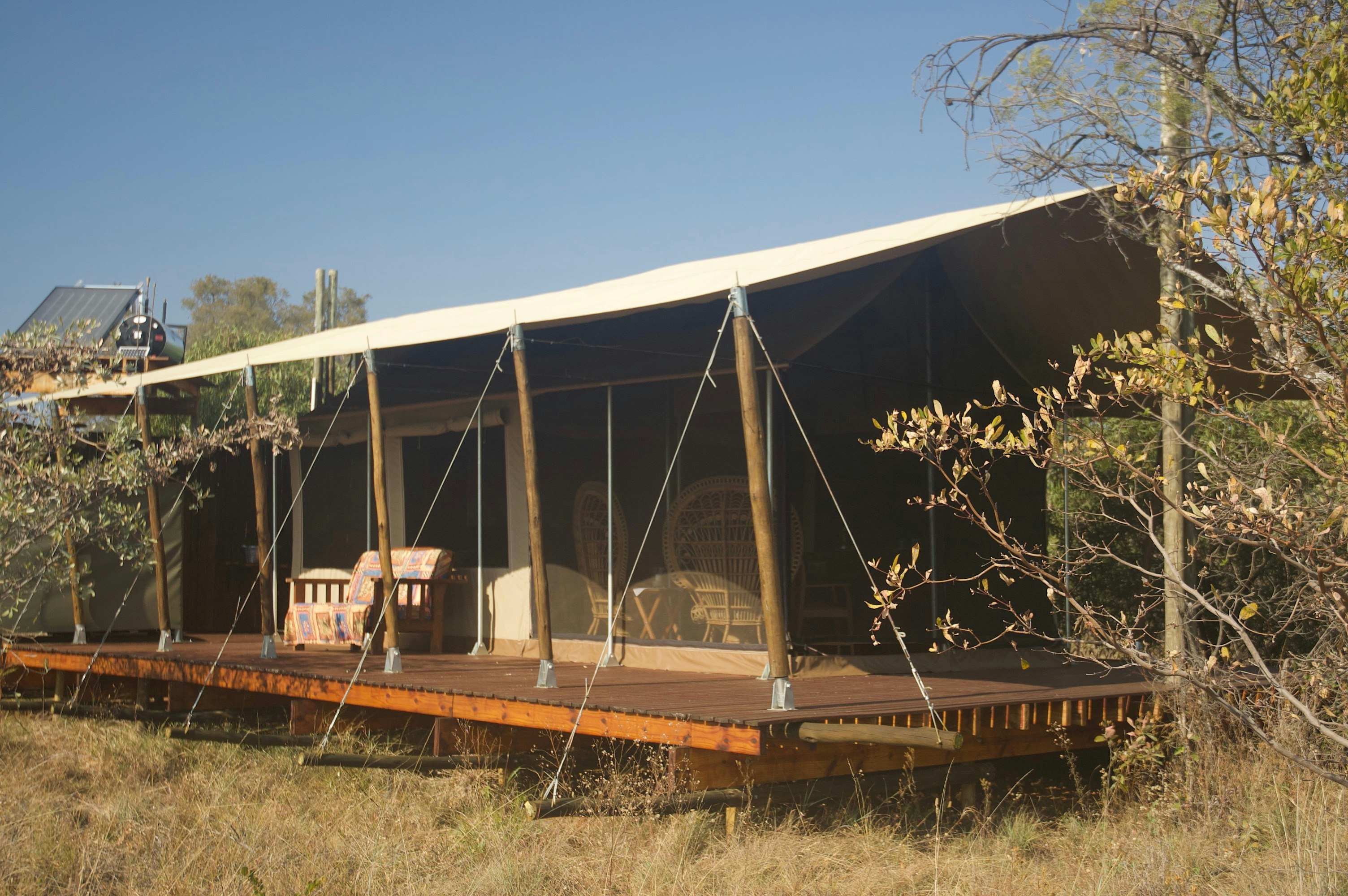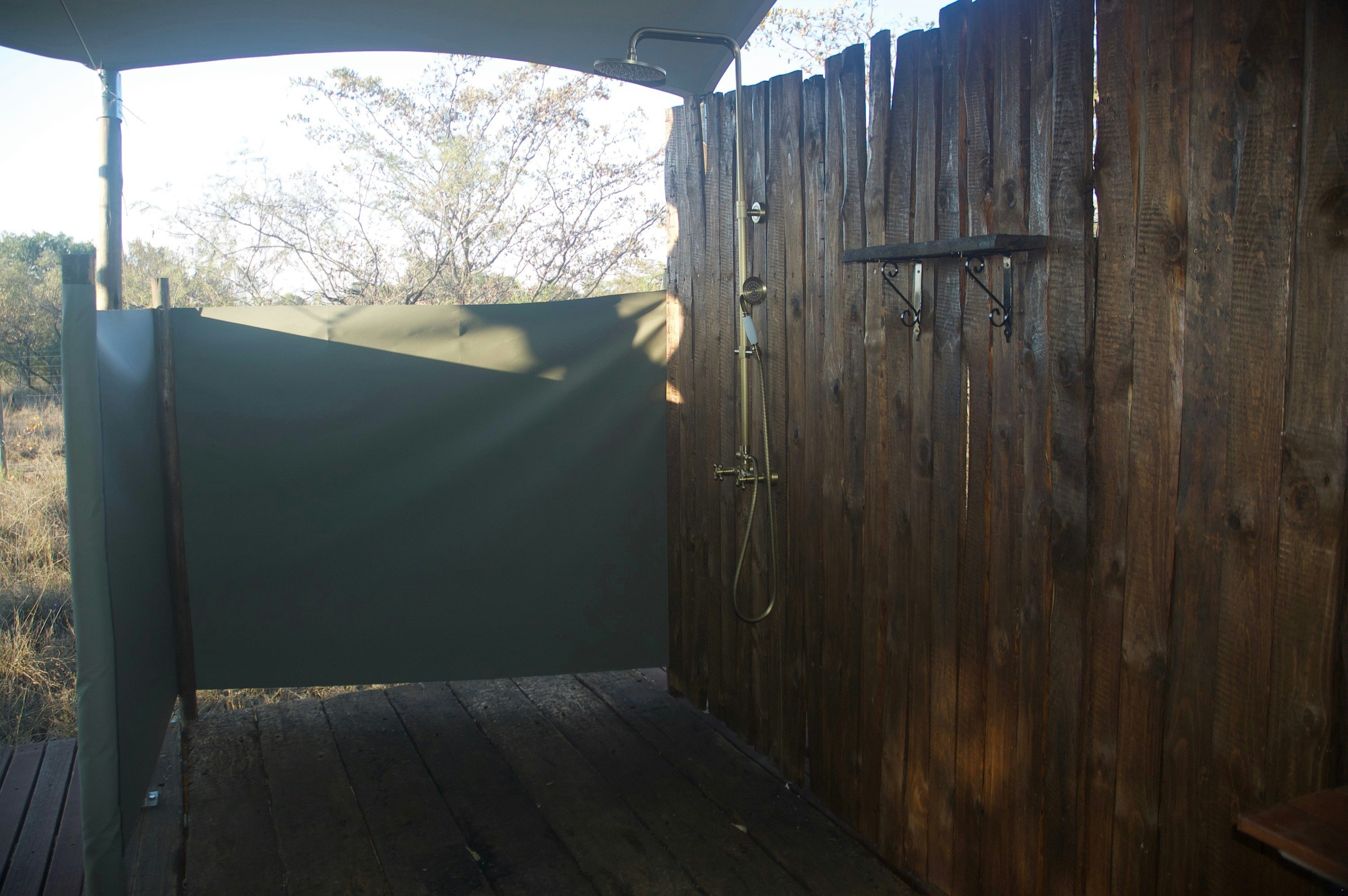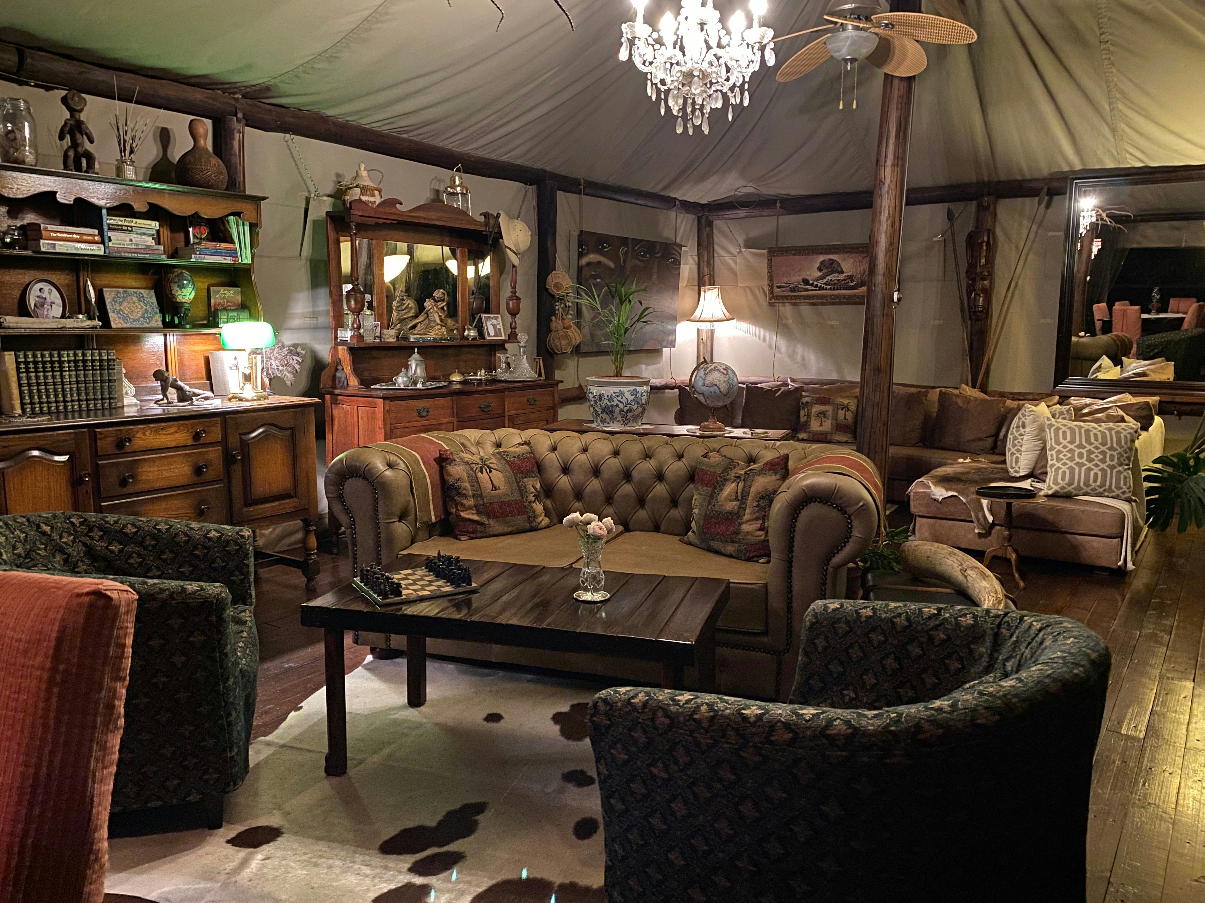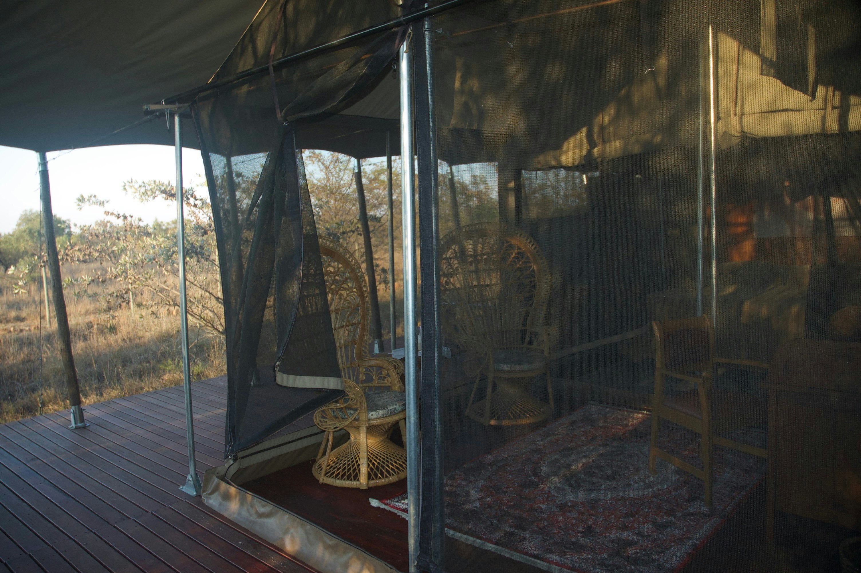 Vir maksimum privaatheid is die eenhede 50 meter uitmekaar, geskei deur dik bos, en elke patio kyk na die Groot 5 wildheining. Die luukse tent-suites beskik oor ekstra-lengte koninggrootte-beddens, badkamers met 'n toilet, wasbak en buitestort. Ander geriewe sluit 'n klerekas, lessenaar, stoele en dekstoele in, alles op 'n verhoogde houtplatform wat toeganklik is via 'n oprit.