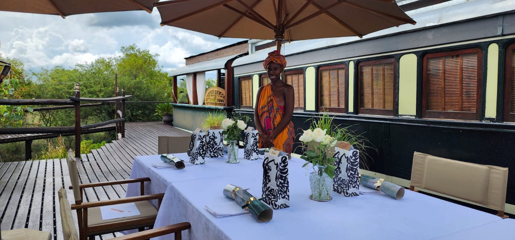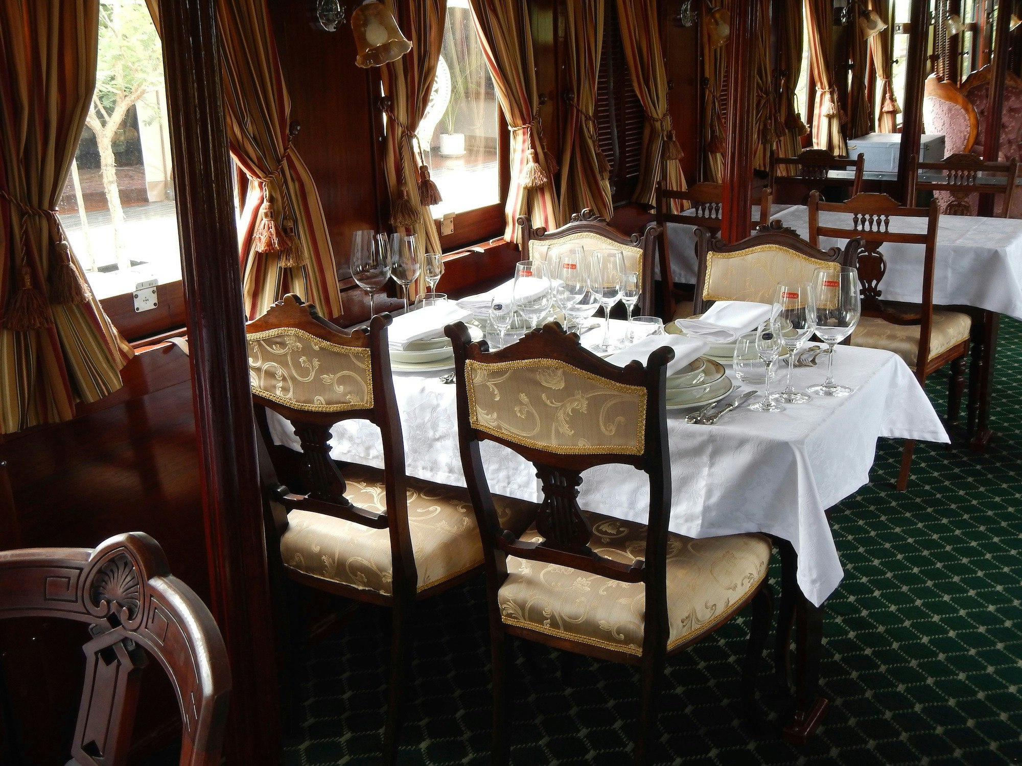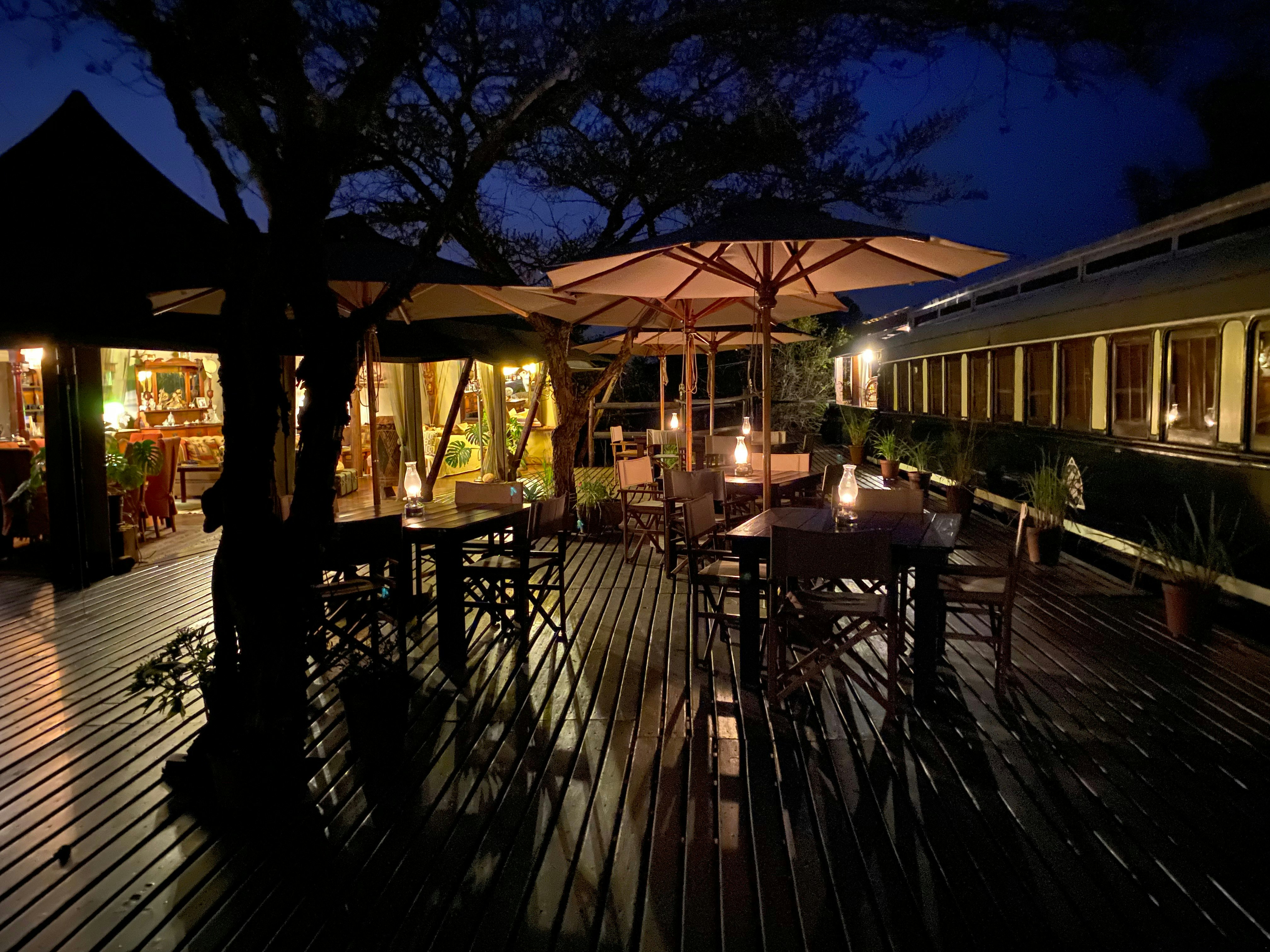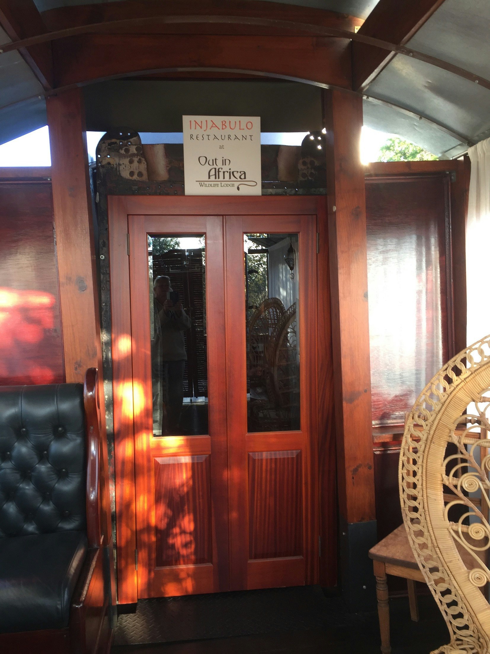 Die Injabulo Restaurant word in 'n 100 jaar oue eetwa gehuisves. Die "trein in die bos"-ervaring is die eerste verrassing vir gaste. Wanneer hulle binnekom, stap hulle in 'n Edwardiaanse-styl eetkamermotor, gemeubileer met antieke stoele, tosselgordyne en klokvormige leeslampe. Vir aandete word gaste genooi om 'n kulinêre rondreis deur Europa aan te pak sonder om die Dinokeng-wildreservaat te verlaat. Elke 4–5 weke verander die spyskaart om geregte uit 'n ander Europese streek ten toon te stel. Vasgestelde vyfgang-spyskaarte word bedien, met etiese verkrygde, grasgevoede vleis en soveel plaaslik verboude, organiese produkte as moontlik.