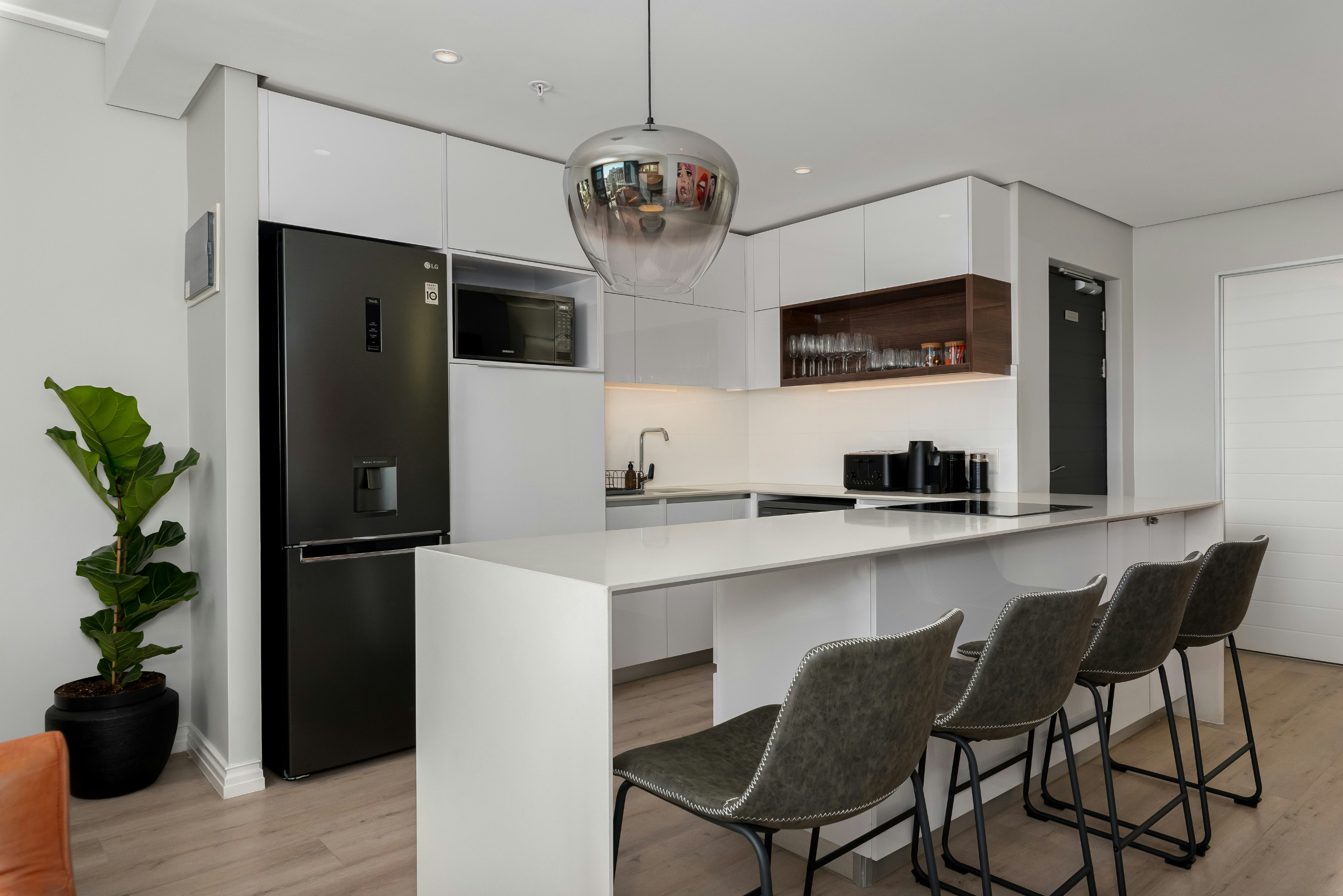 Die eenheid beskik oor 'n volledig toegeruste kombuis met 'n stoof, oond, mikrogolfoond, ketel, koffiemasjien, broodrooster, yskas-vrieskas, skottelgoedwasser en 'n ontbyttoonbank met stoele. Die sitkamer en eetkamer bied gemaklike sitplek vir gaste om te eet en te ontspan terwyl hulle die uitsigte bewonder. Vir vermaak is 'n slim-TV met Netflix en gratis WiFi beskikbaar.