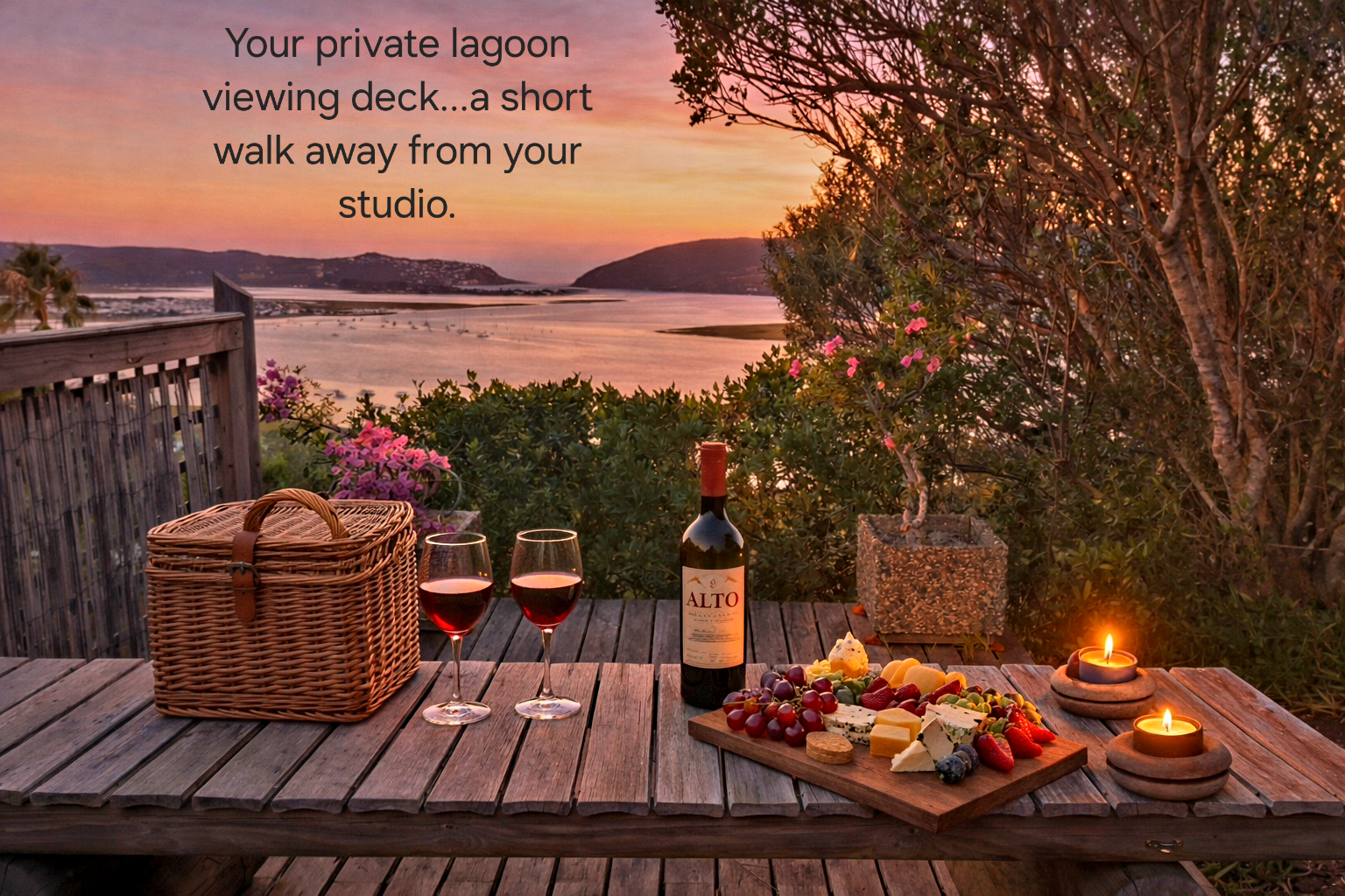 Ervaar bio-geïnspireerde hout-eko-argitektuur met organiese en inheemse plantbedekte dakke. Die ontwerp van die eenhede skep 'n warm gesellige atmosfeer van welwees waarin gaste heerlik kan ontspan. Die eenhede word bereik via 'n houtpaadjie wat jou na jou privaat ingang lei. Twee van die ateljees, naamlik Nature-Zen en Tidal-Zen het elk 'n privaat onderdakdek vanwaar gaste kan terugsit, ontspan en die uitsig geniet. Die derde ateljee, naamlik Stone-Zen het 'n onderdak-veranda met 'n uitsig oor 'n klip zen-tuin.